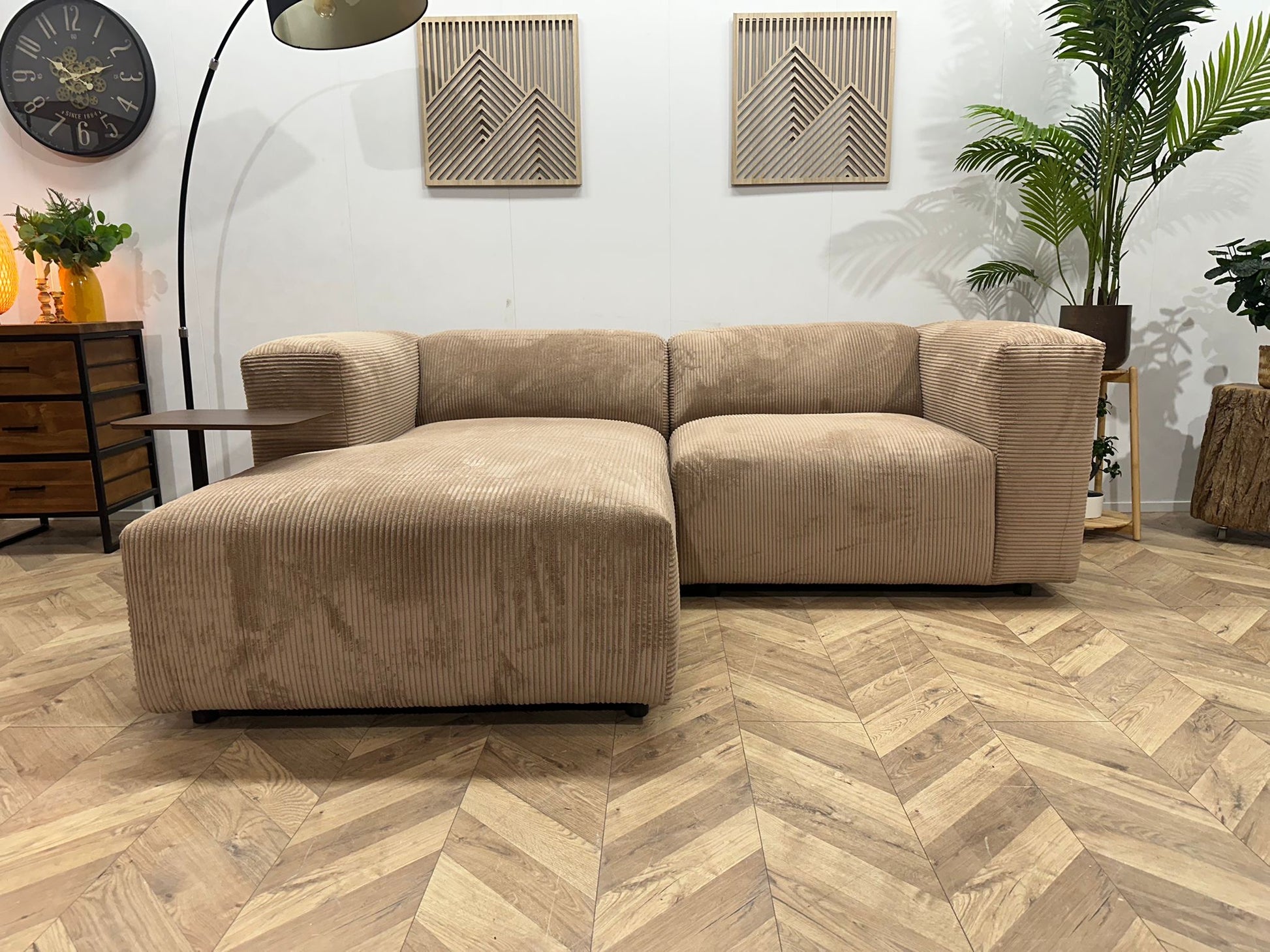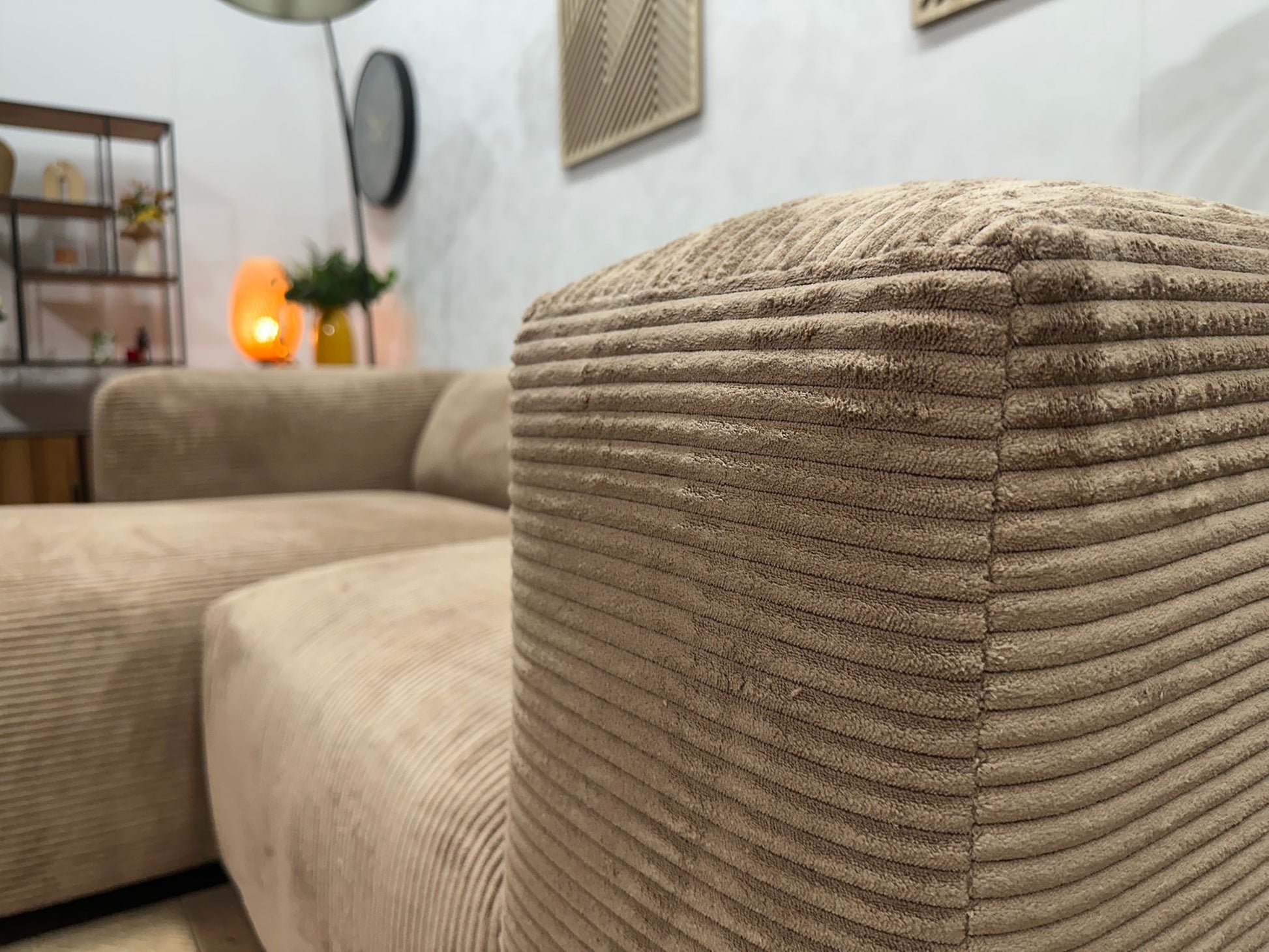 De prachtige ribstof geeft de bank een trendy, aaibare look die helemaal past in de woontrends van nu. De stof voelt zacht aan, is slijtvast — ideaal voor gezinnen, koppels en iedereen die houdt van een knusse zithoek.