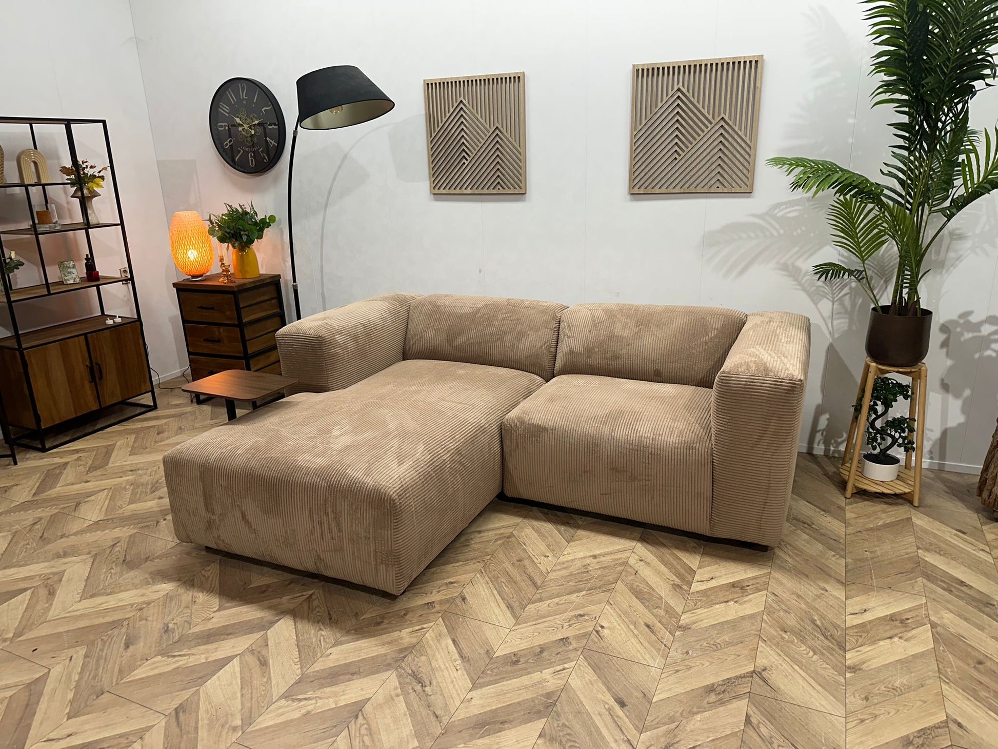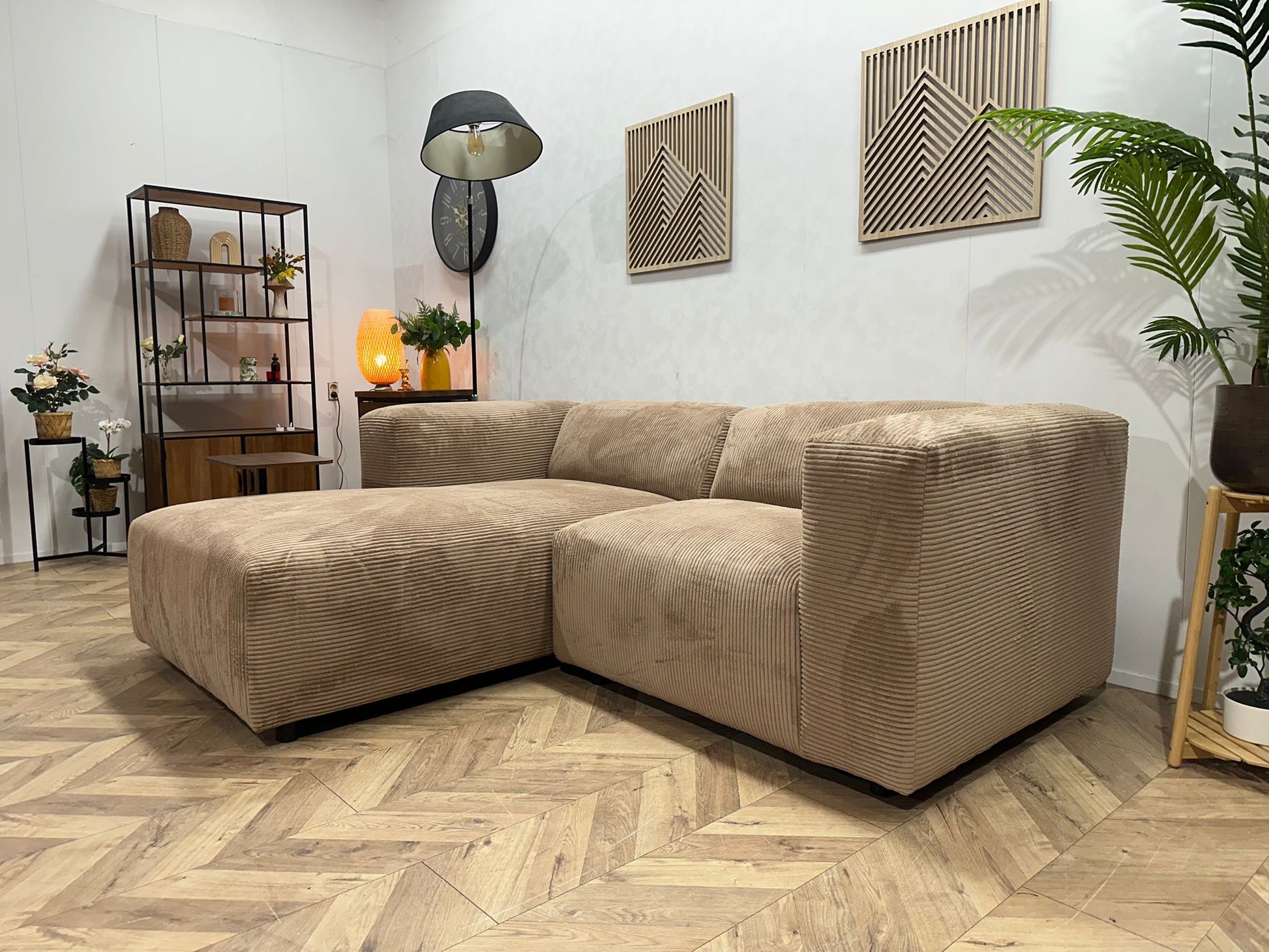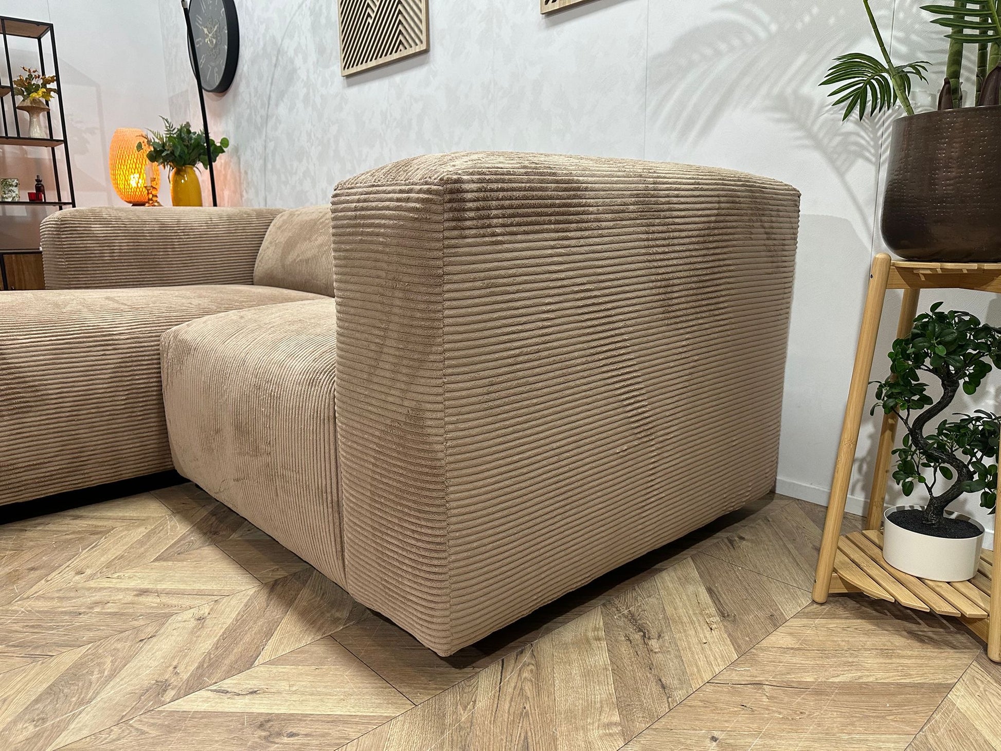 De strakke vormgeving in combinatie met de warme ribstof maakt de Hoekbank Amersfoort een echte blikvanger in je woonkamer. Combineer hem met je favoriete kussens voor een sfeervolle en persoonlijke touch.