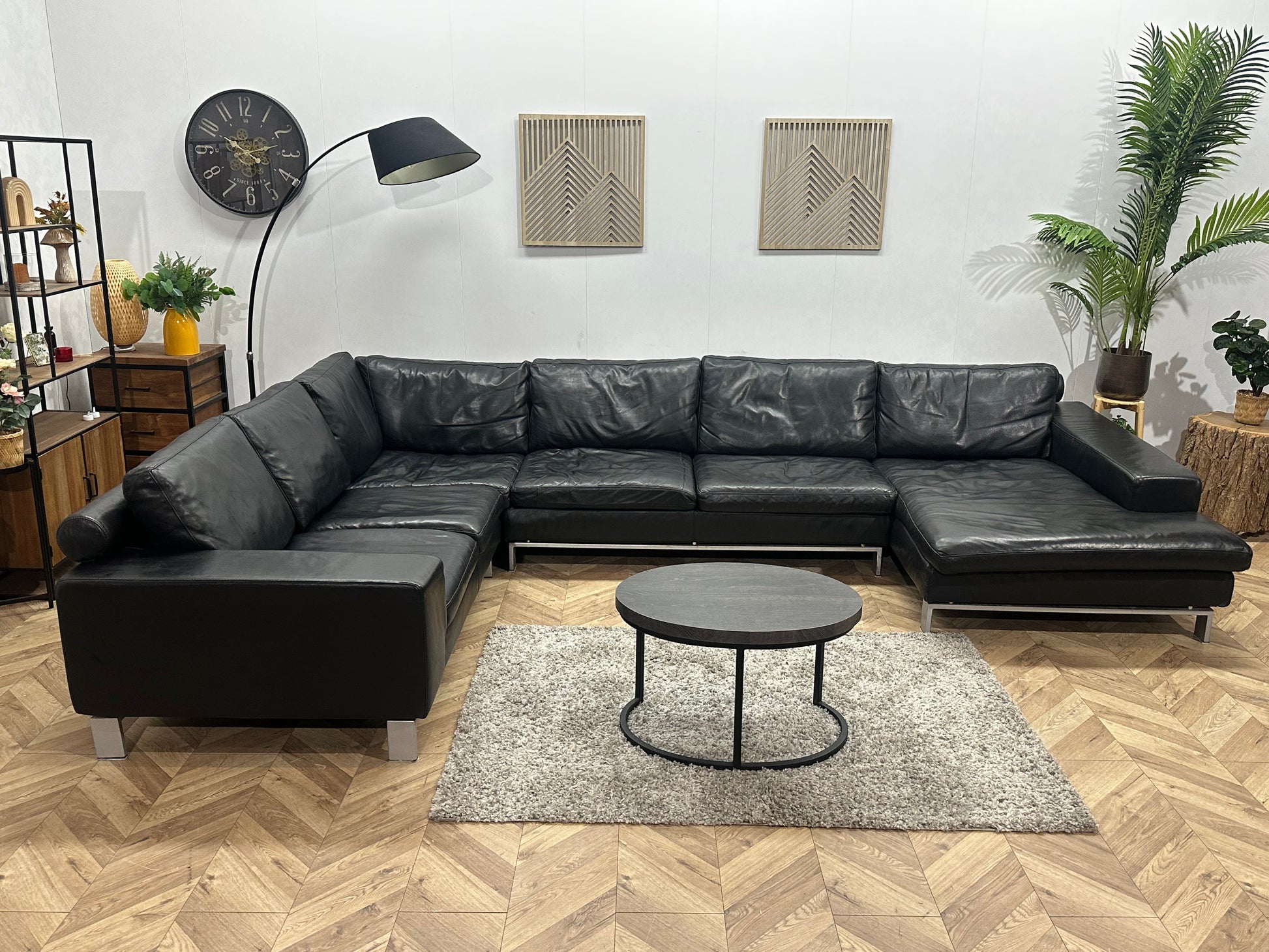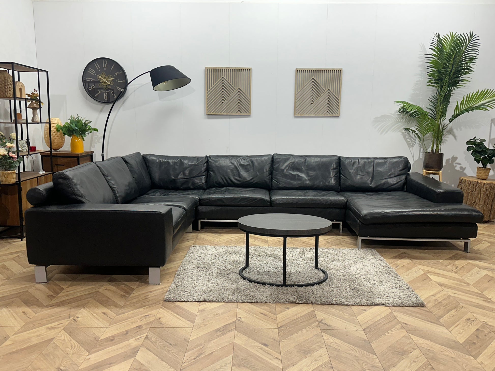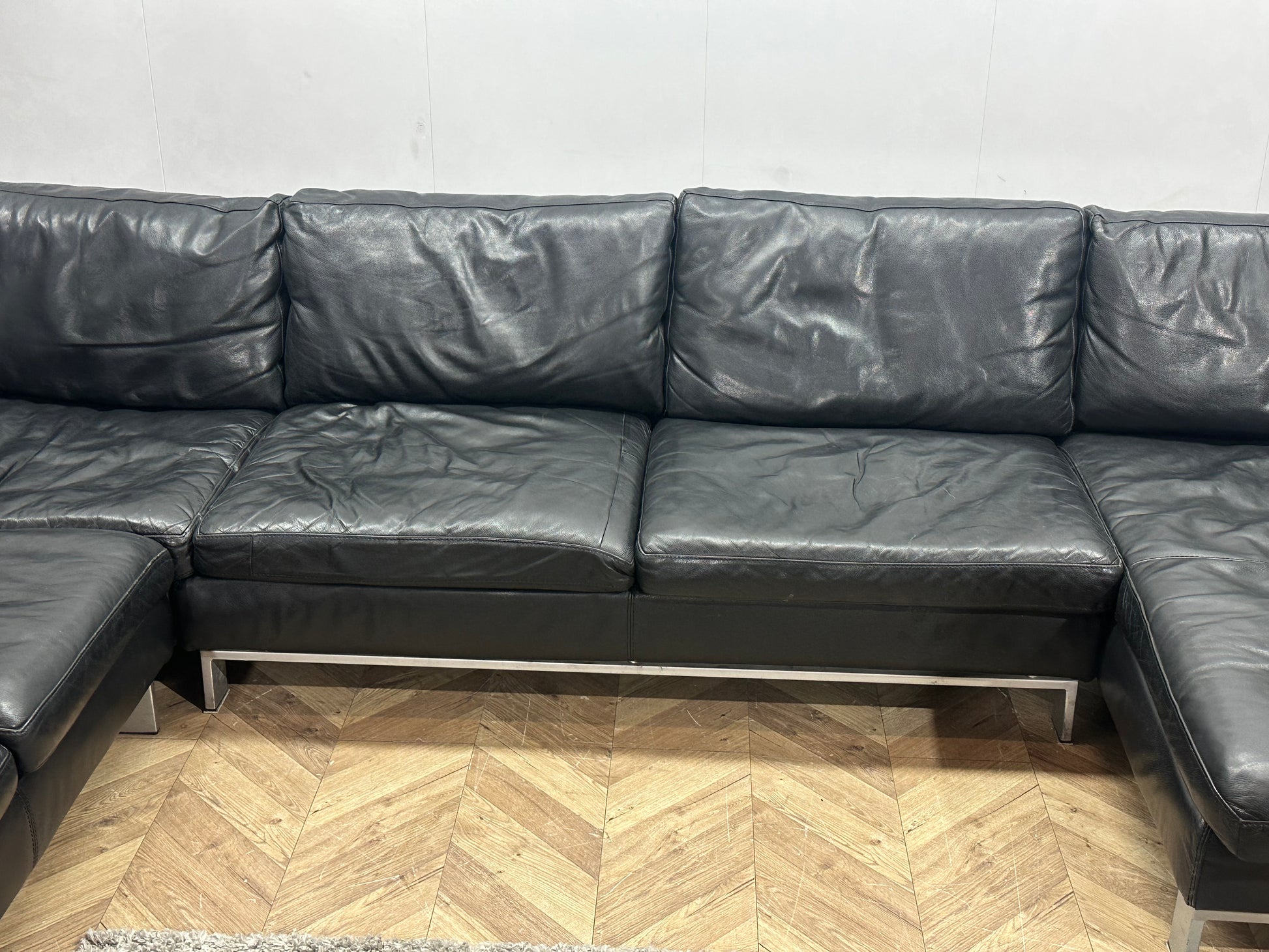 Leatherworld Zwarte Echt Lederen U Bank ~ Losse Kussens Met Afneembare Hoezen