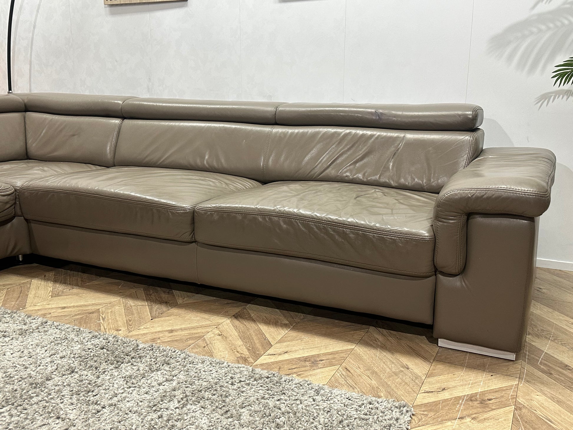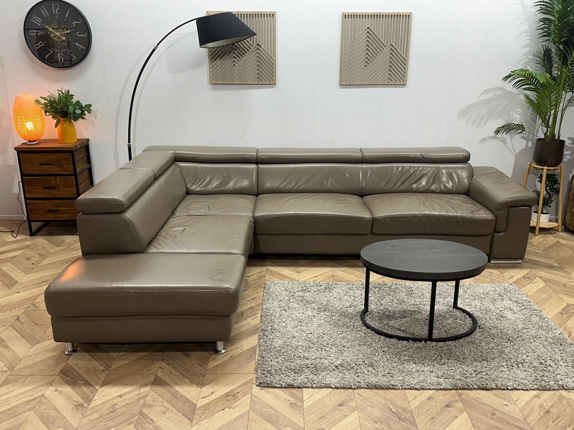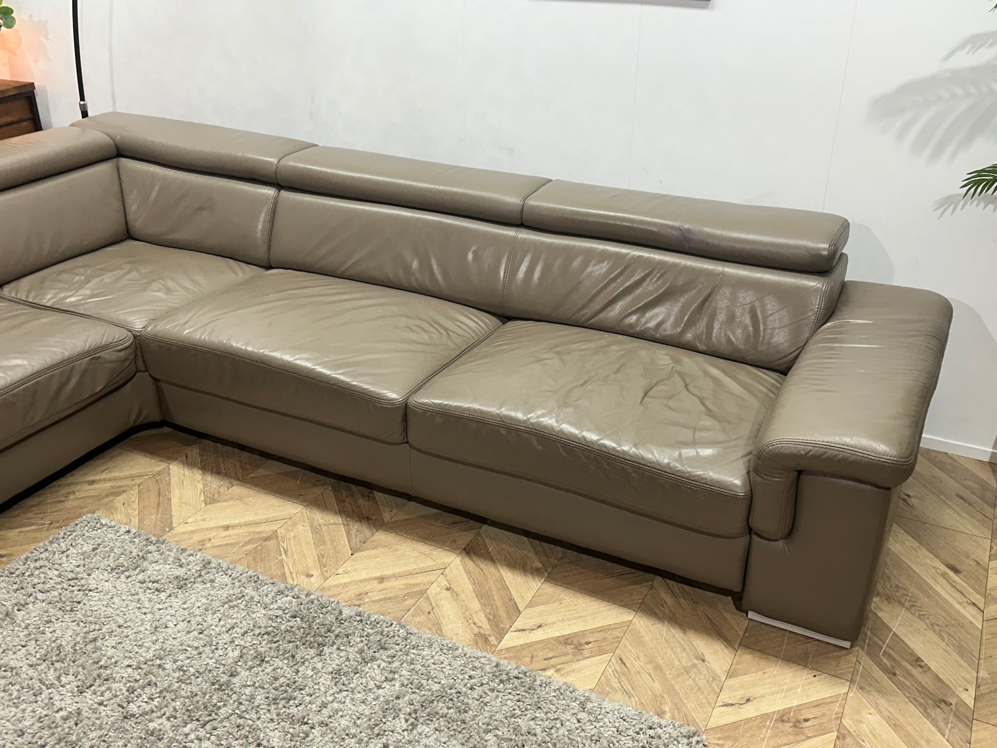 Licht Bruine Echt Lederen Hoekbank ~ Verstelbare Hoofdsteunen