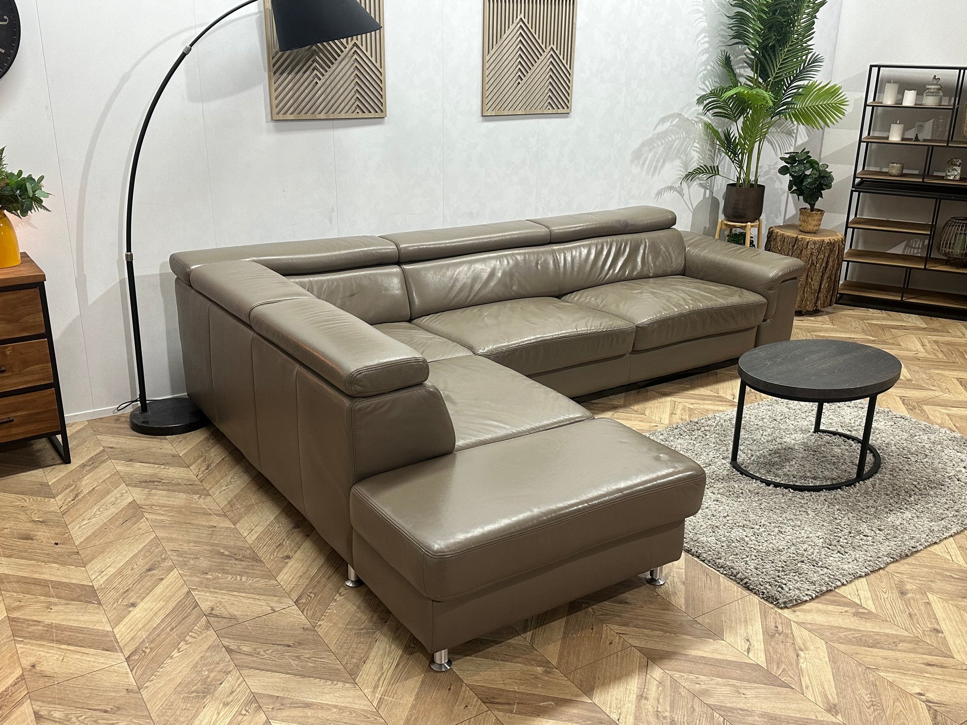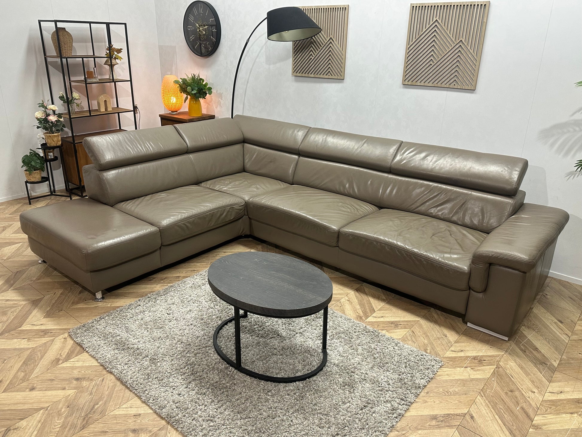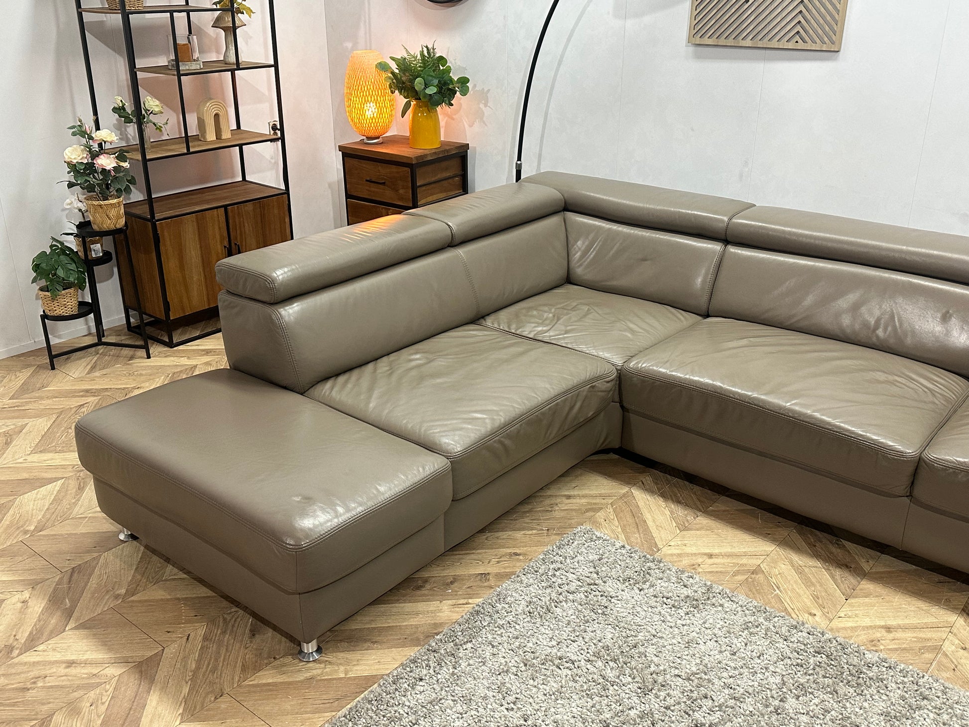 Licht Bruine Echt Lederen Hoekbank ~ Verstelbare Hoofdsteunen