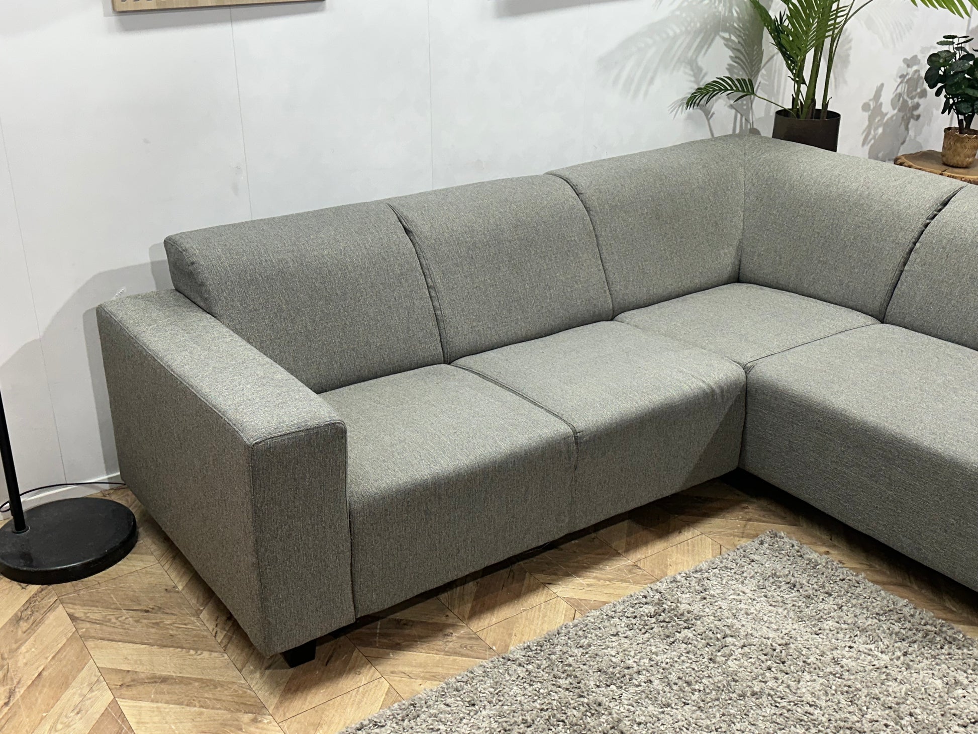 Licht Grijze Hoekbank ~ Vaste Kussens