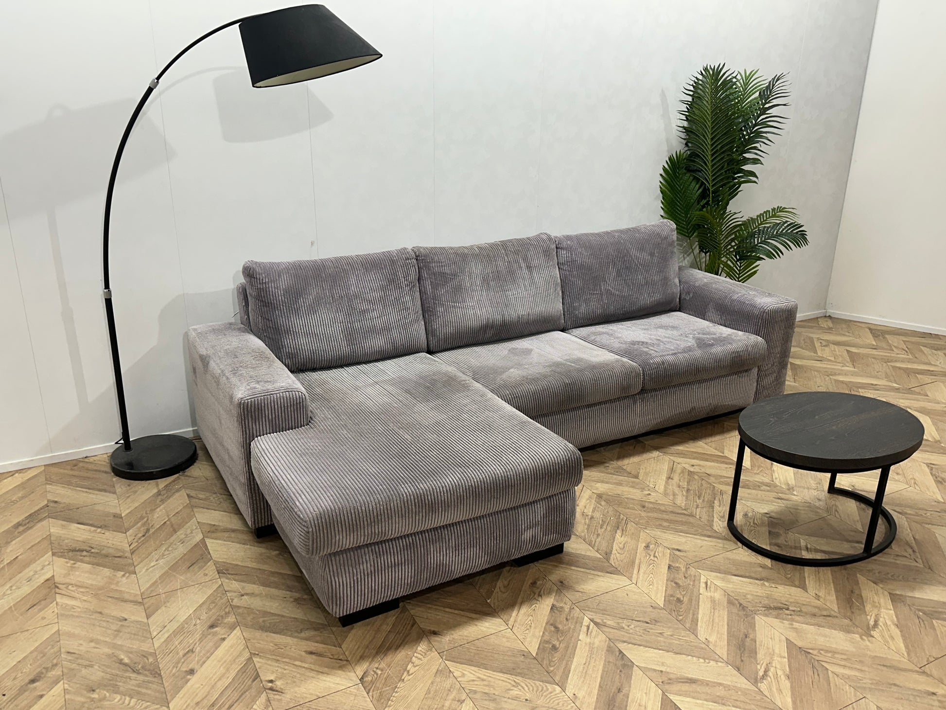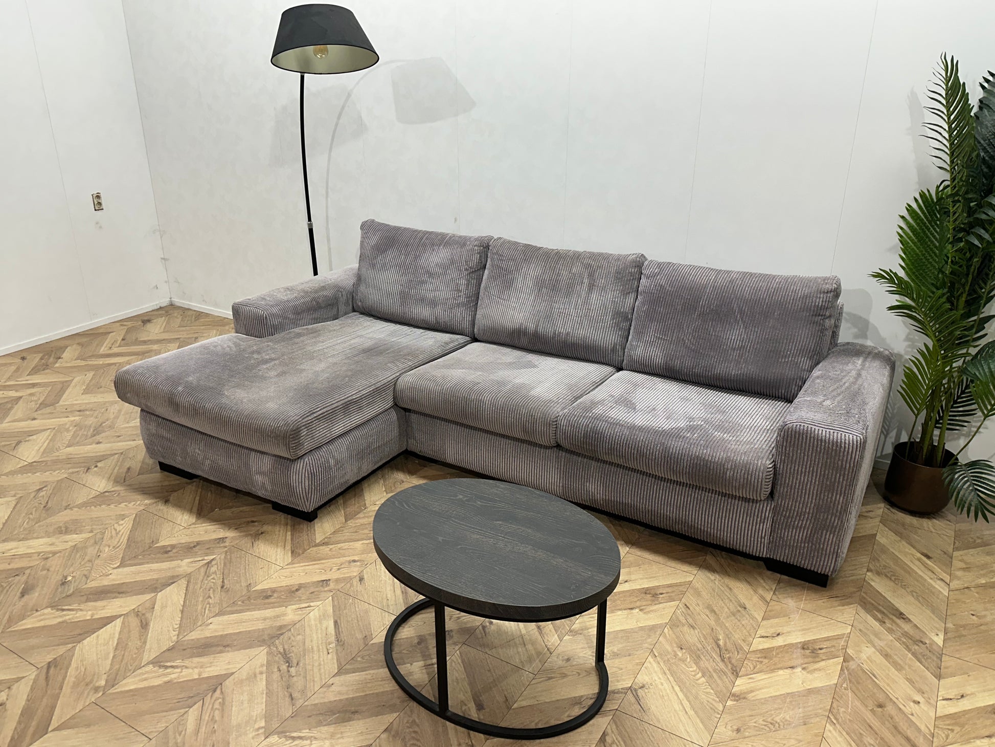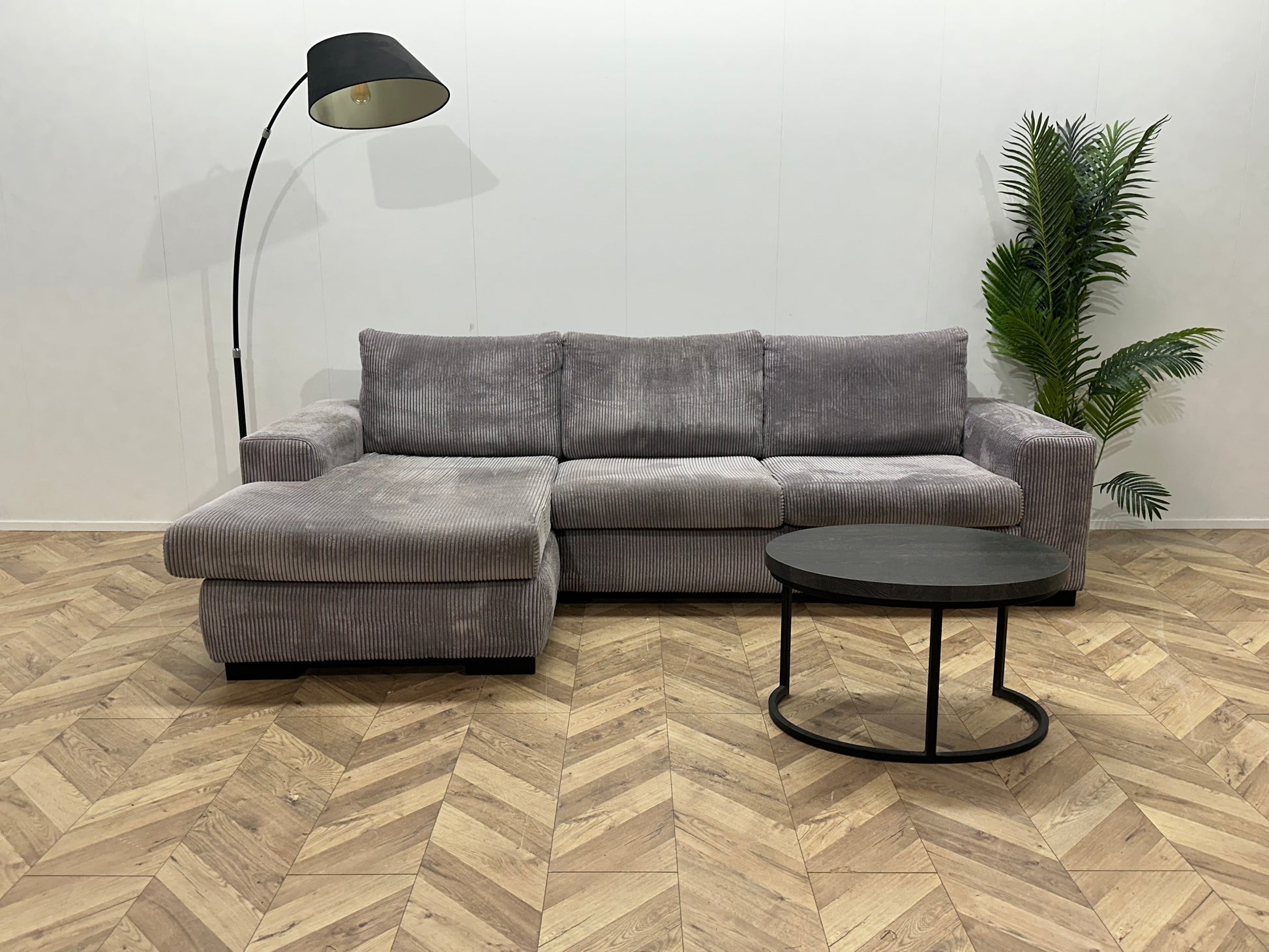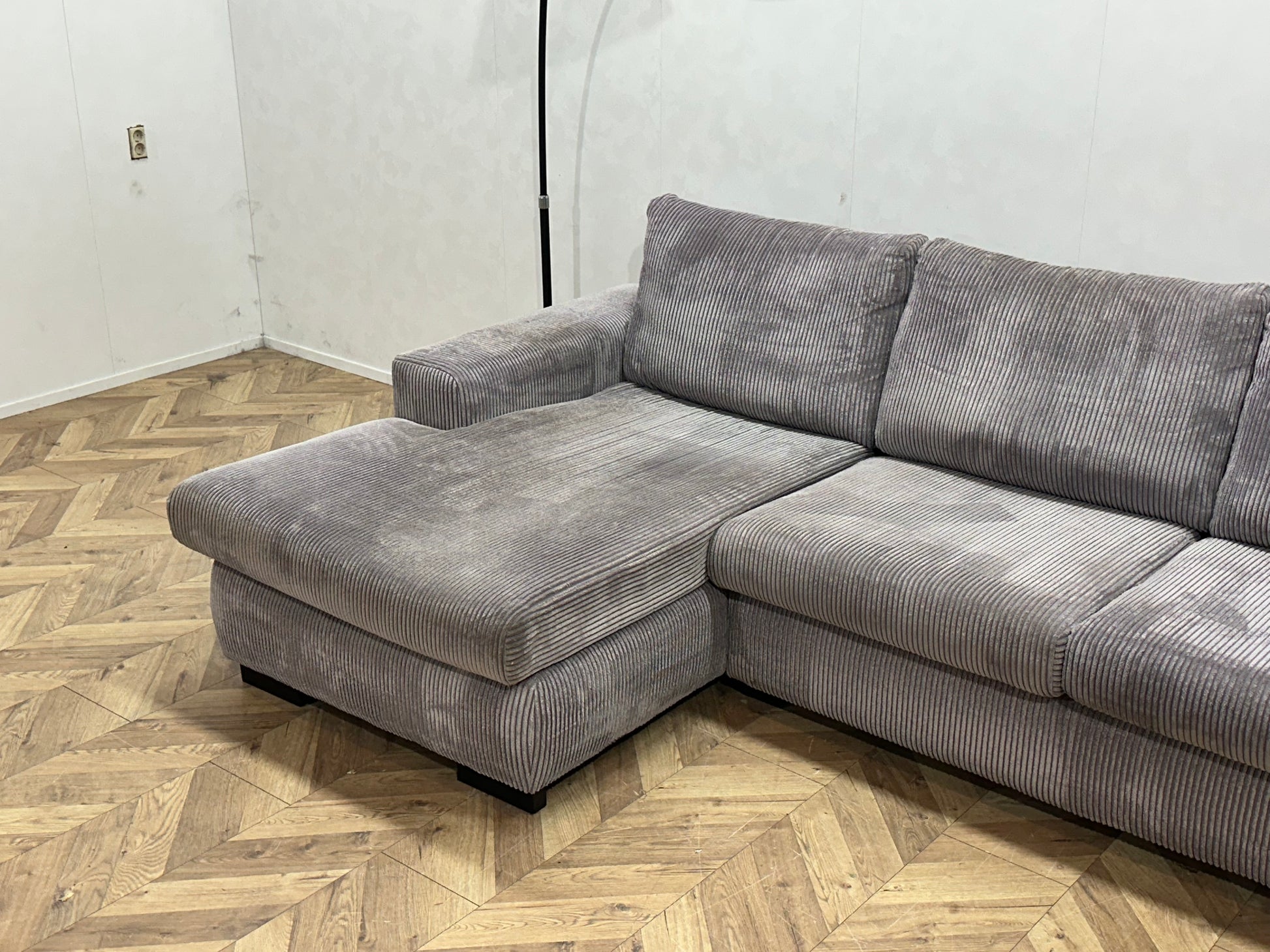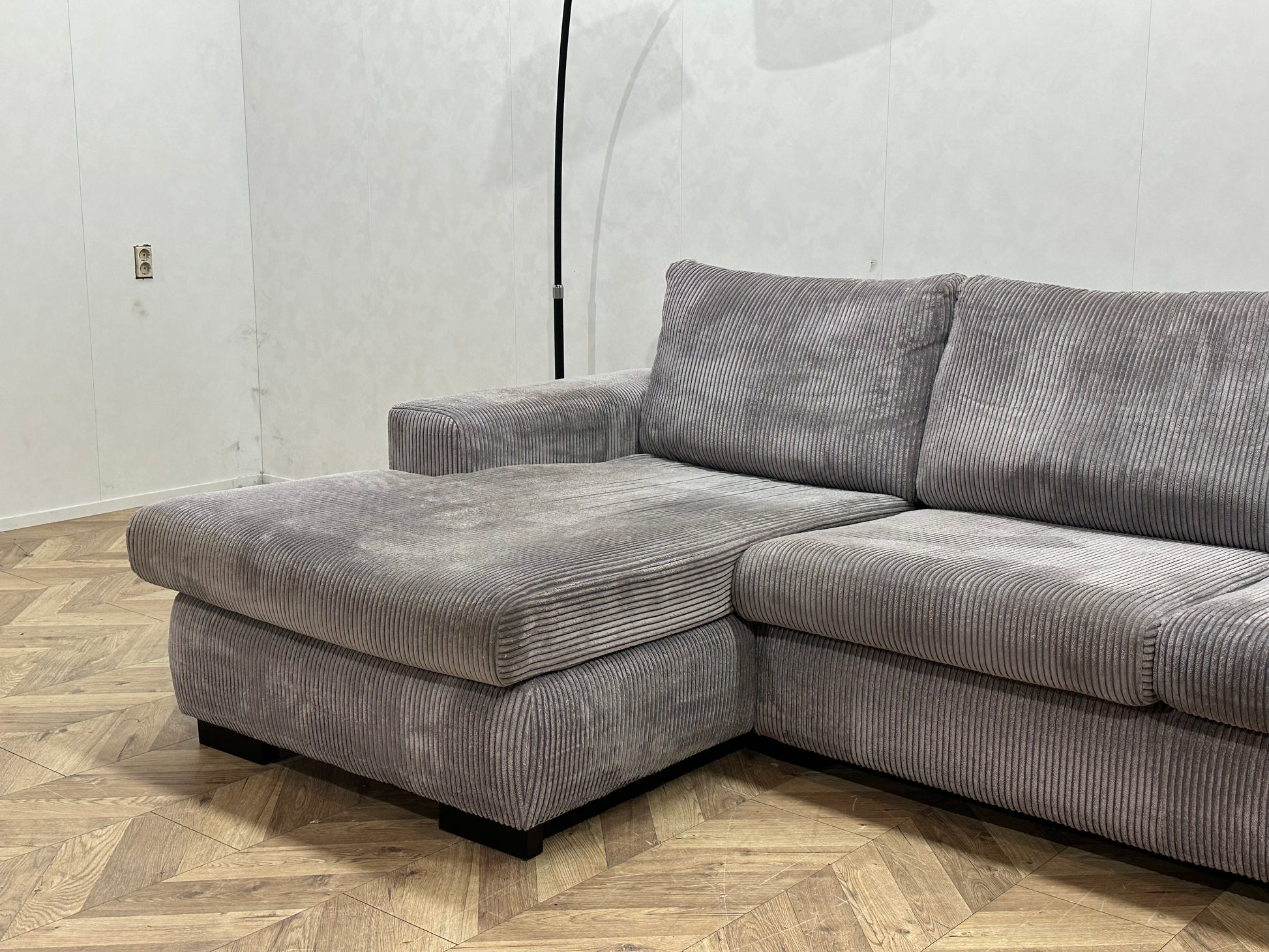 Licht Grijze Ribstof Hoekbank ~ Losse Kussens Met Afneembare Hoezen