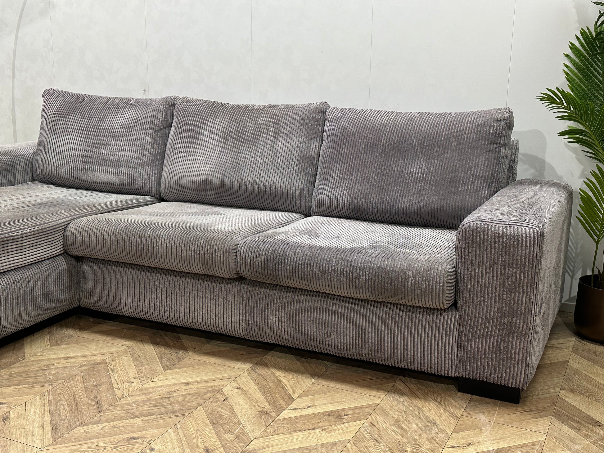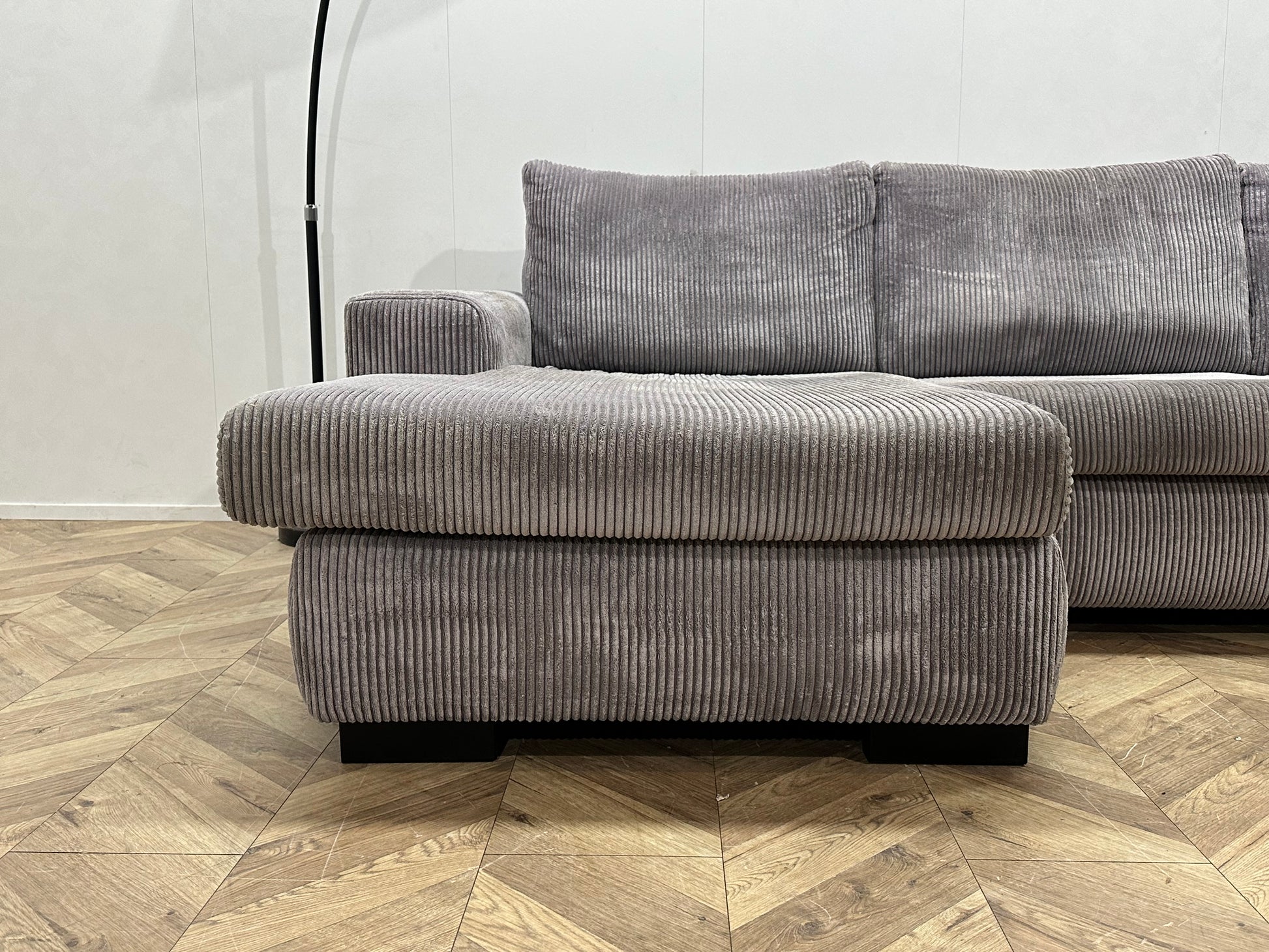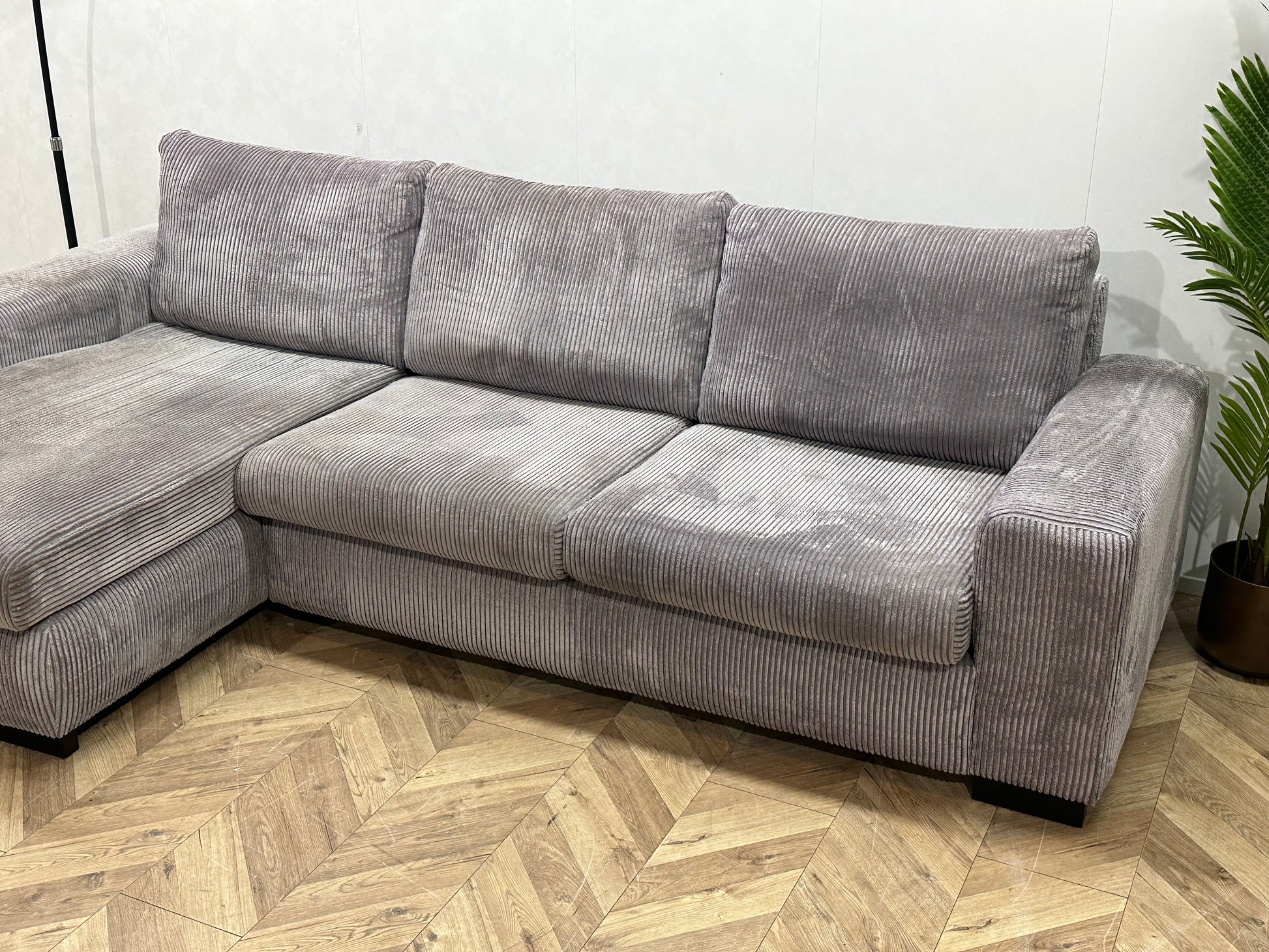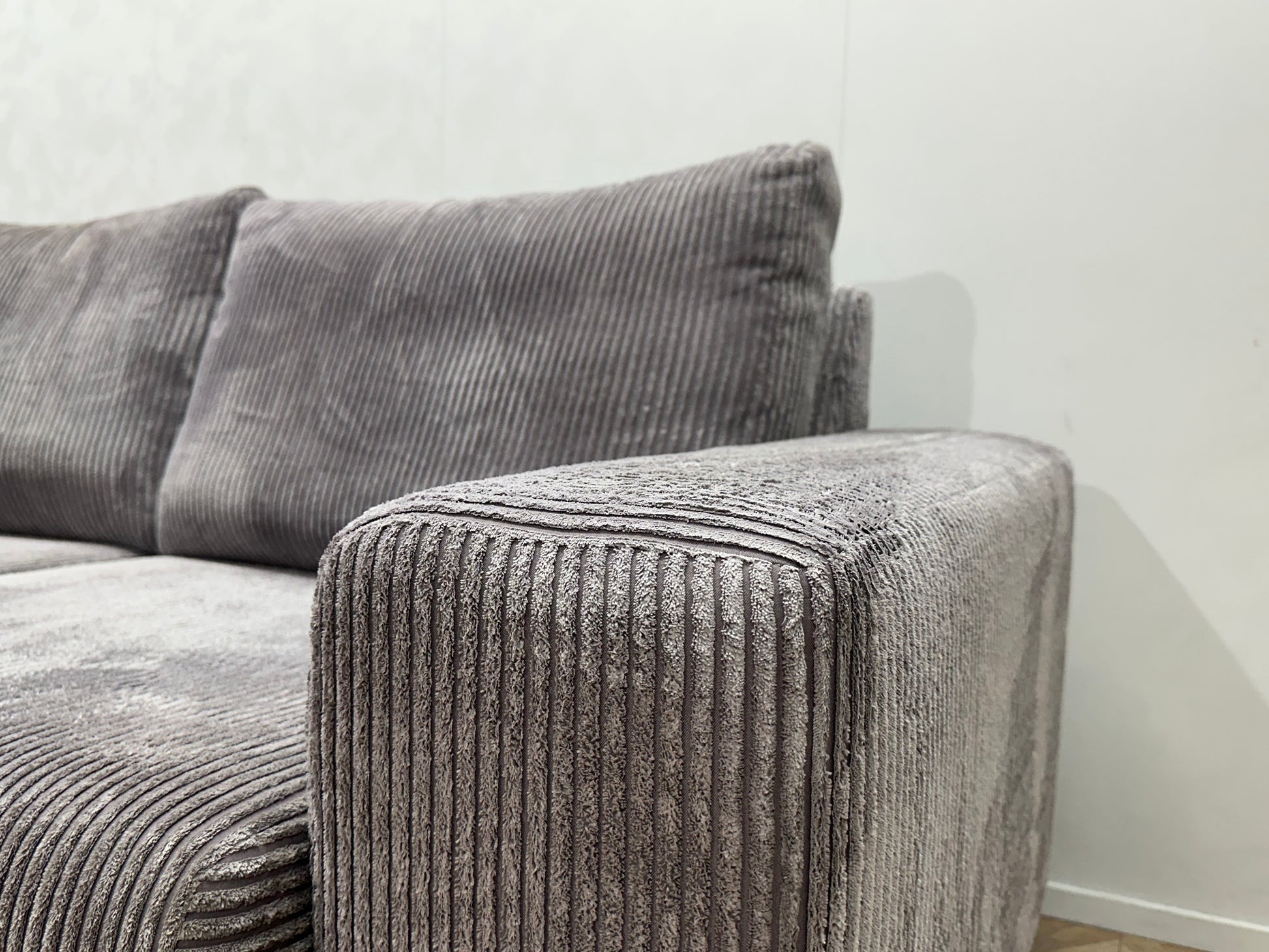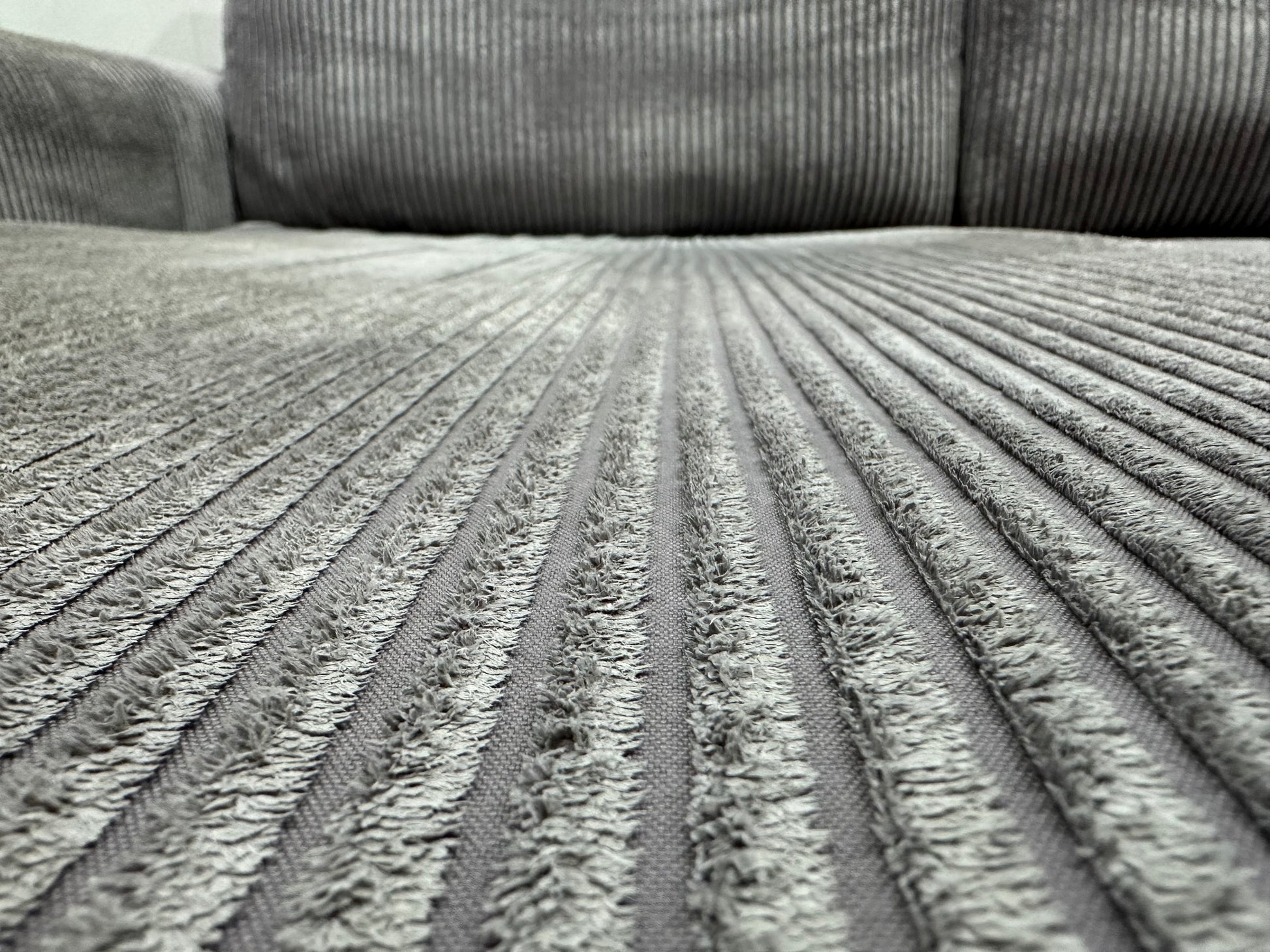 Licht Grijze Ribstof Hoekbank ~ Losse Kussens Met Afneembare Hoezen