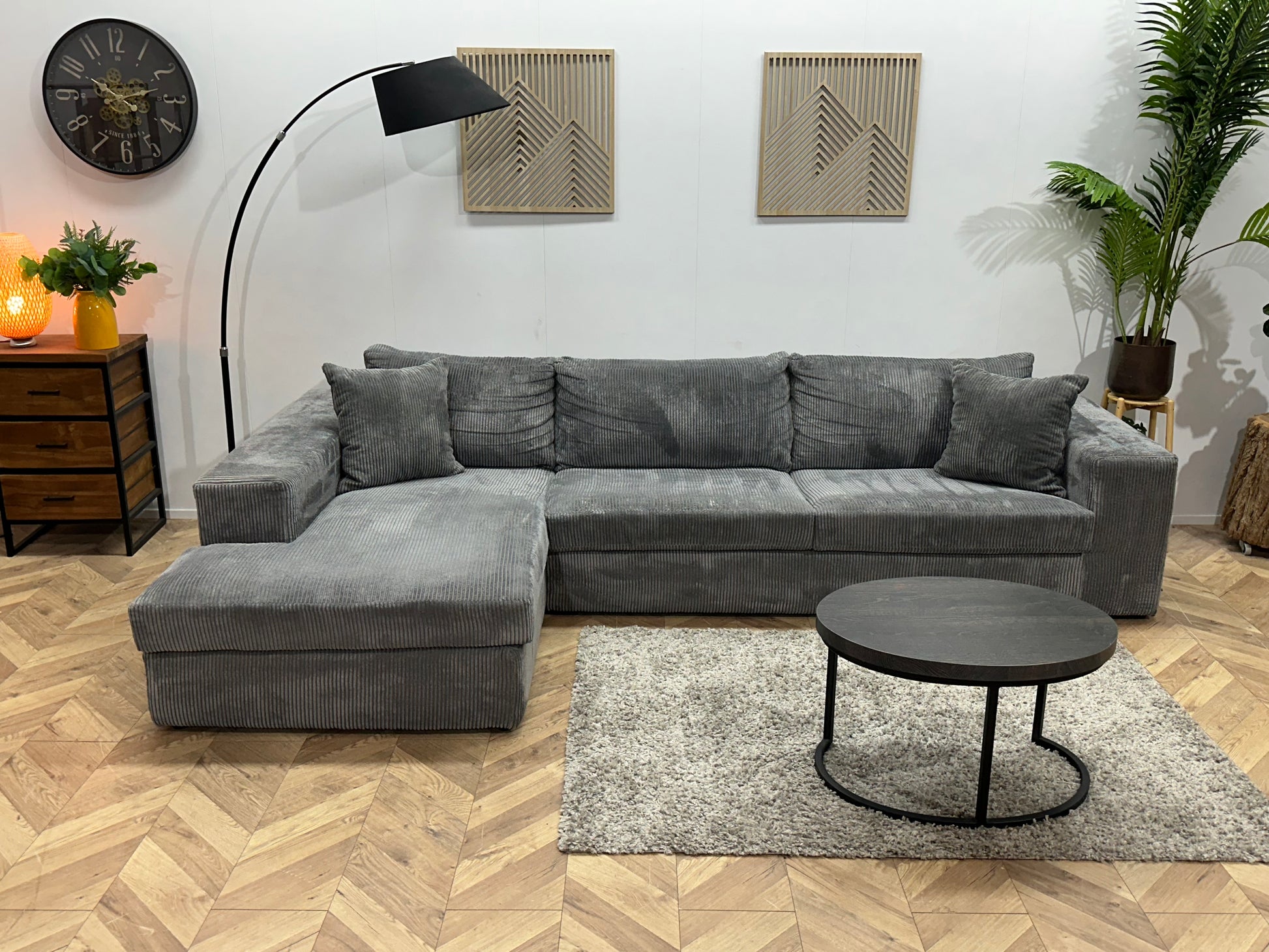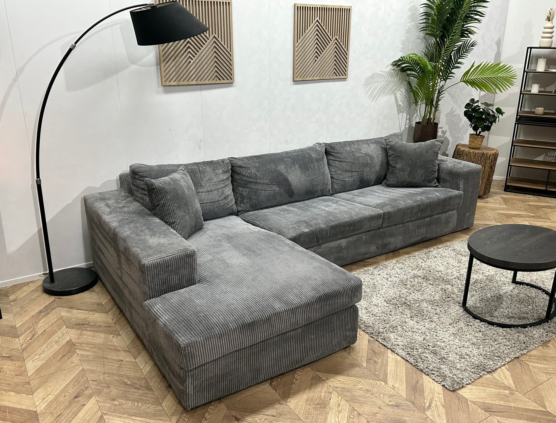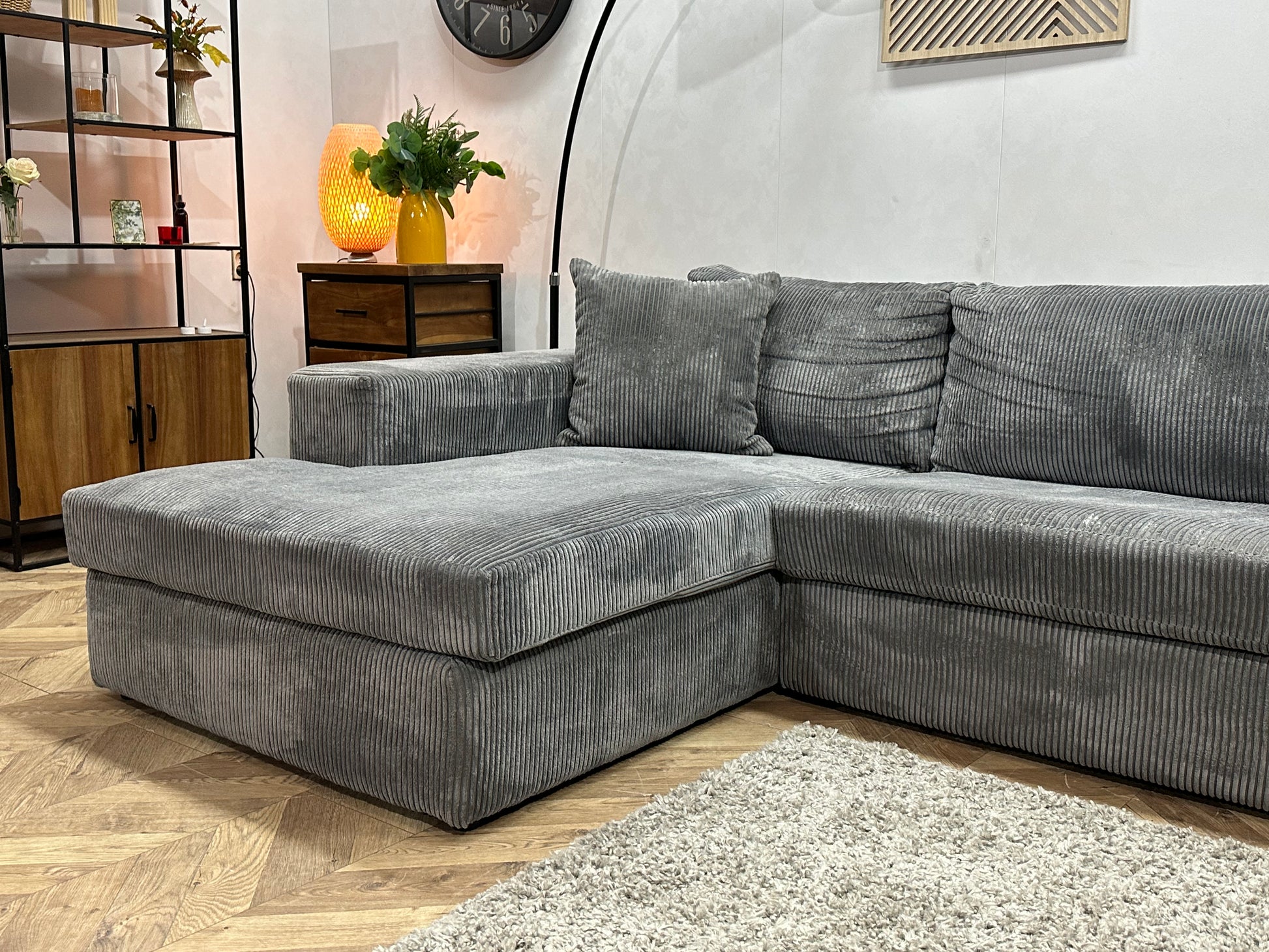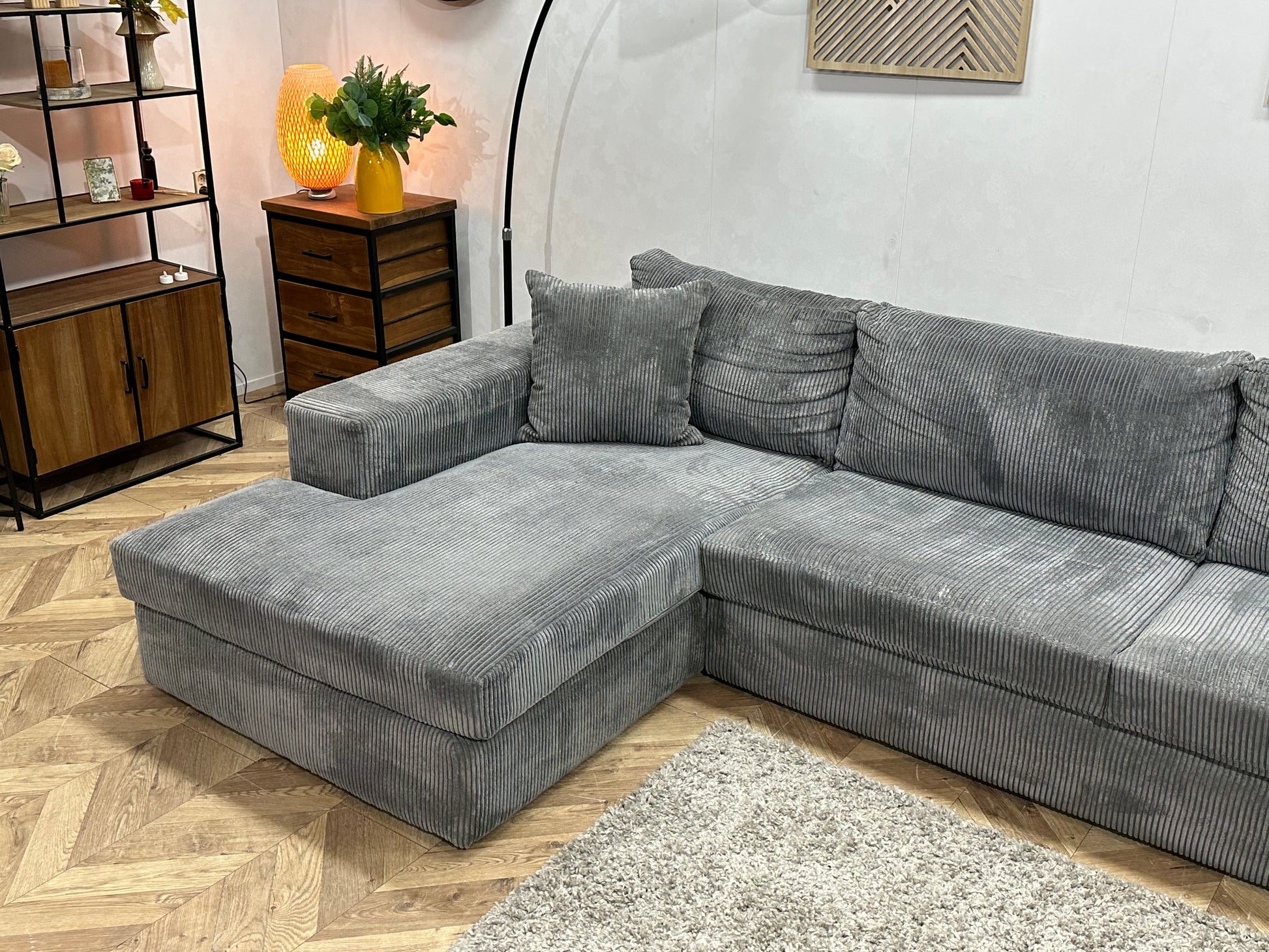 Licht Grijze Ribstof Hoekbank ~ Losse Kussens Met Afneembare Hoezen