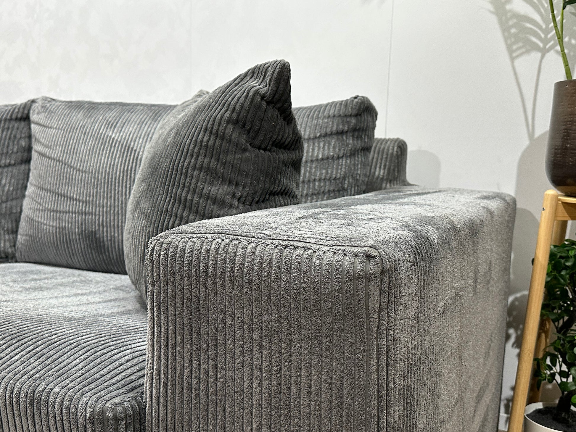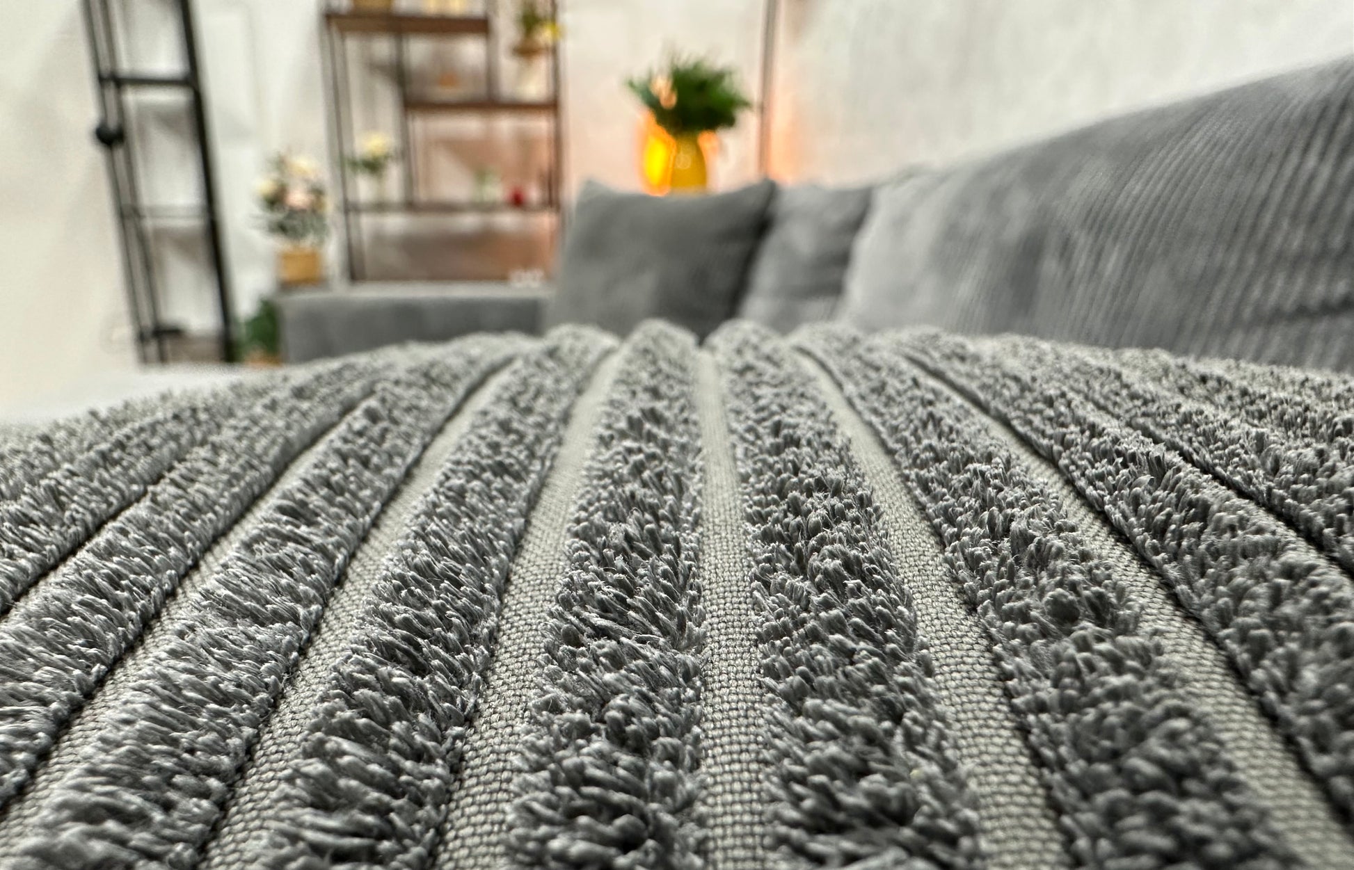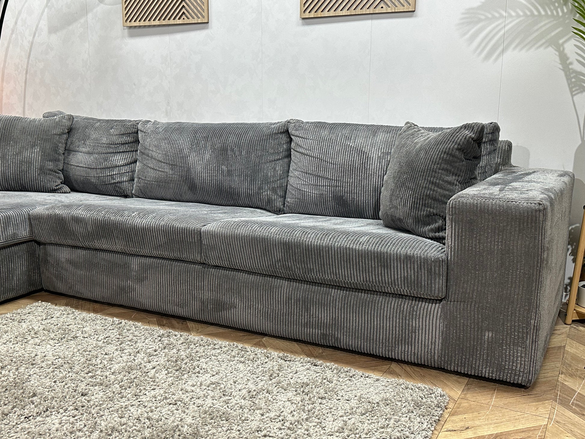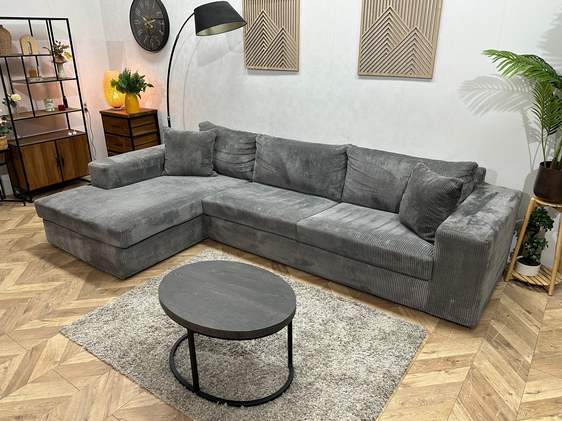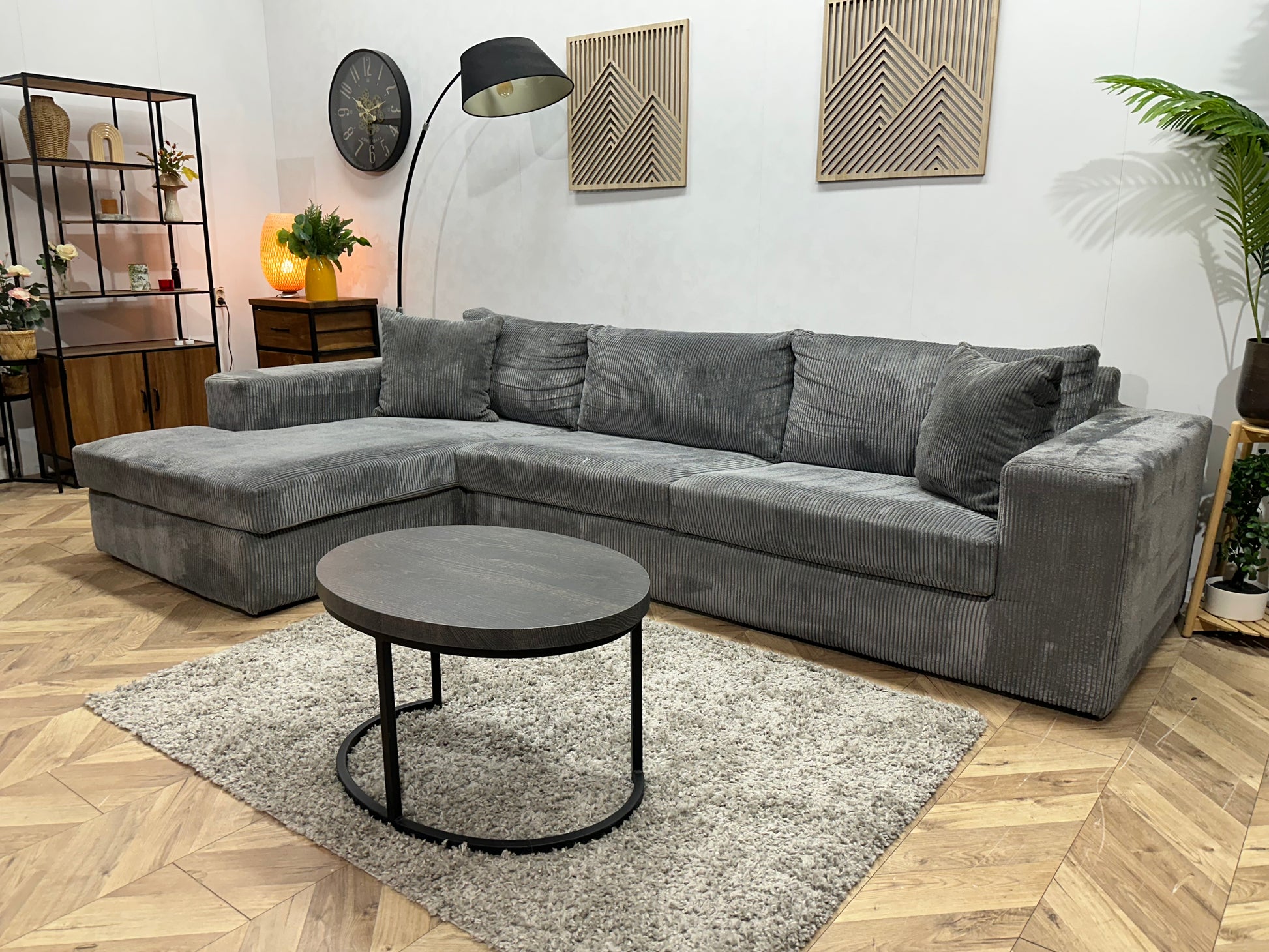 Licht Grijze Ribstof Hoekbank ~ Losse Kussens Met Afneembare Hoezen