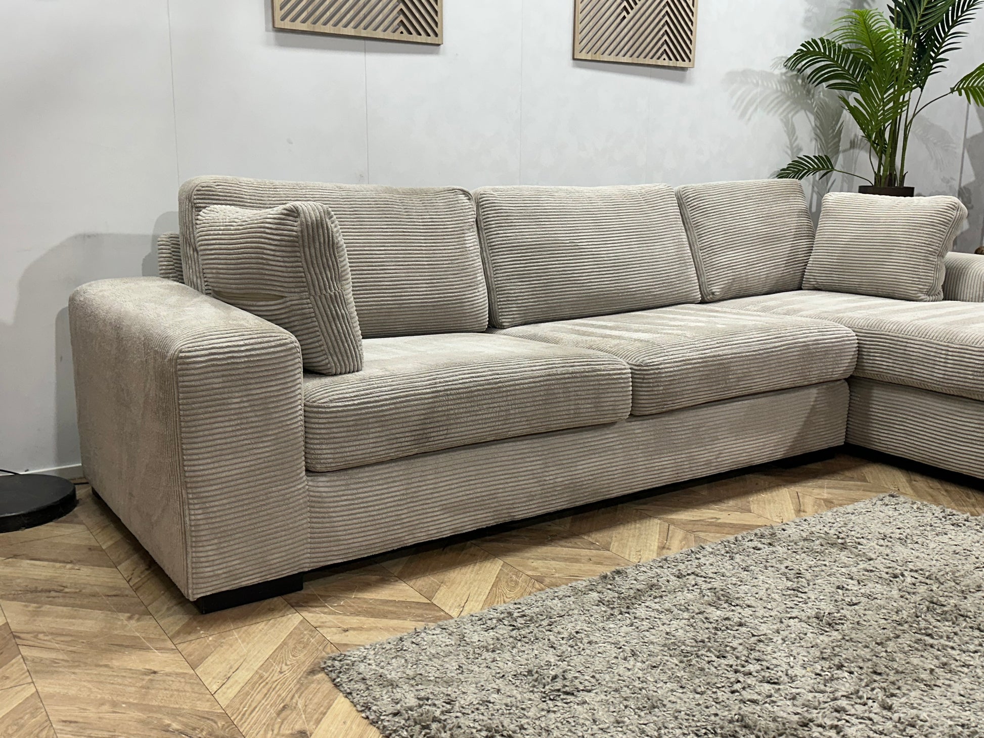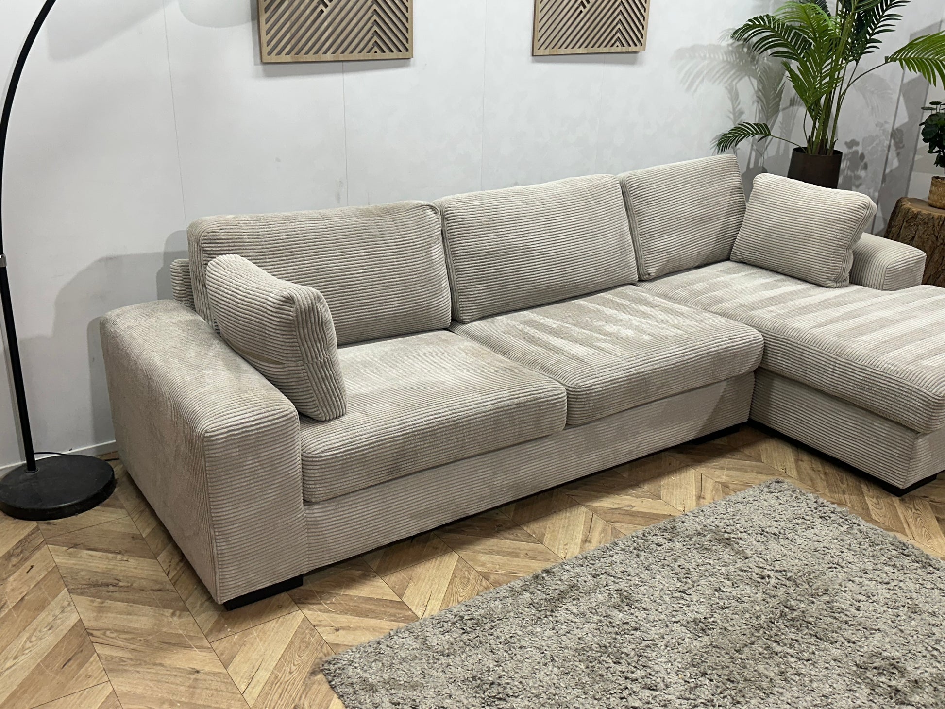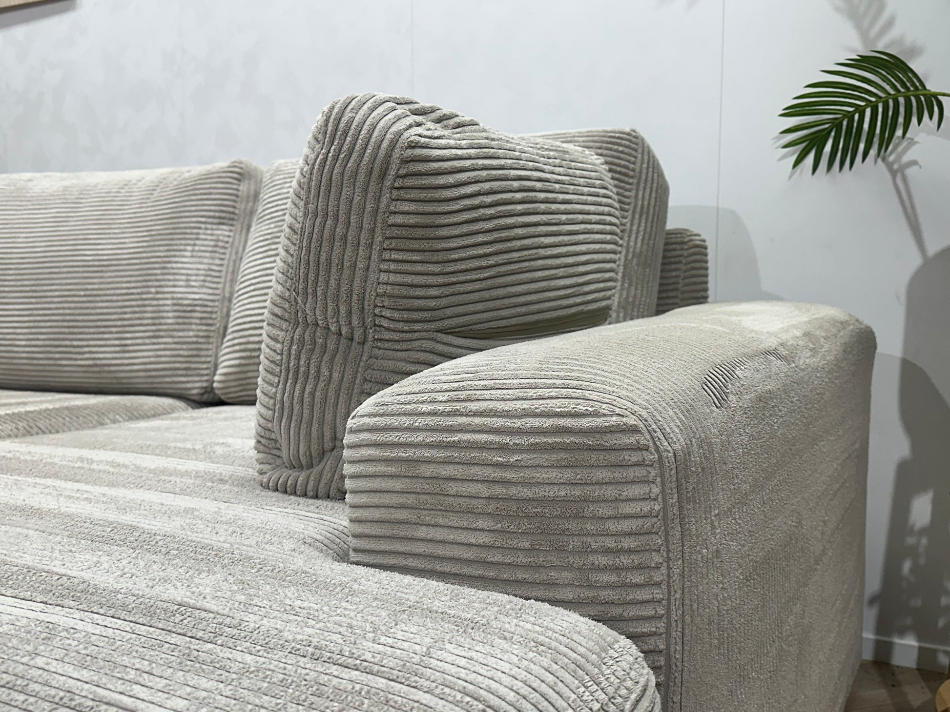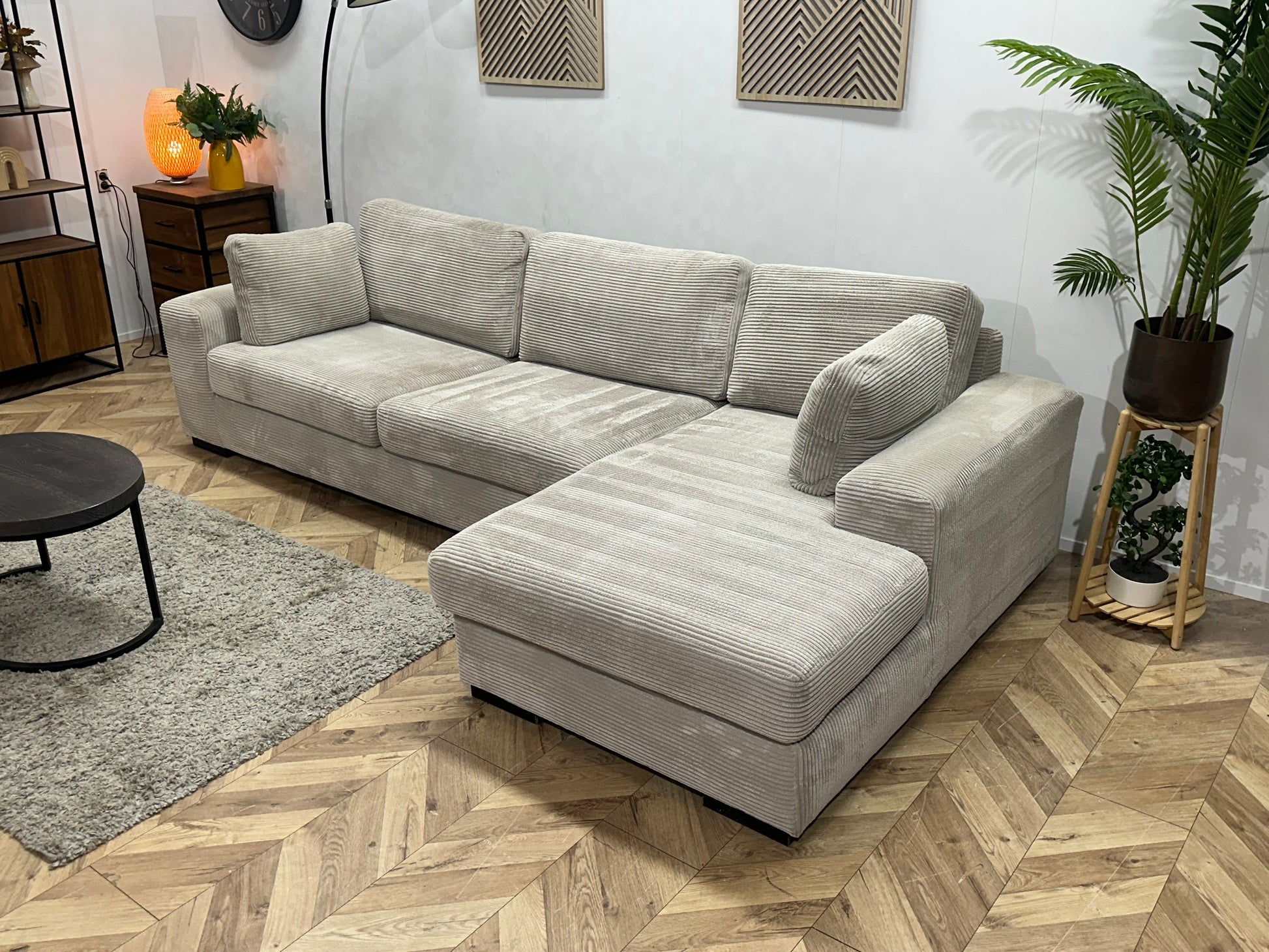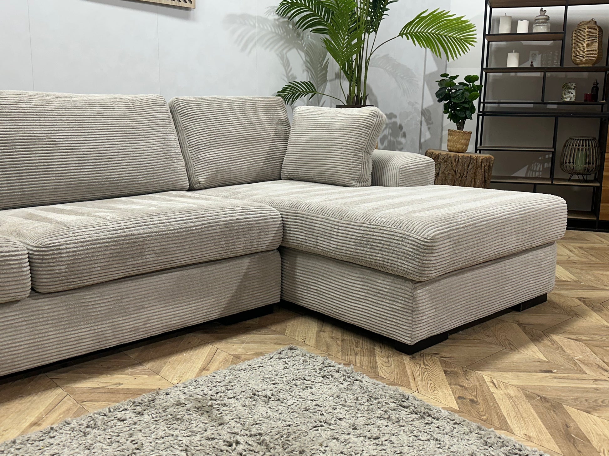 Licht Grijze Ribstof Hoekbank ~ Losse Kussens Met Afneembare Hoezen