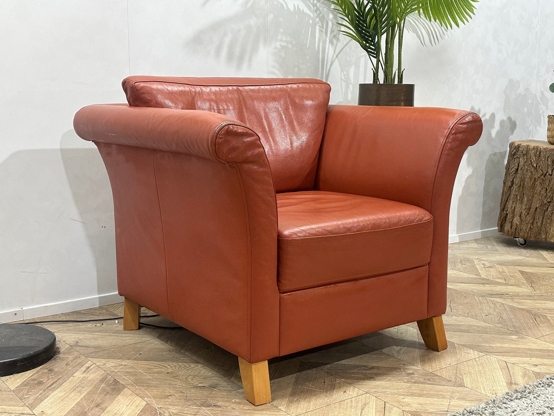 Licht Rode Echt Lederen Fauteuil ~ Losse Rugkussen Met Afneembare Hoes