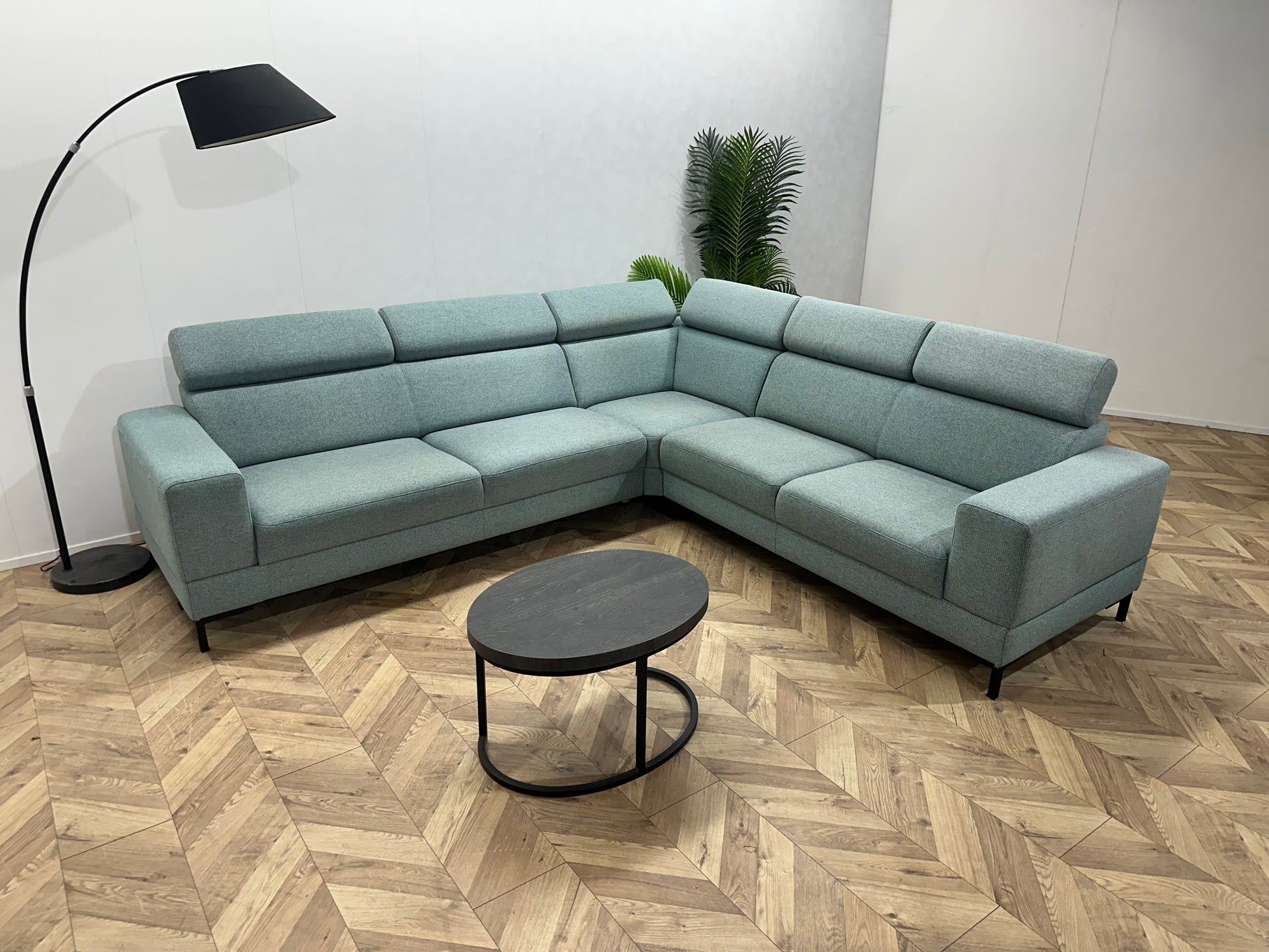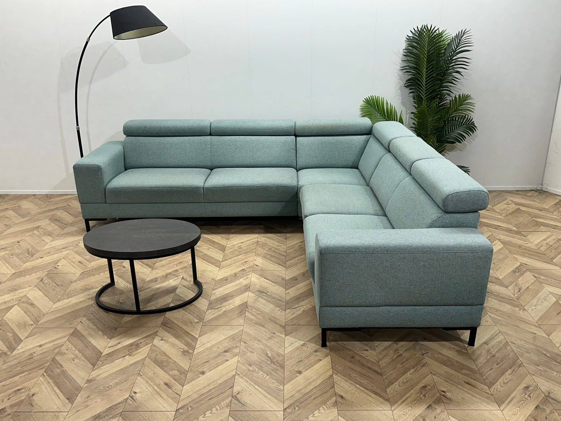 Montèl Licht Blauwe Hoekbank ~ Verstelbare Hoofdsteunen