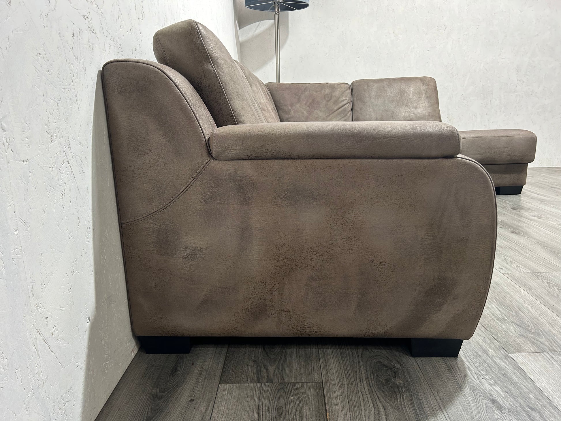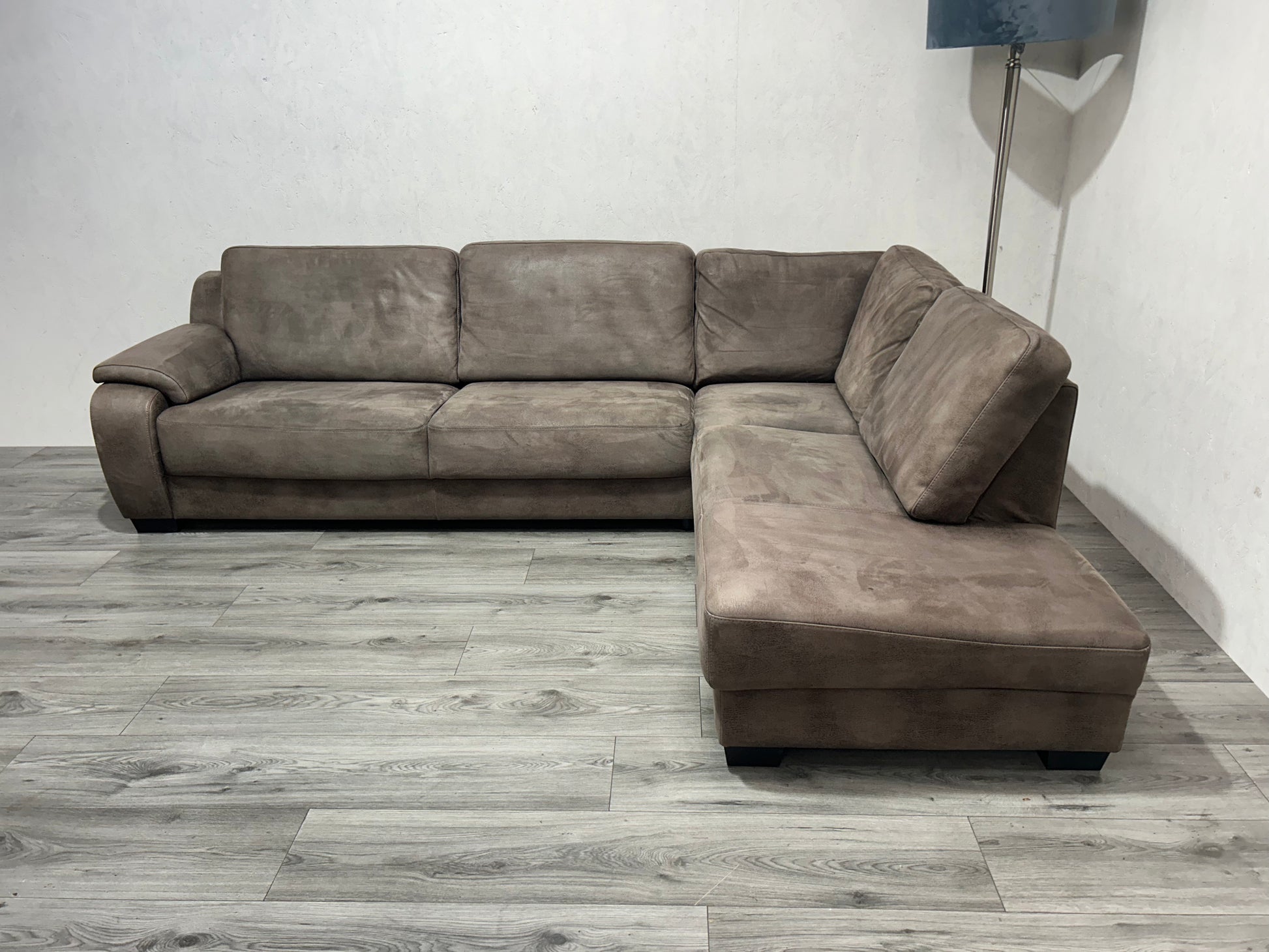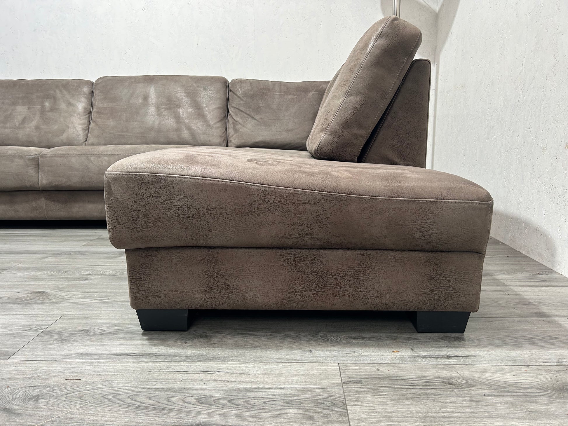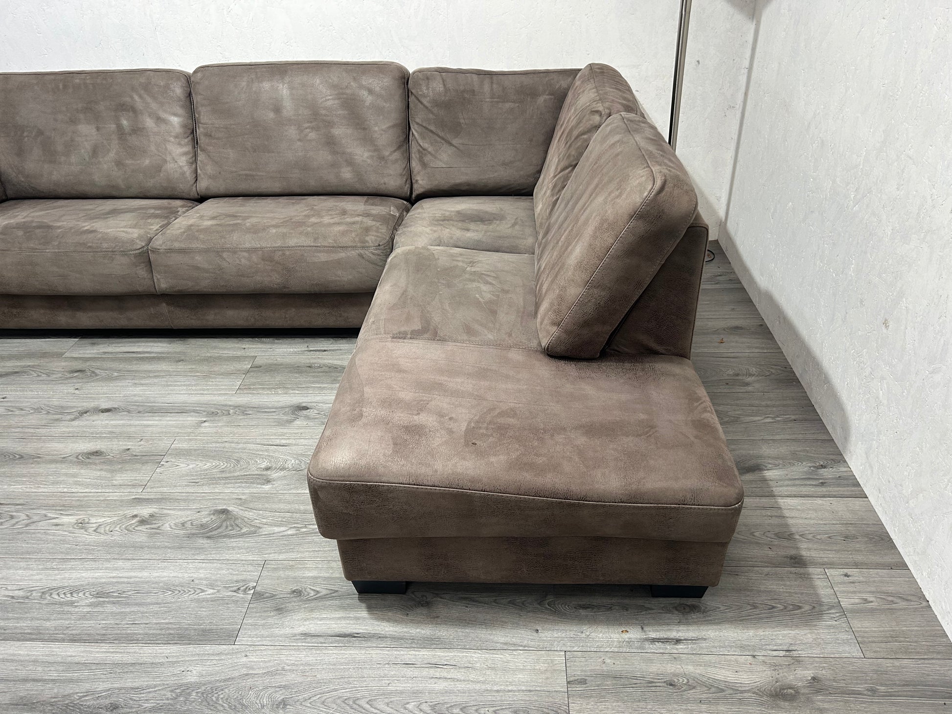 Bruine Suède Leren Hoekbank ~ Vaste Kussens