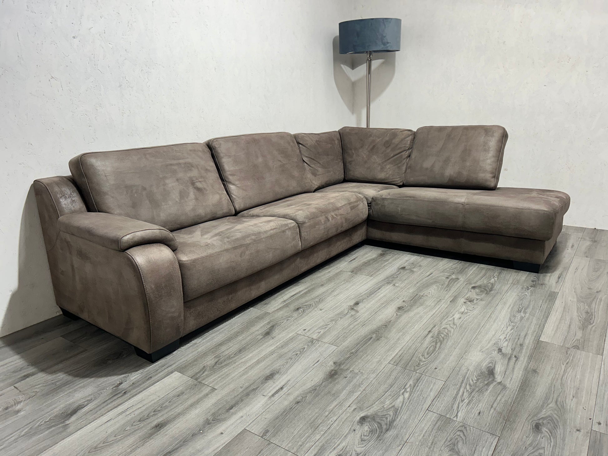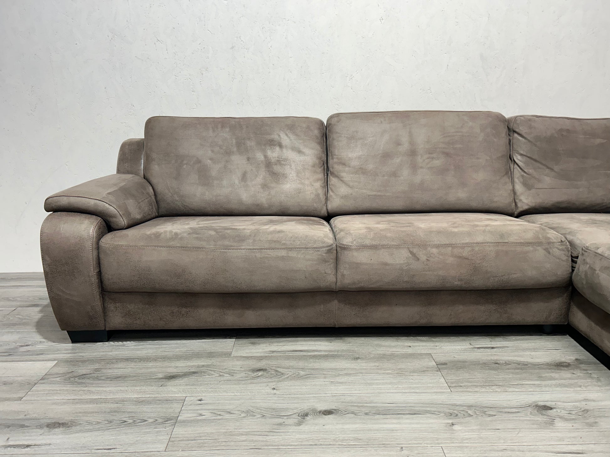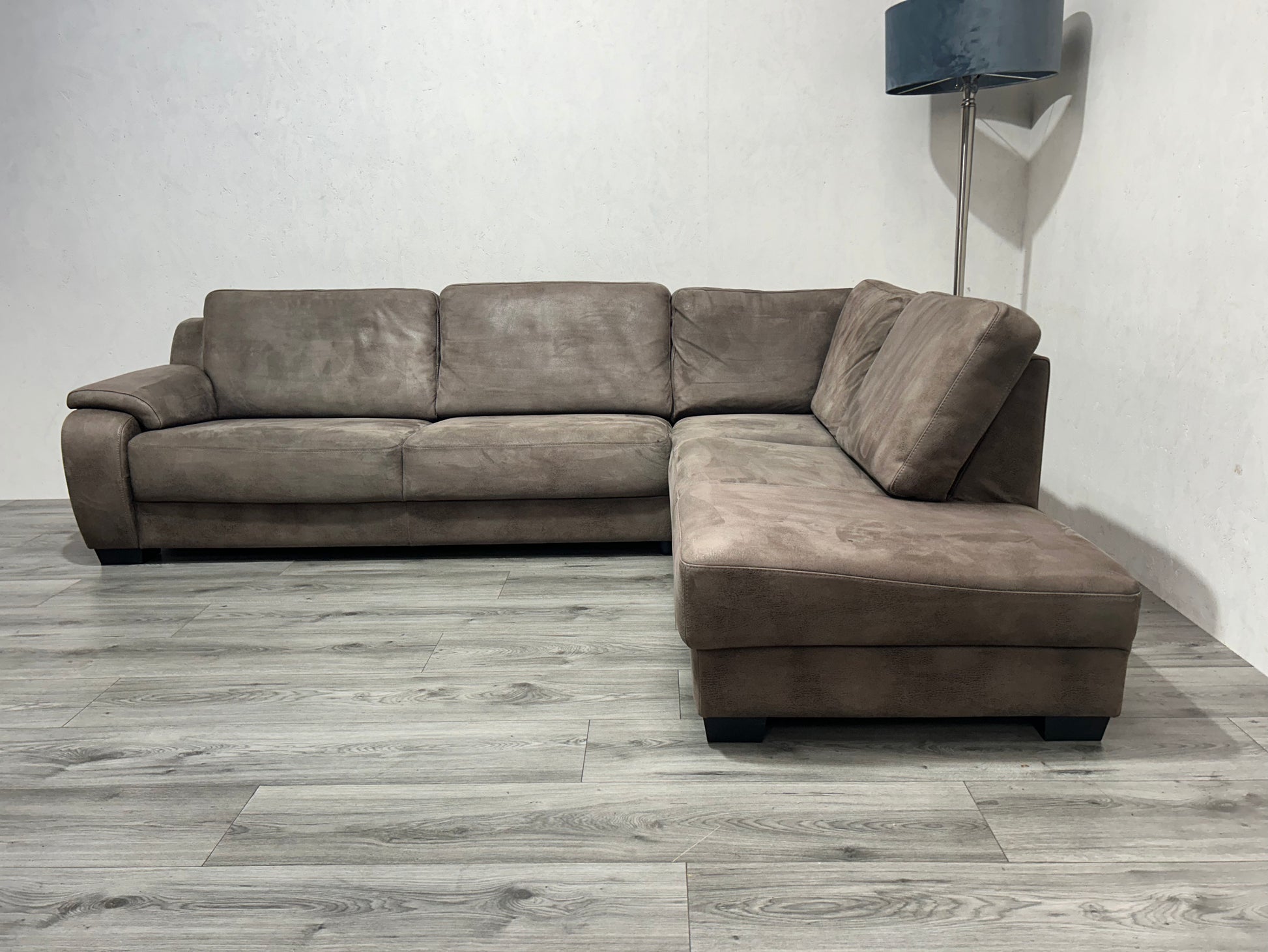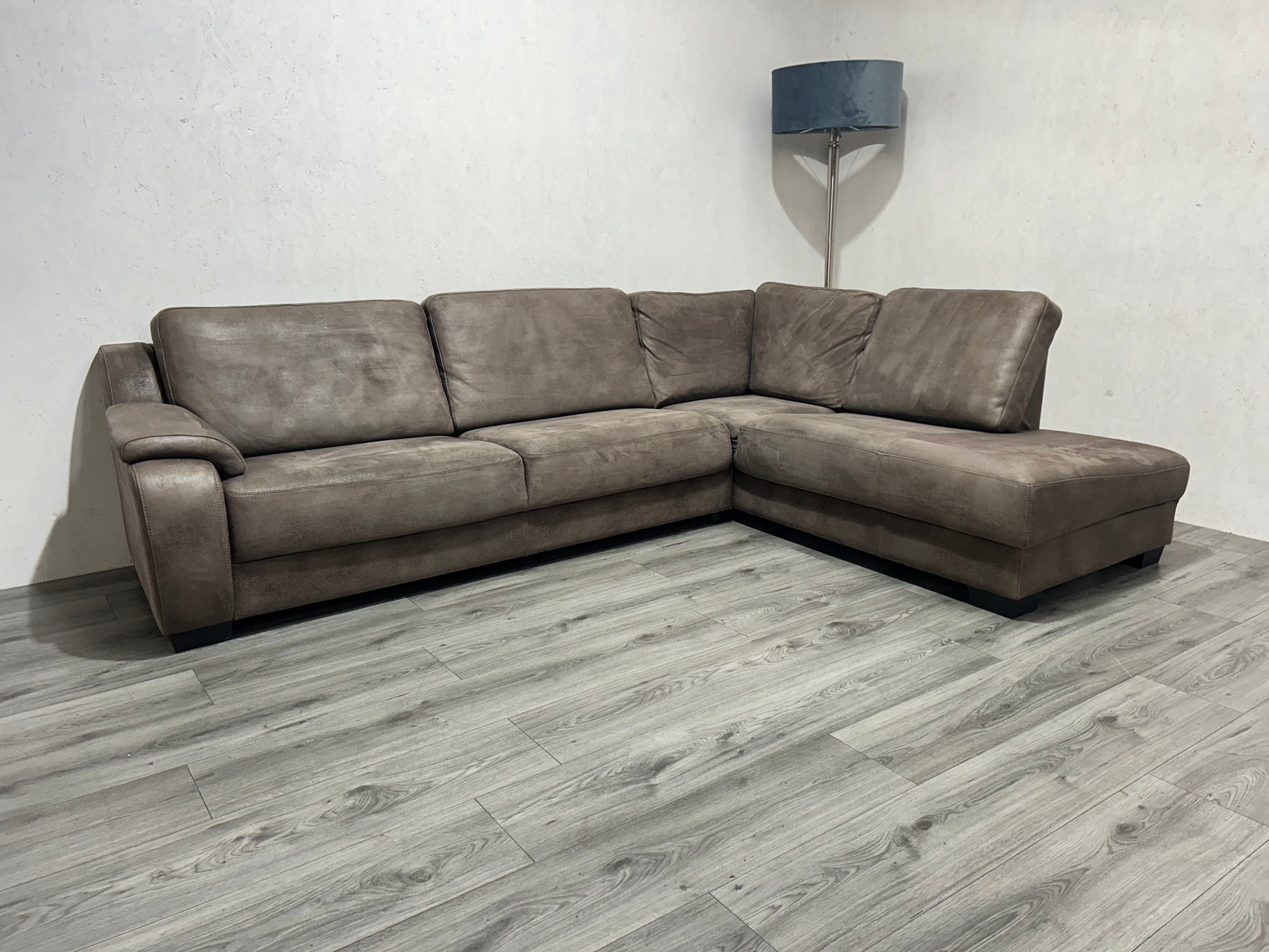 Bruine Suède Leren Hoekbank ~ Vaste Kussens