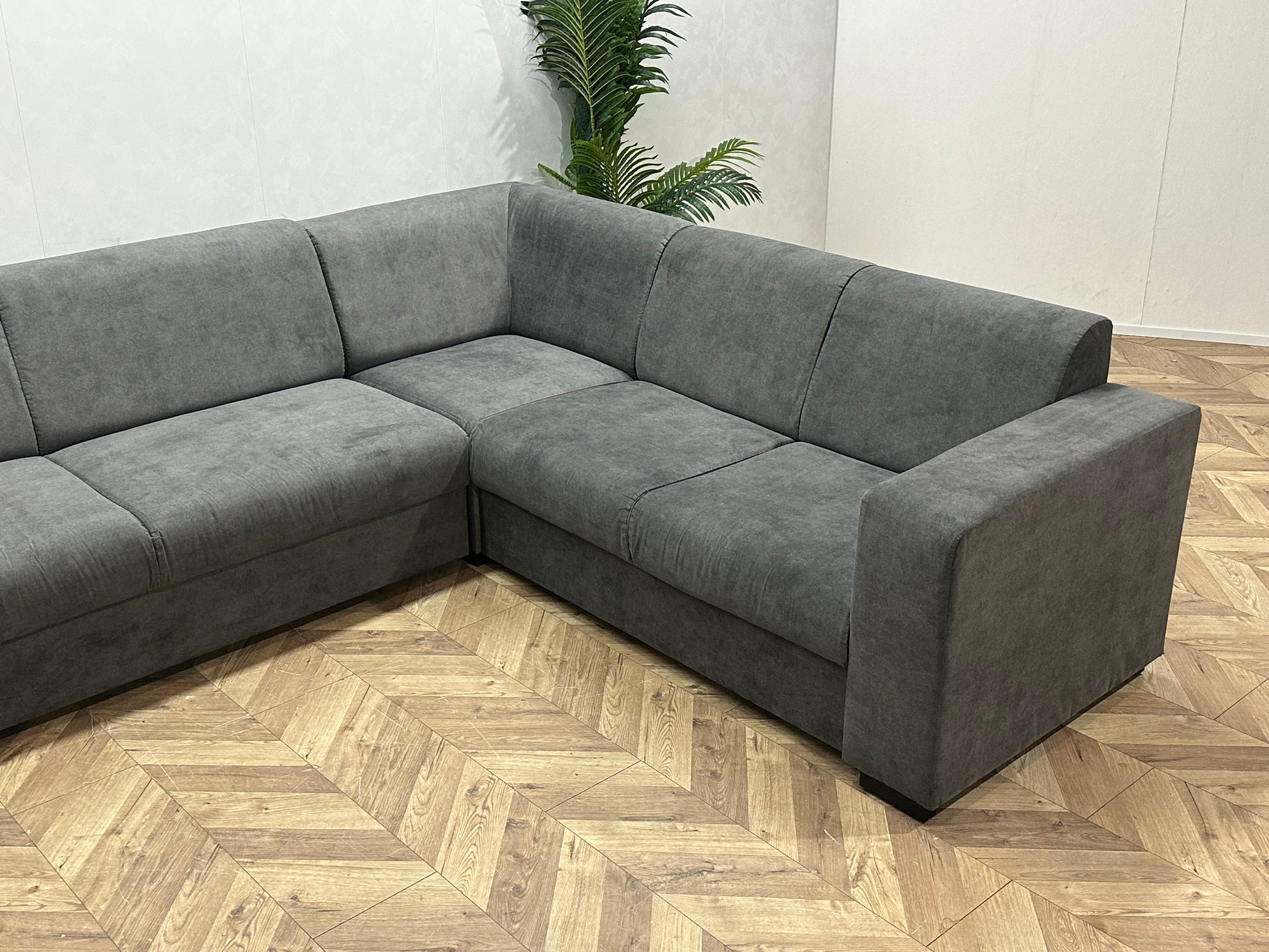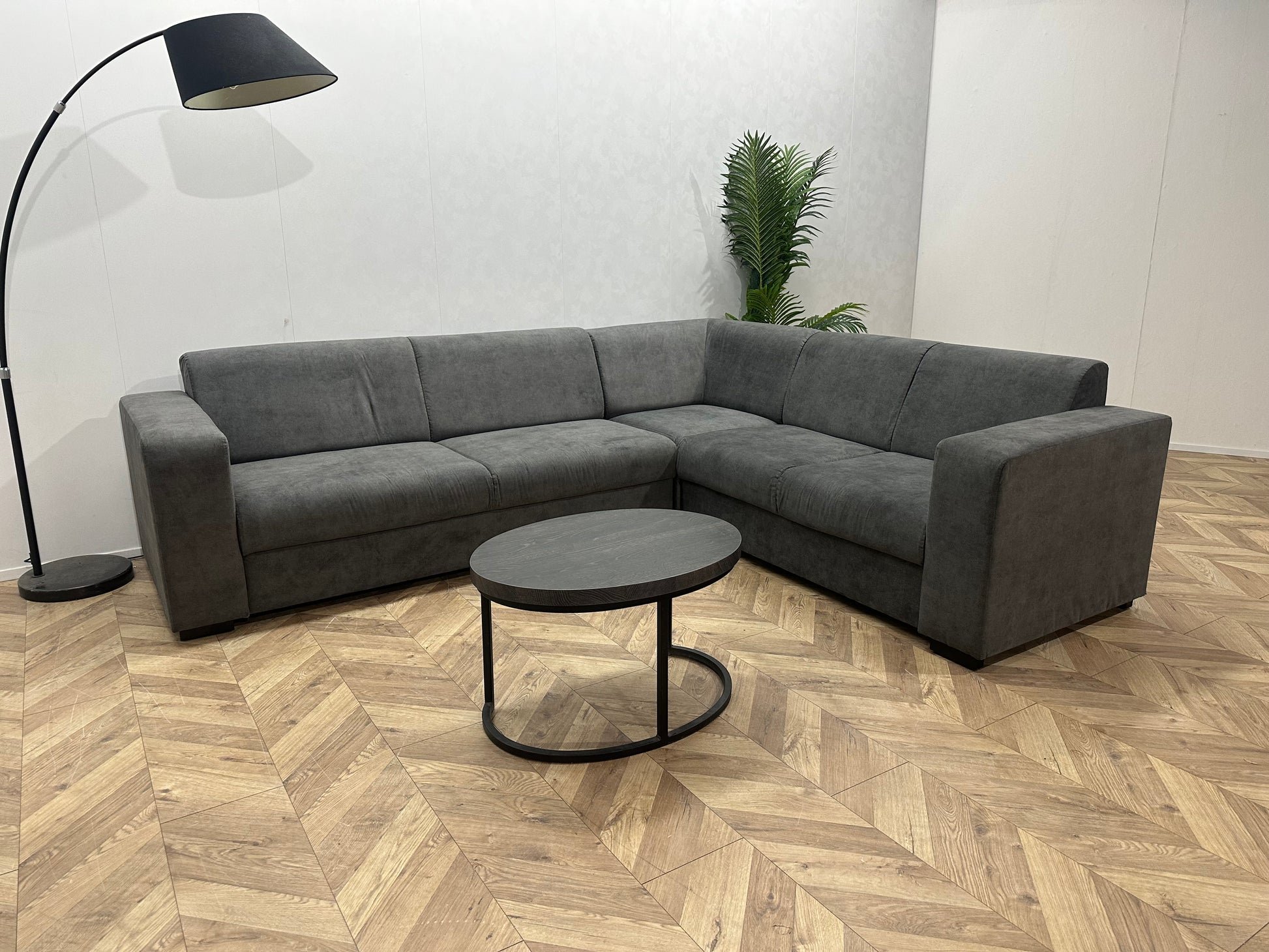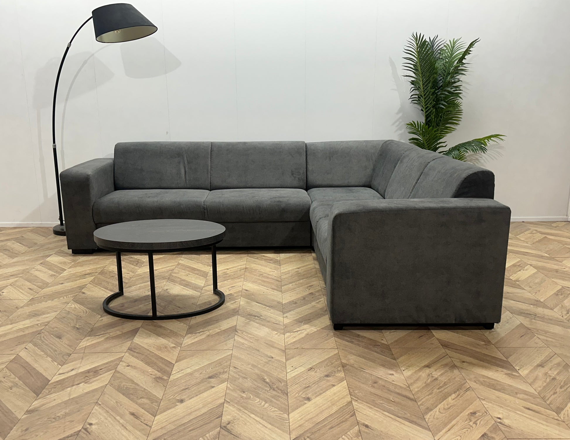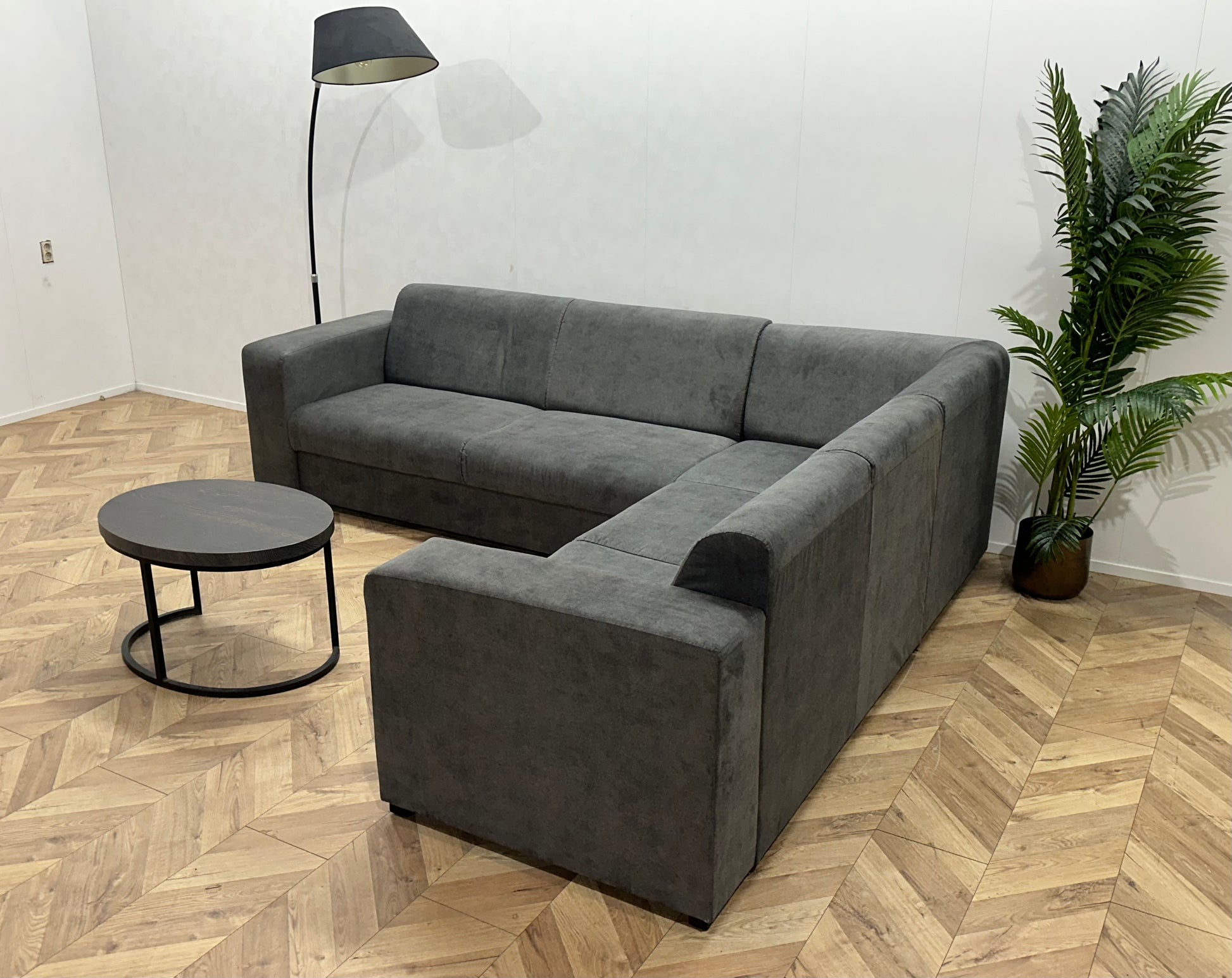 !Showroommodel! Antraciet Suède Stoffen Hoekbank