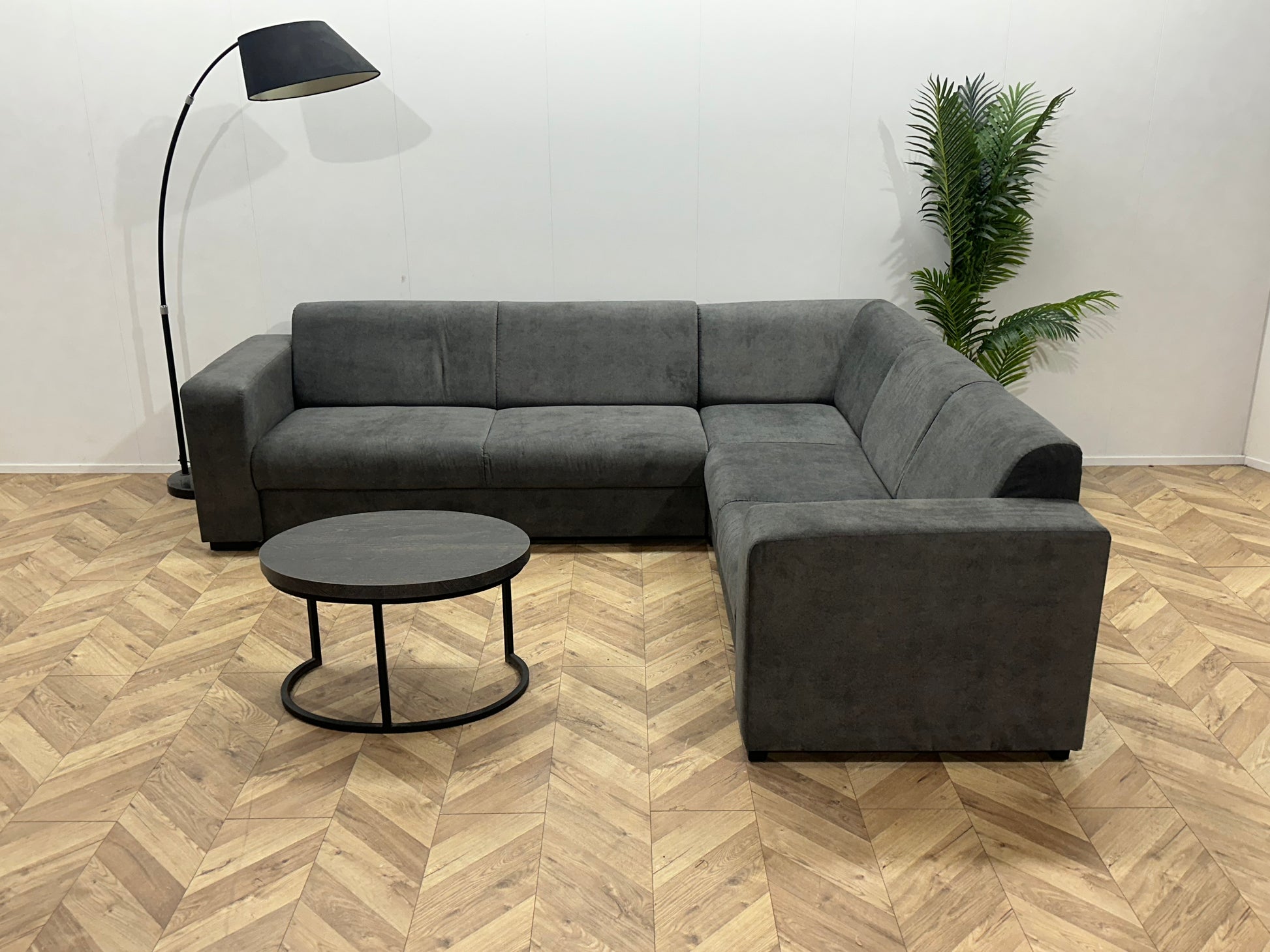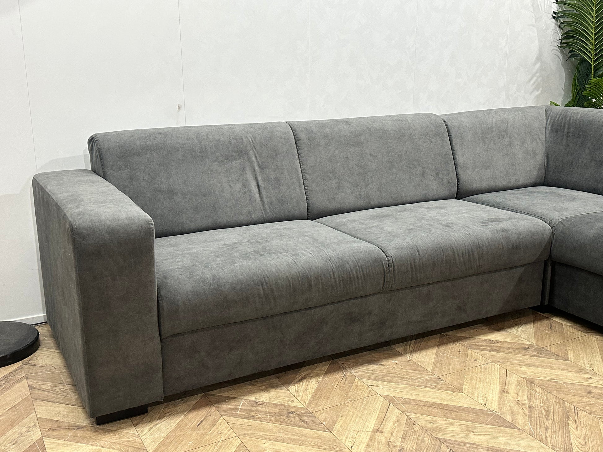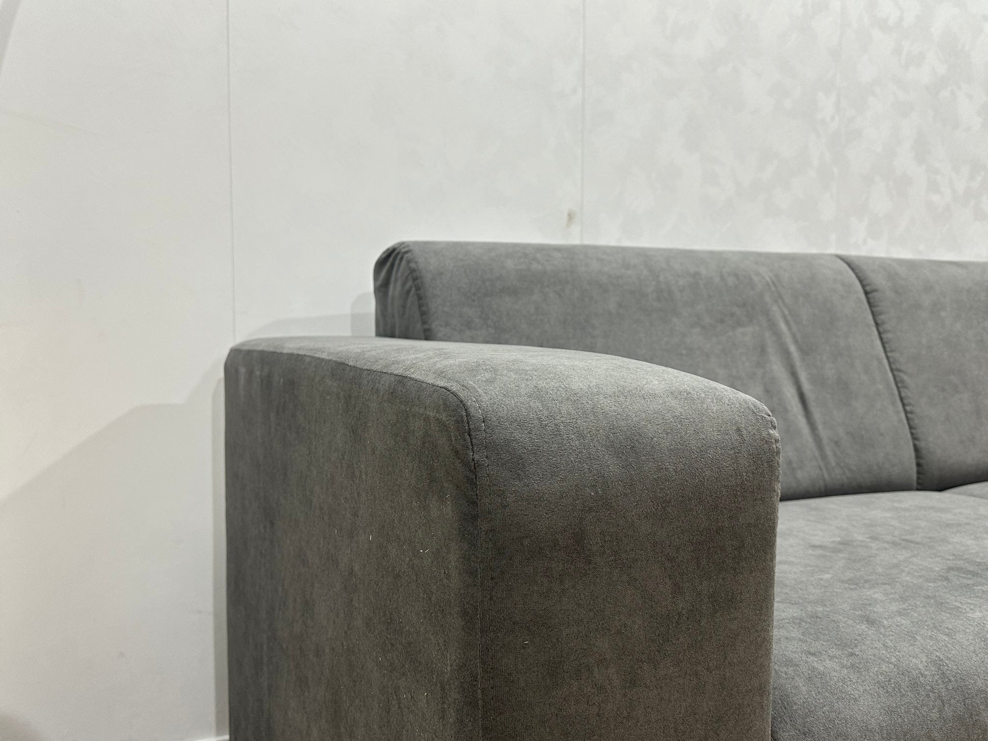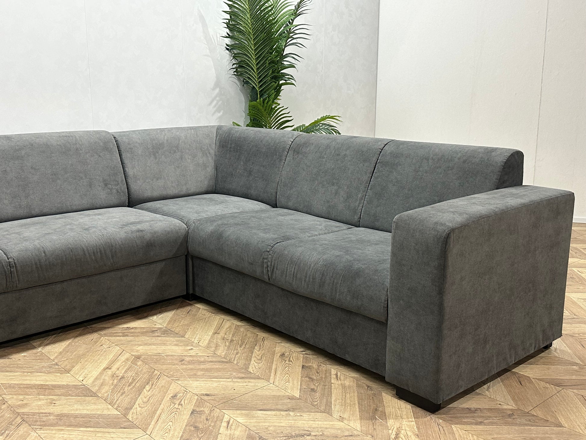 !Showroommodel! Antraciet Suède Stoffen Hoekbank