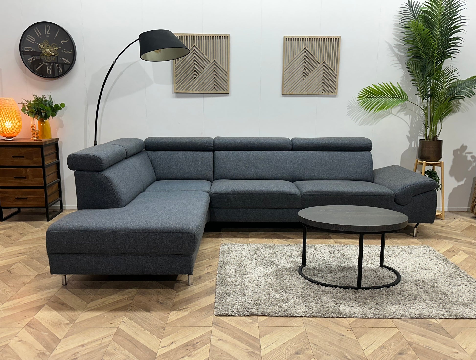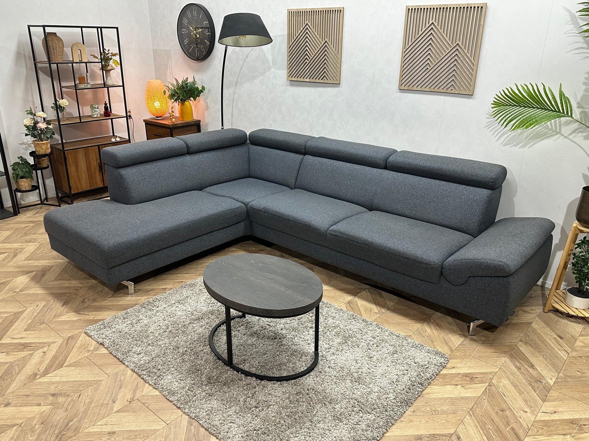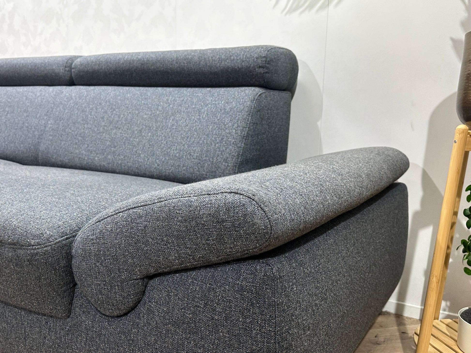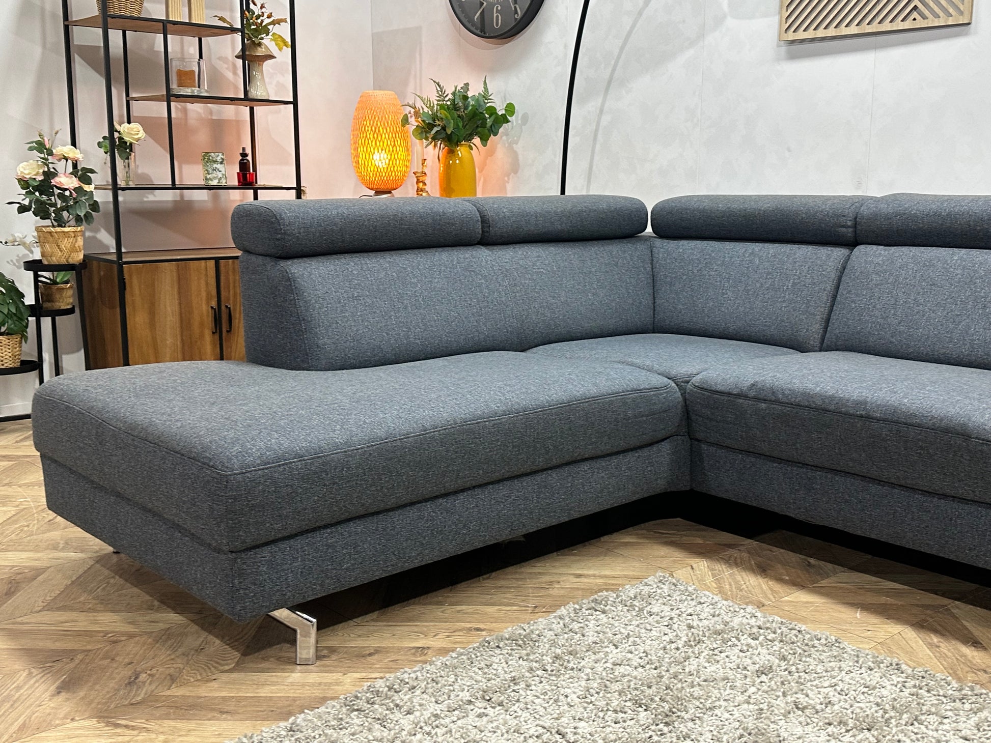 Montèl Blauwe/Grijze Hoekbank ~ Verstelbare Arm/Hoofdsteunen
