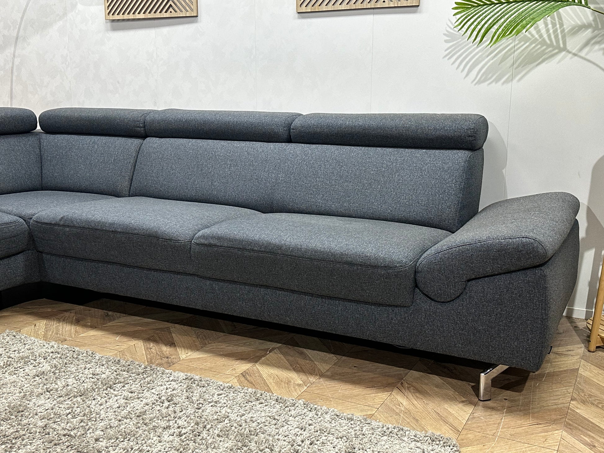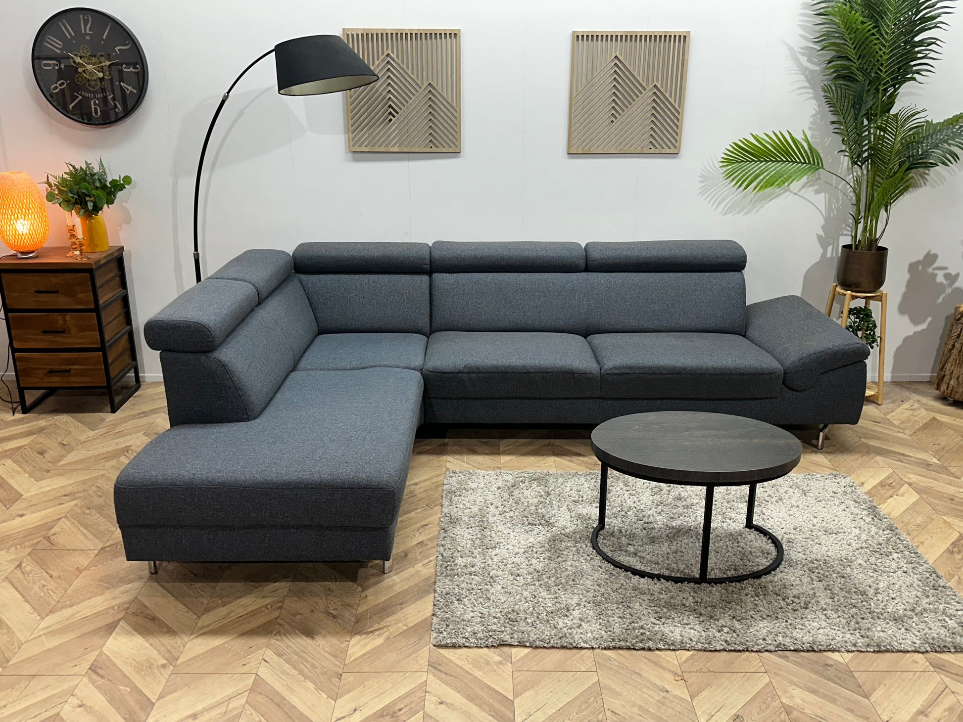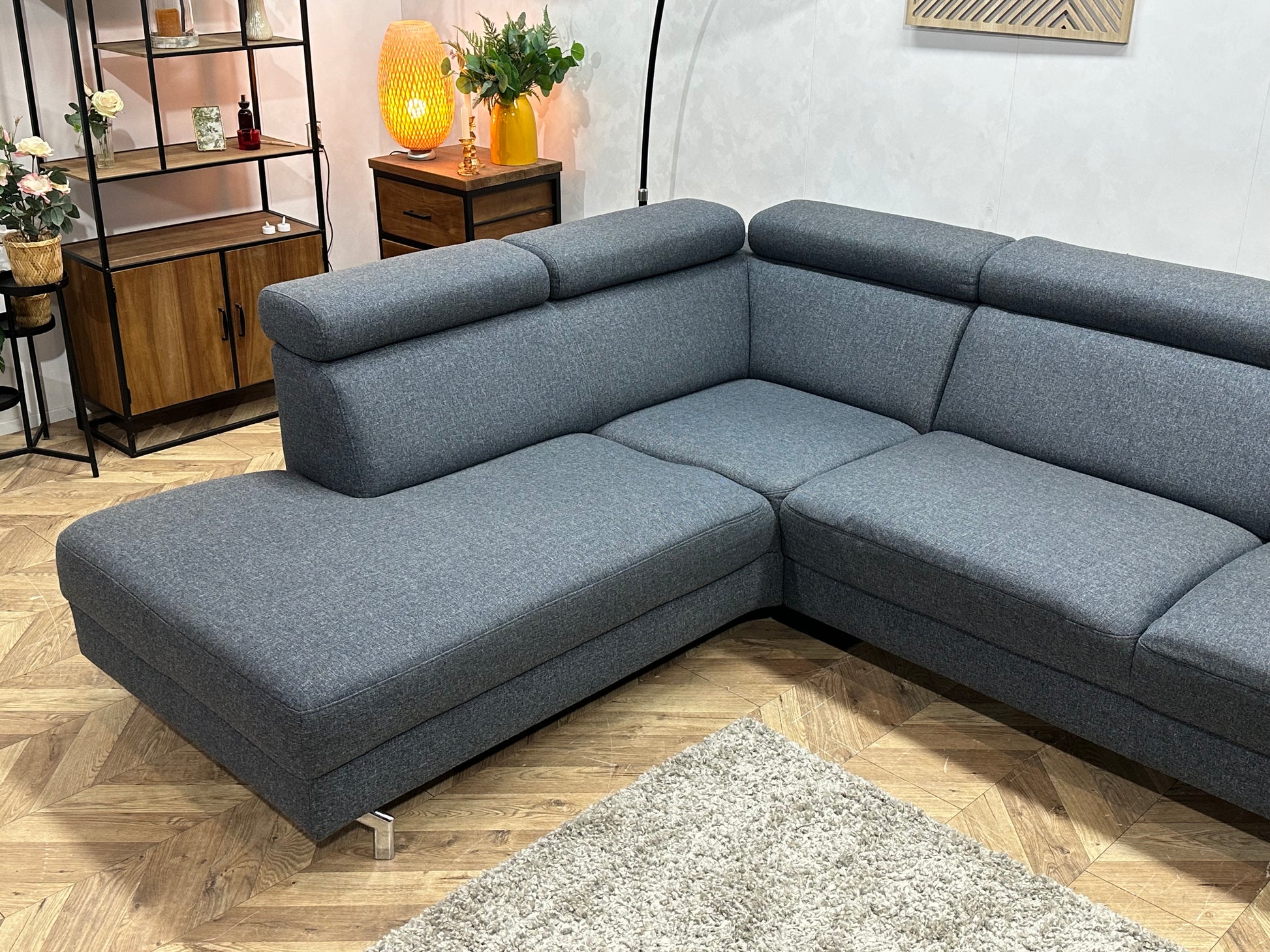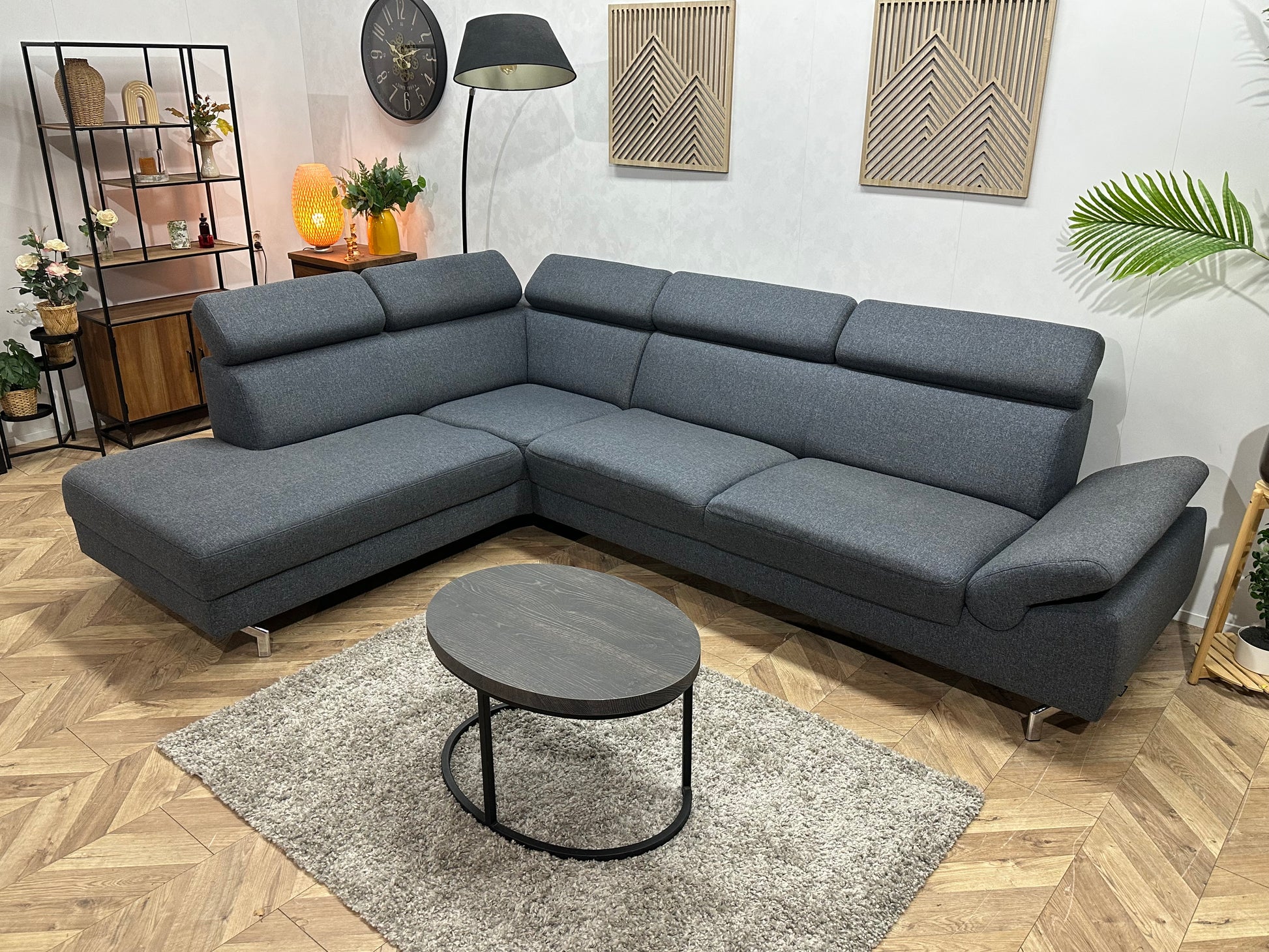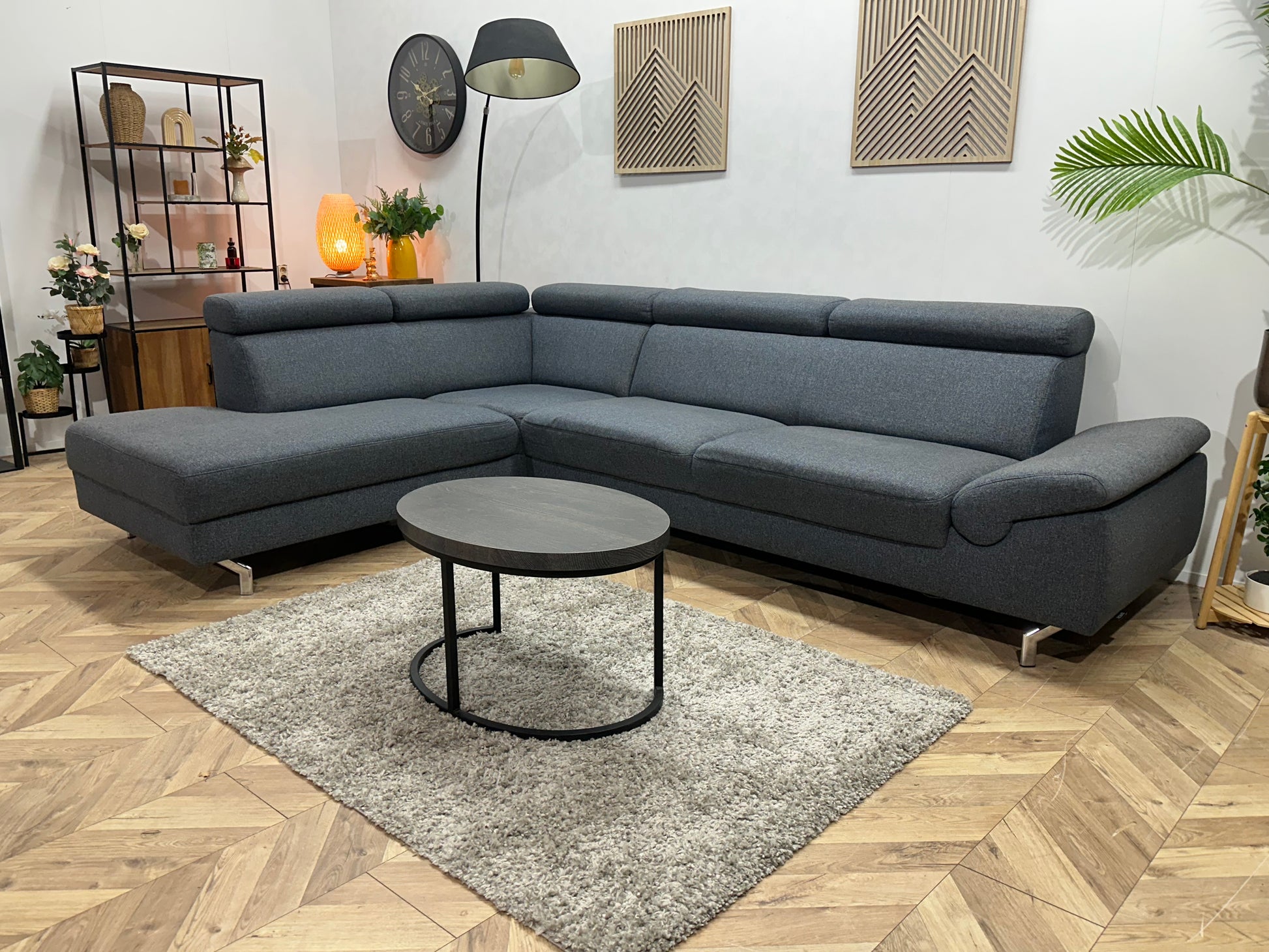 Montèl Blauwe/Grijze Hoekbank ~ Verstelbare Arm/Hoofdsteunen