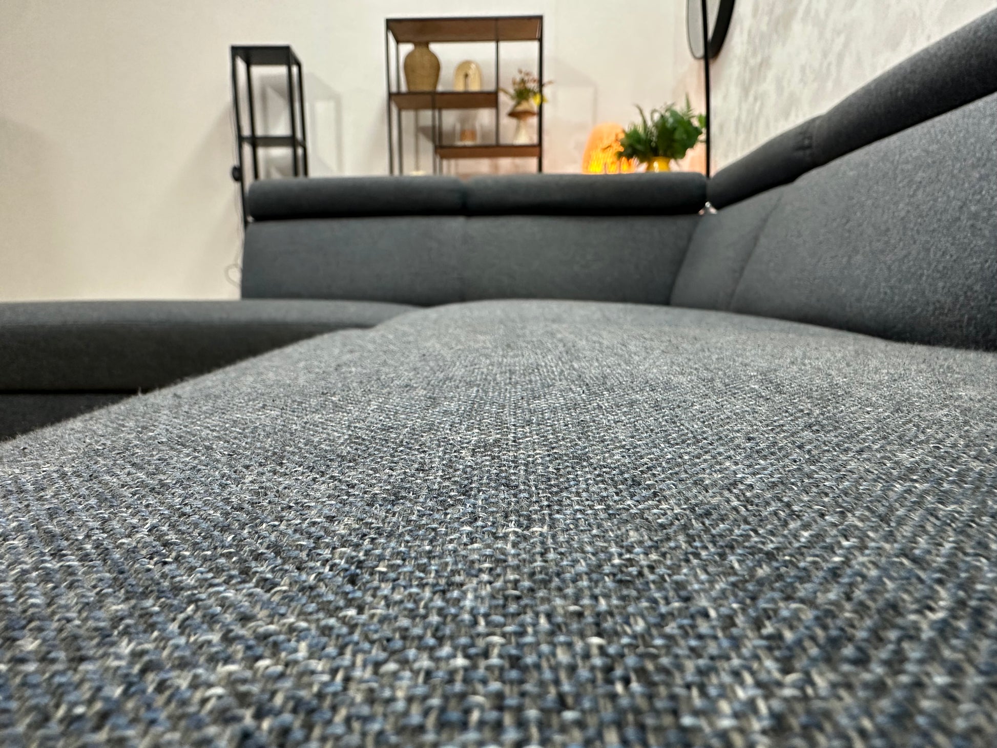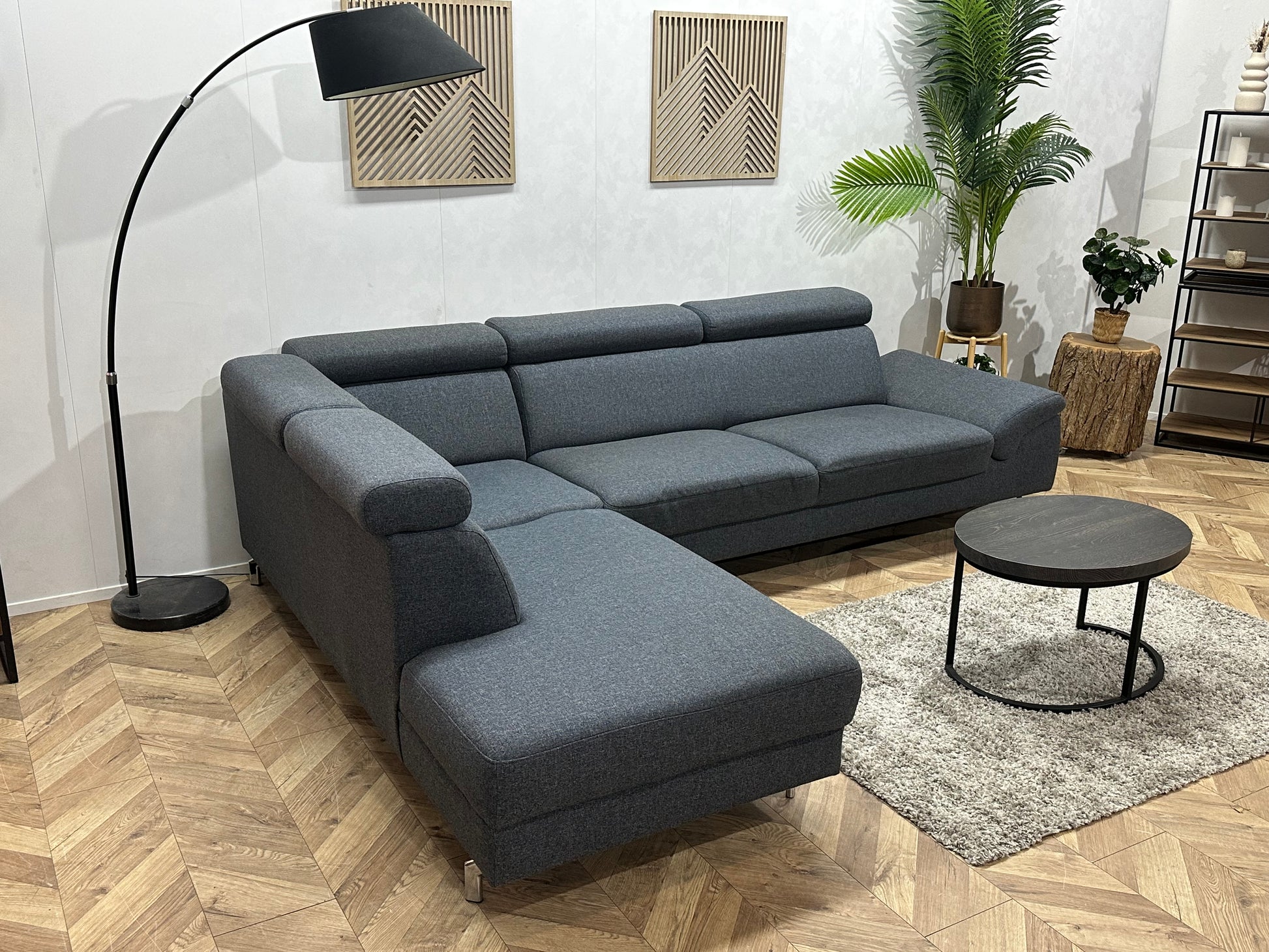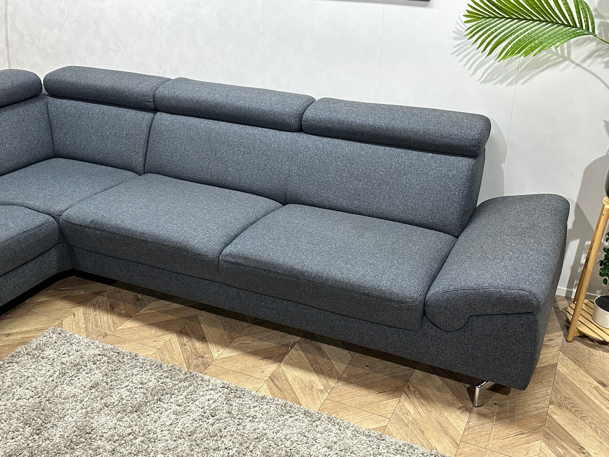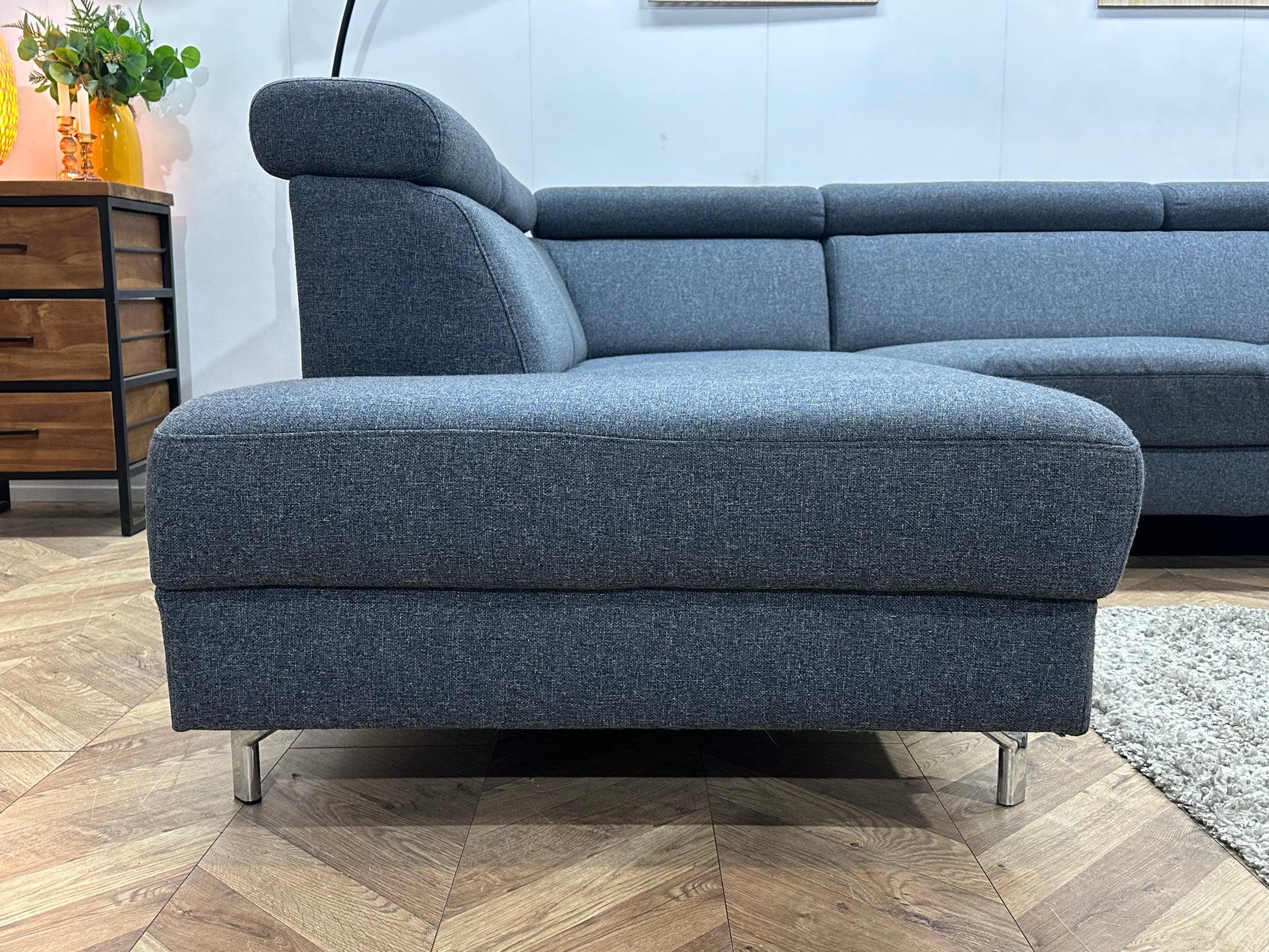 Montèl Blauwe/Grijze Hoekbank ~ Verstelbare Arm/Hoofdsteunen