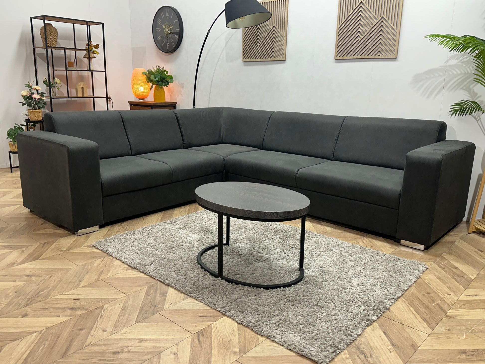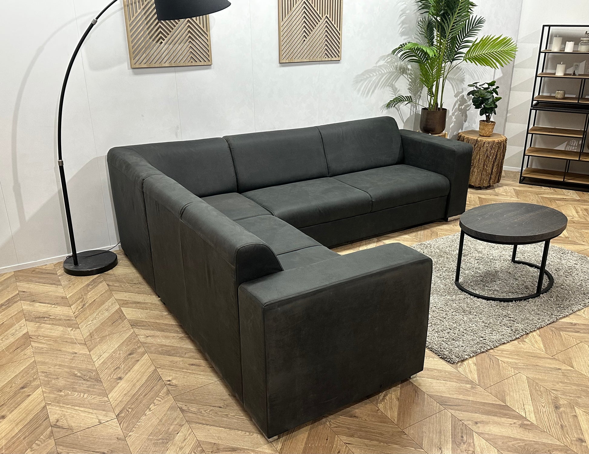 !Showroommodel! Antraciet Leather Look Hoekbank