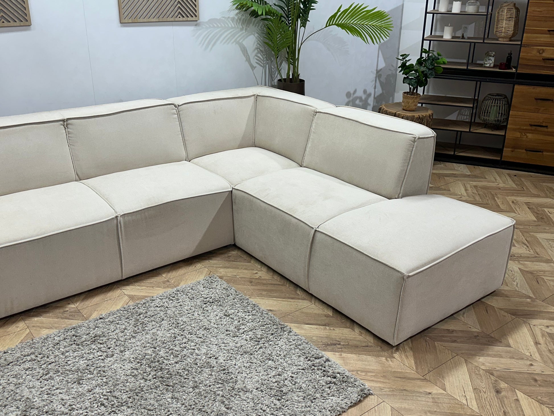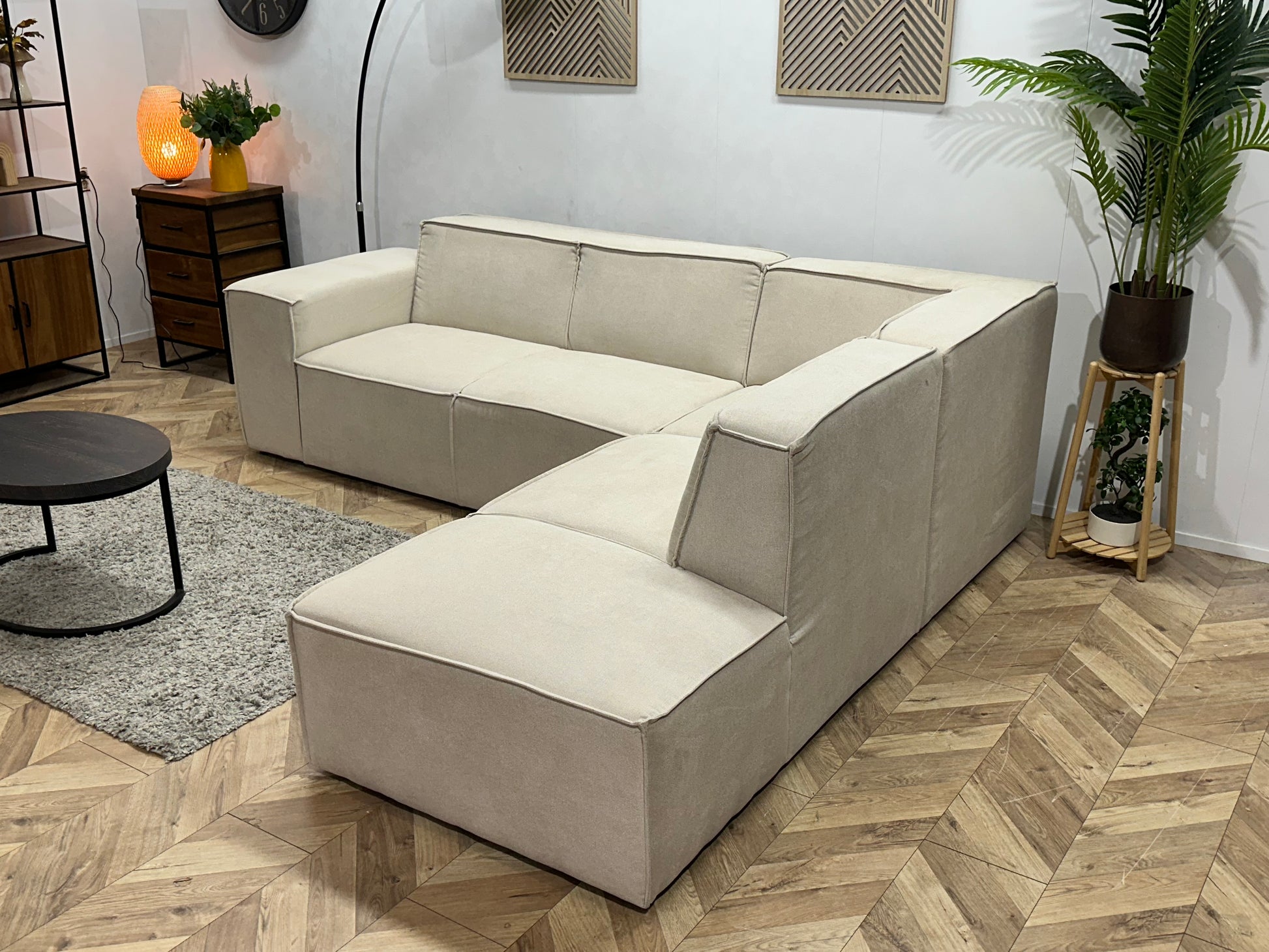 !Showroommodel! Crème Suède Stoffen Hoekbank