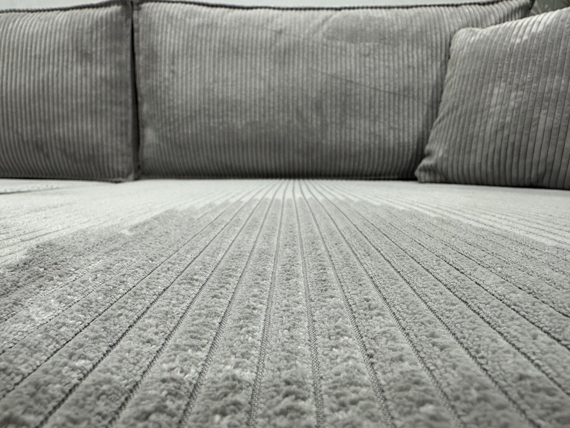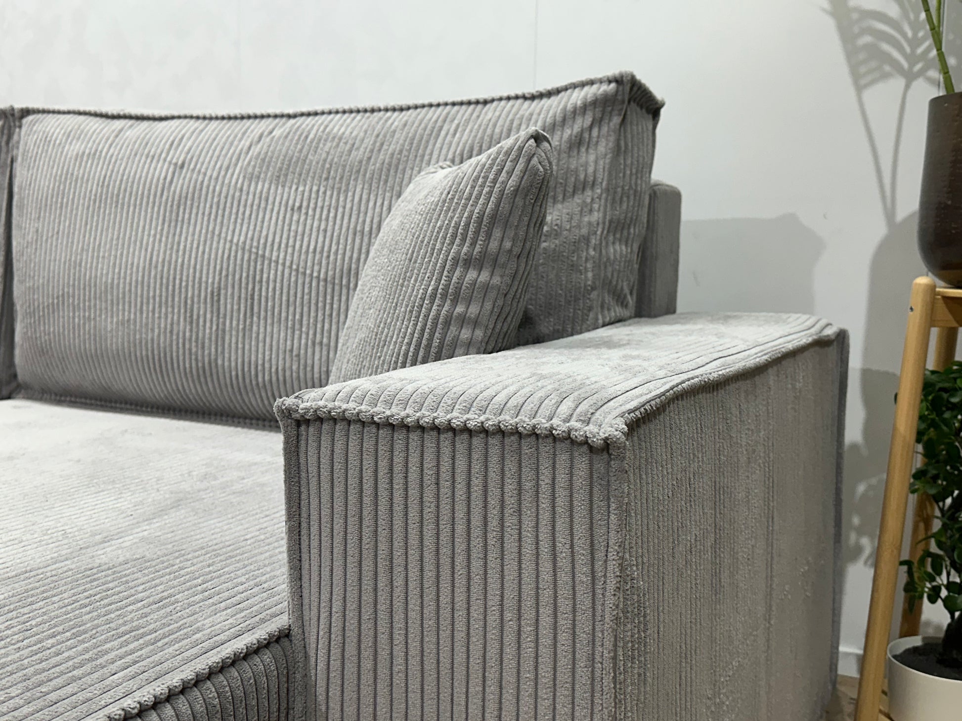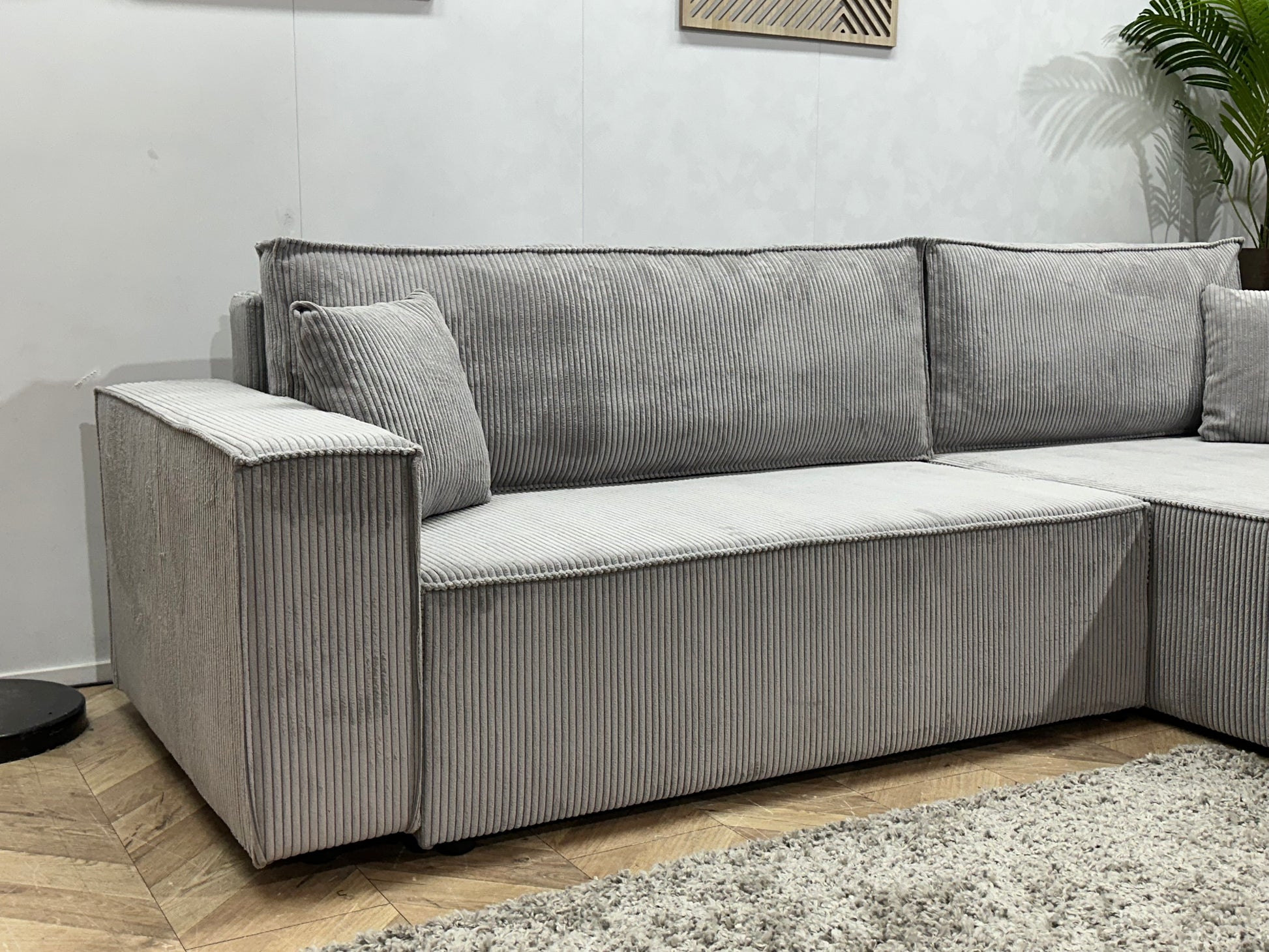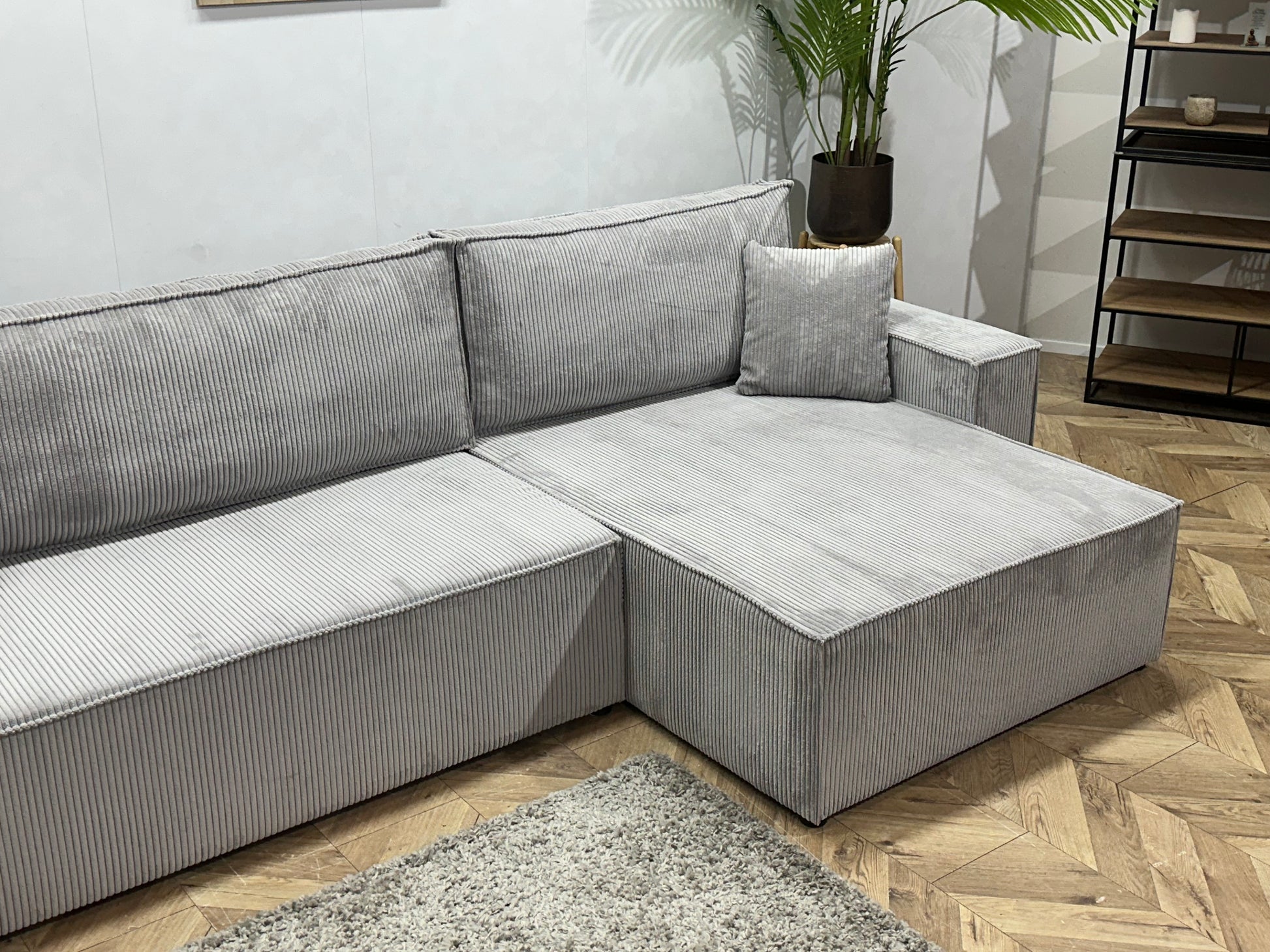 !Showroommodel! Licht Grijze Ribstof Hoekbank