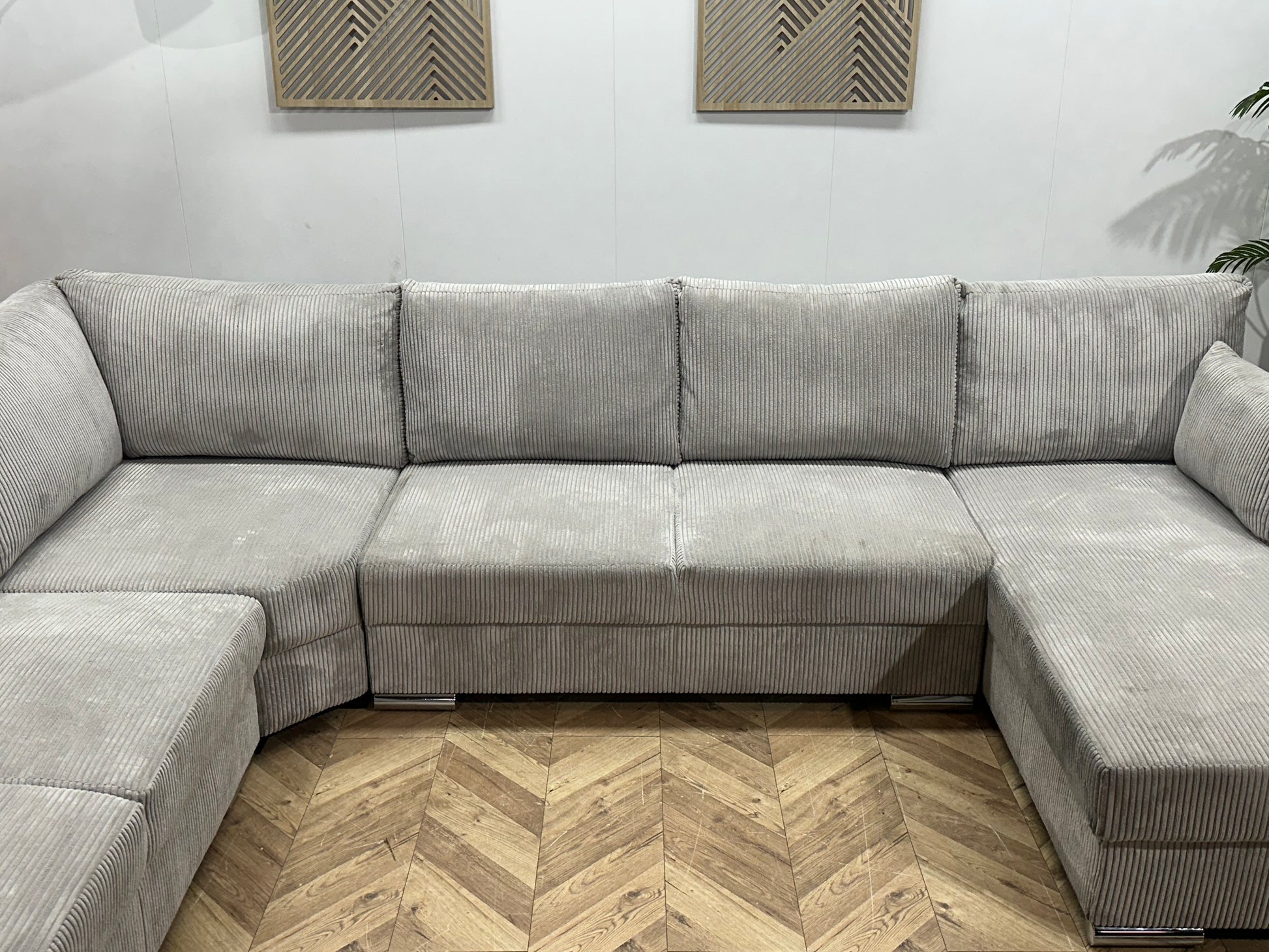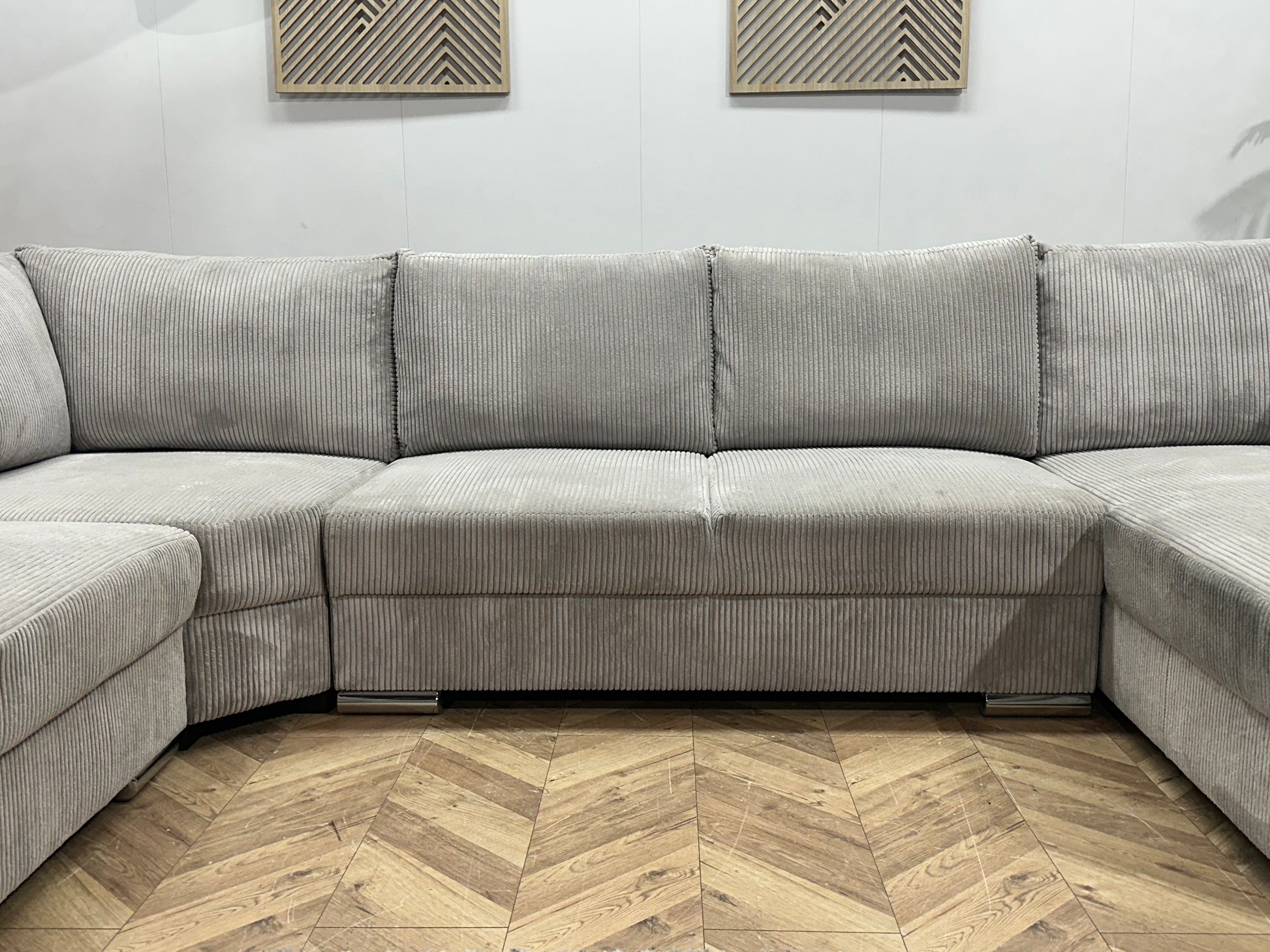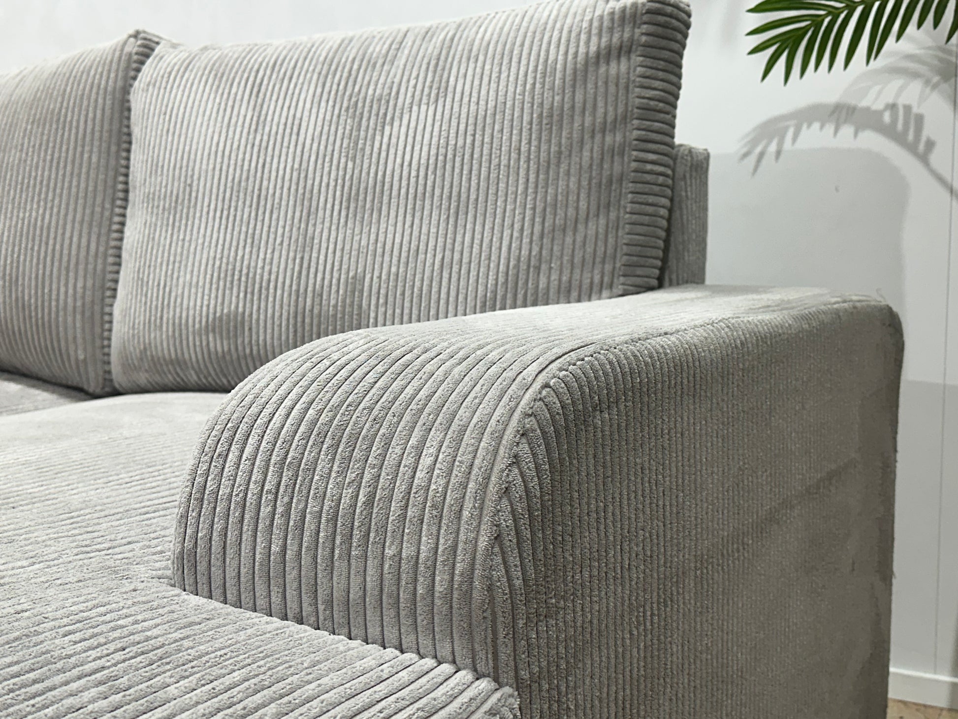 !Showroommodel! Licht Grijze Ribstof U Bank
