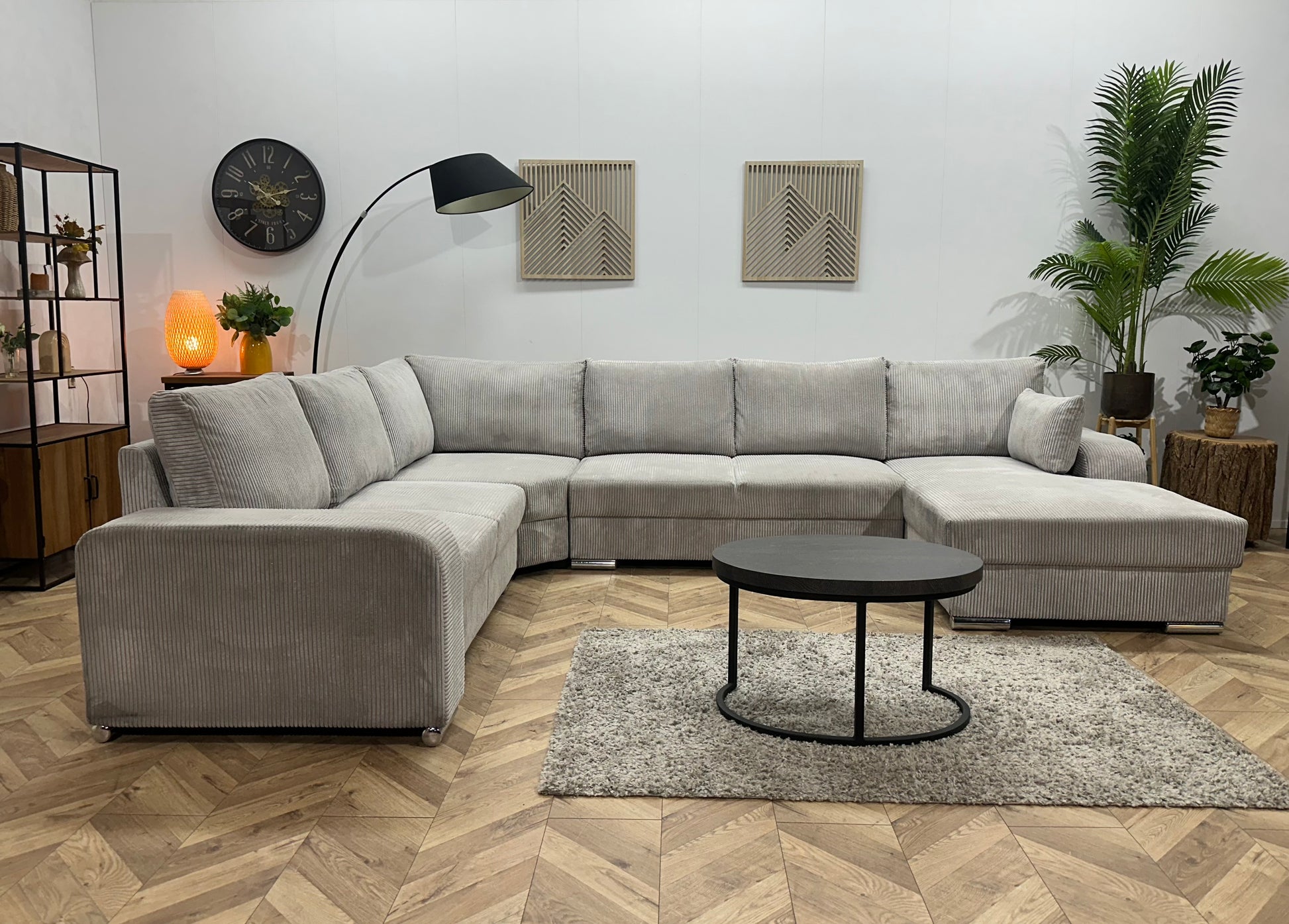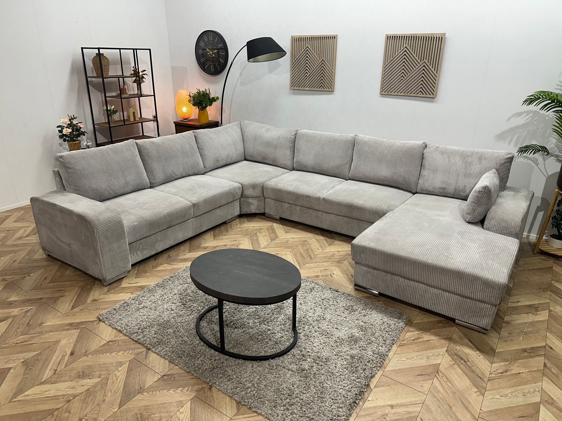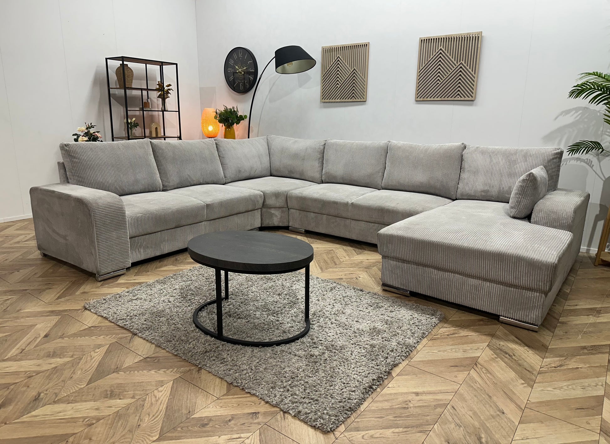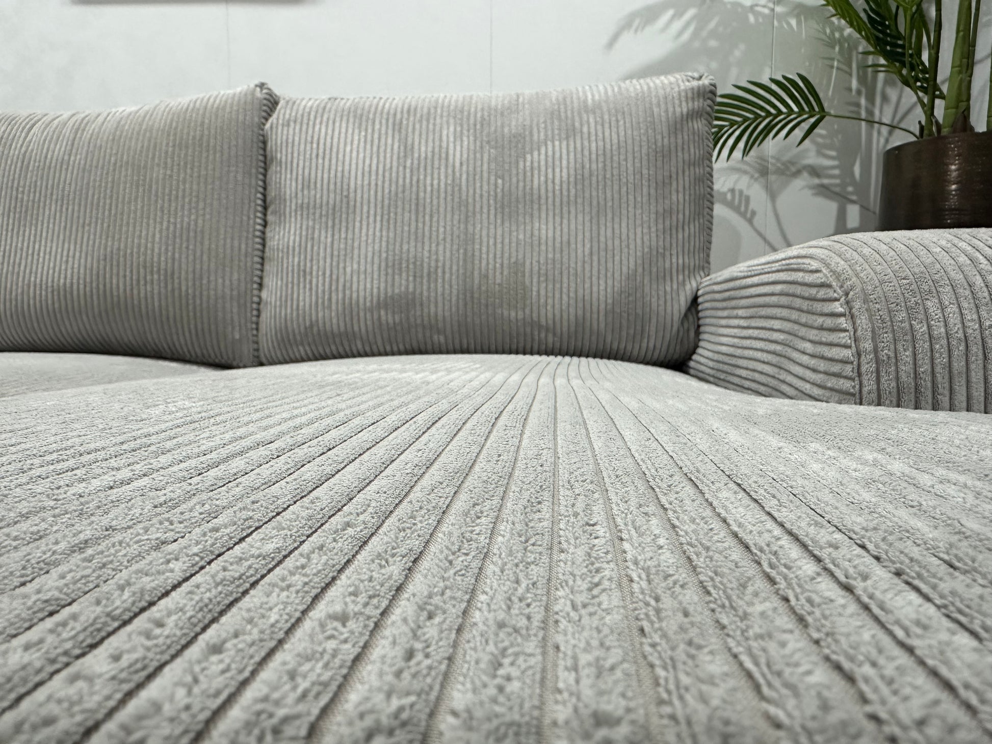 !Showroommodel! Licht Grijze Ribstof U Bank