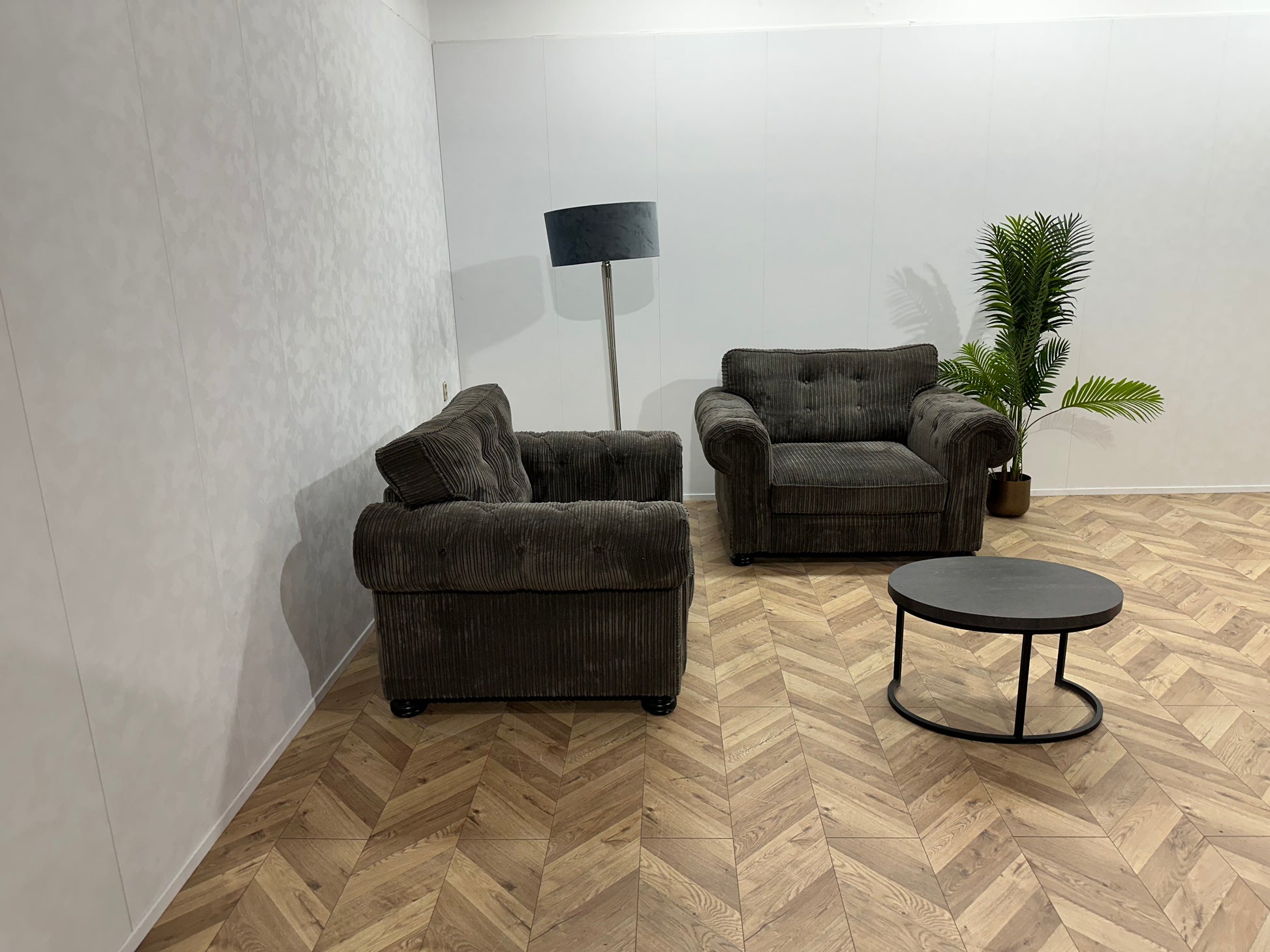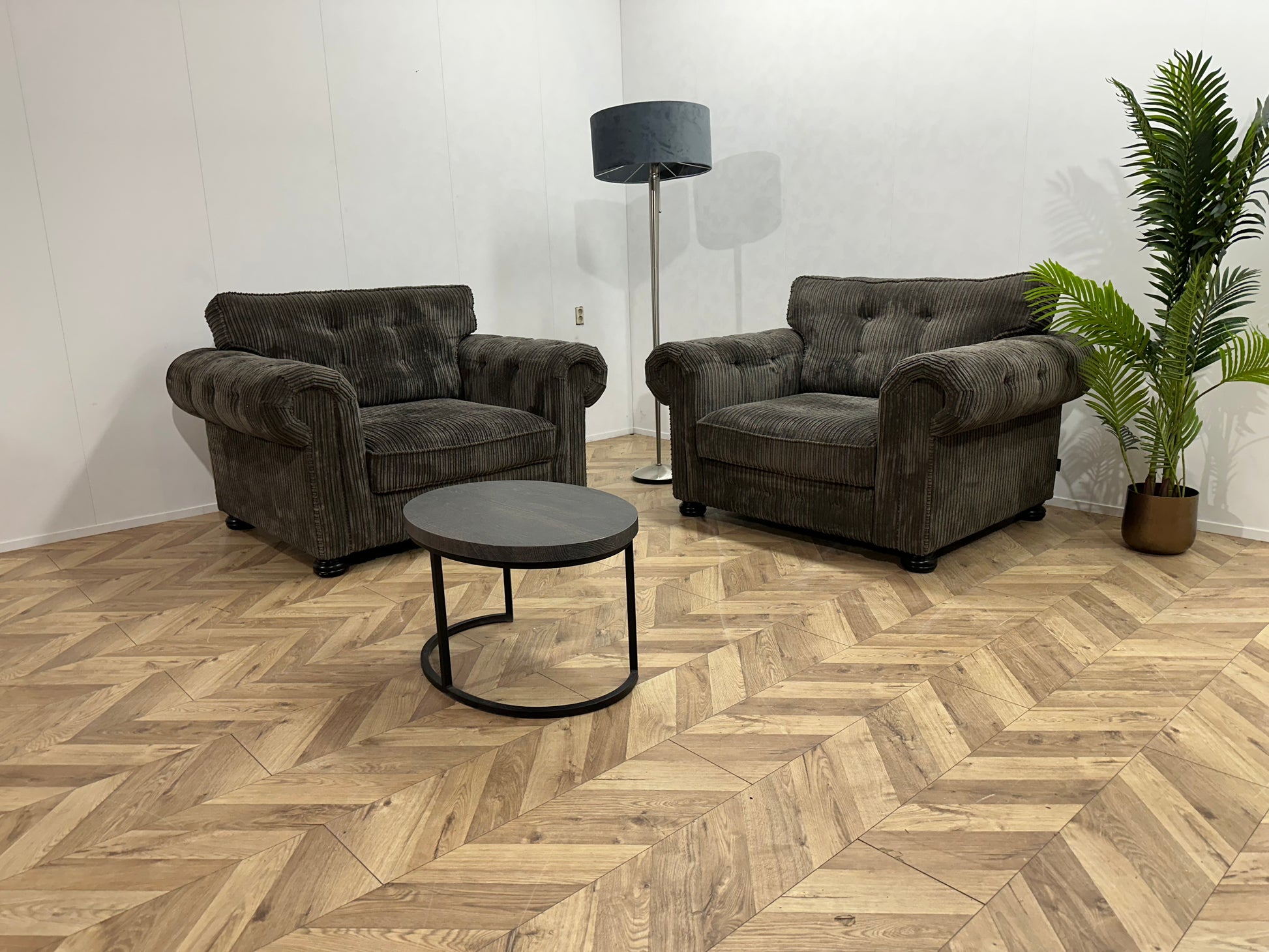 UrbanSofa Antraciet Ribstof Fauteuil Set ~ Losse Kussens Met Afneembare Hoezen