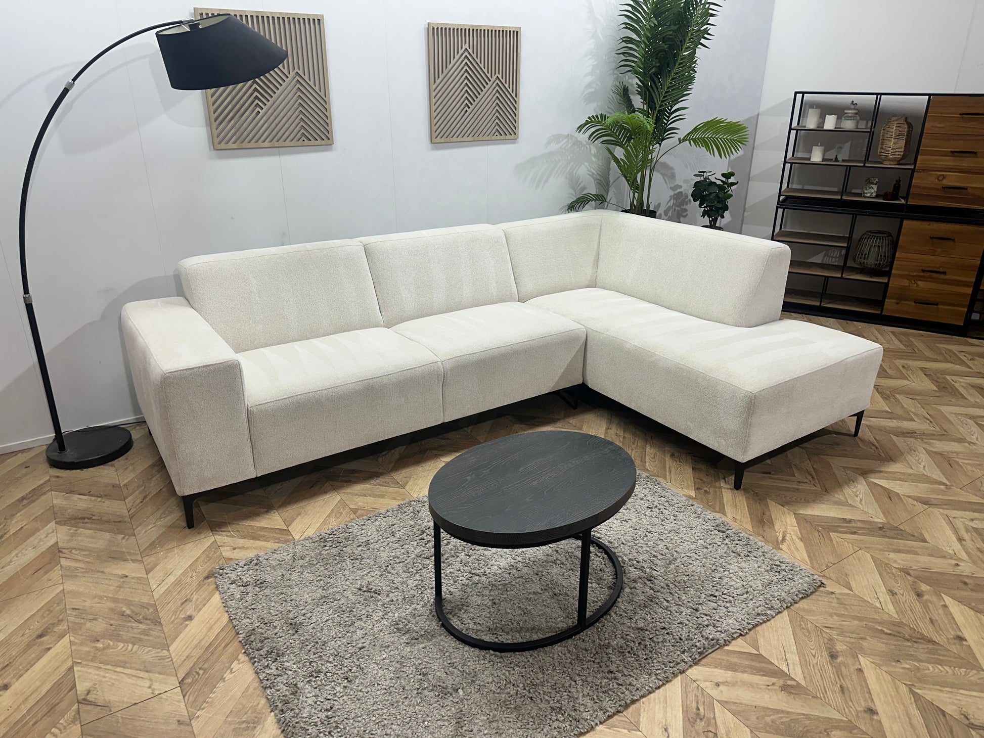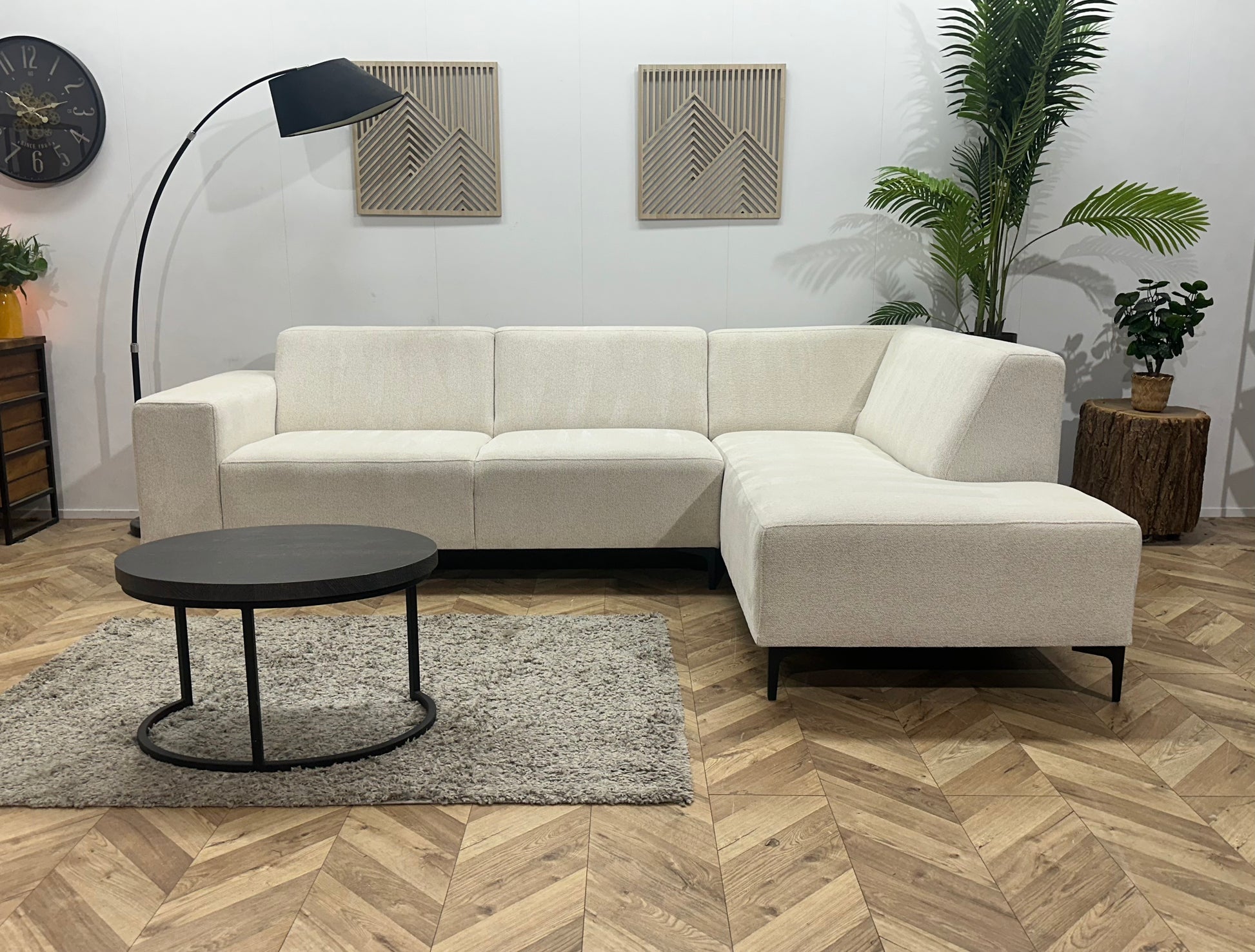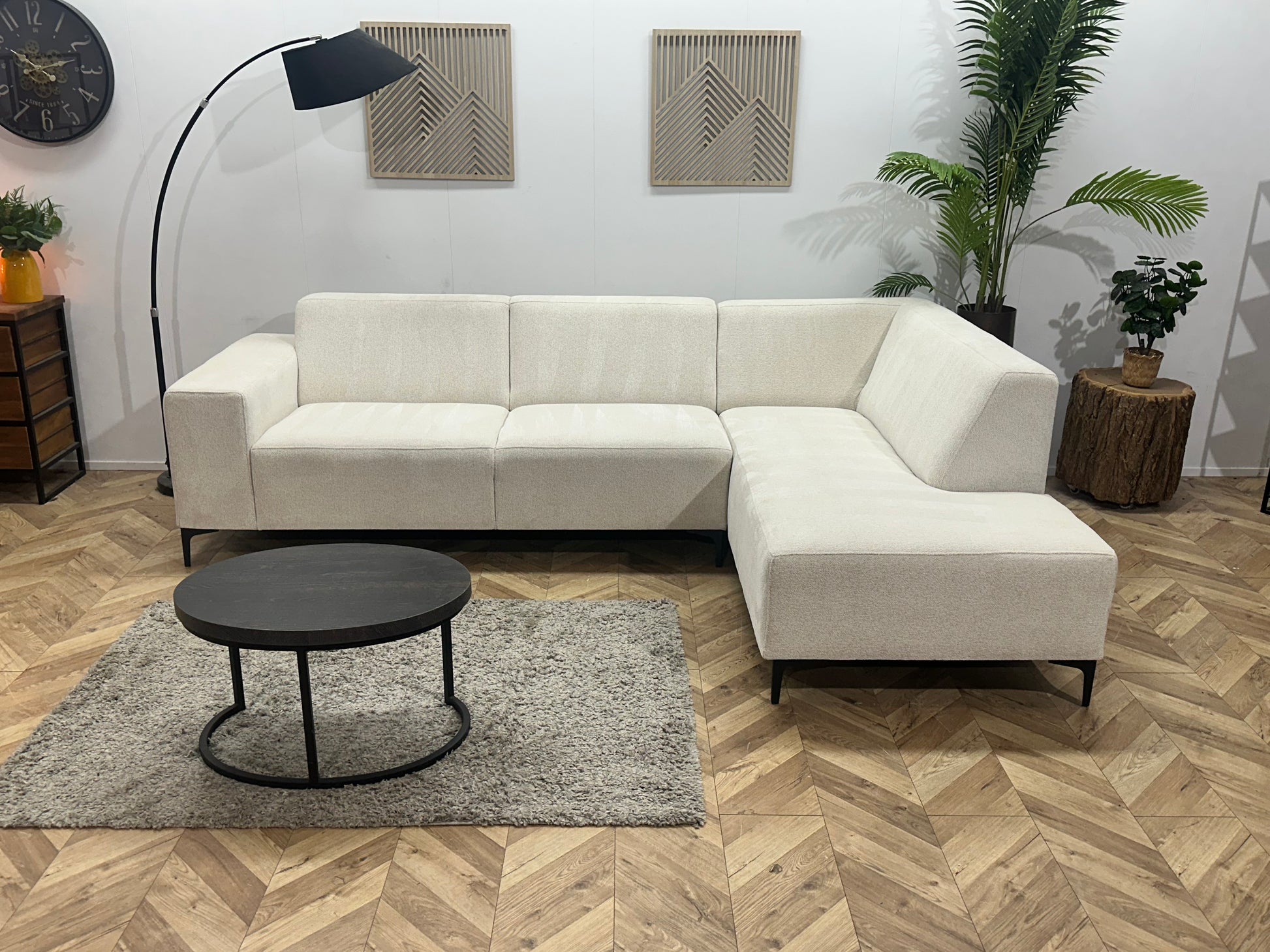 Witte Bouclé Stoffen Hoekbank ~ Vaste Kussens