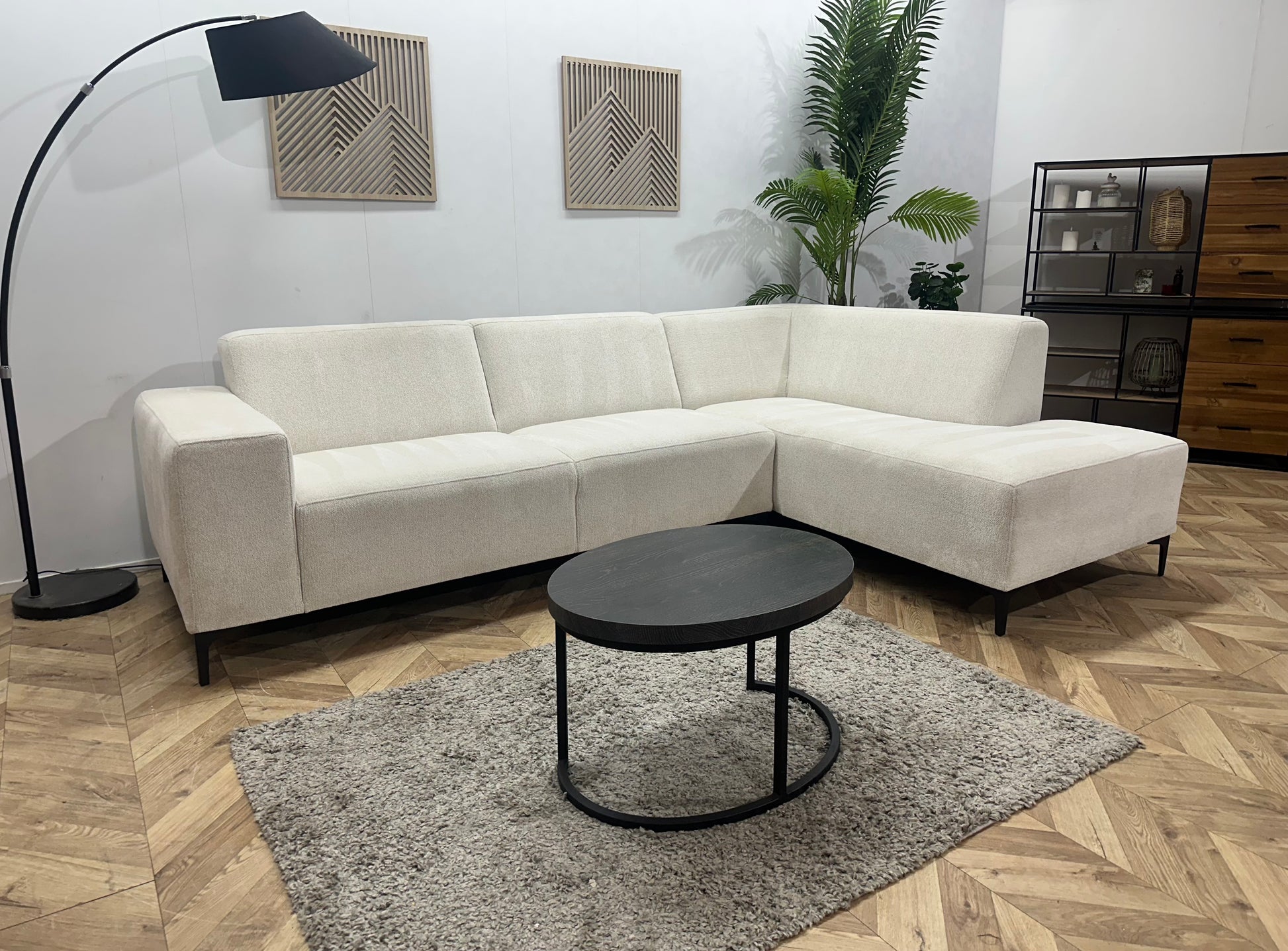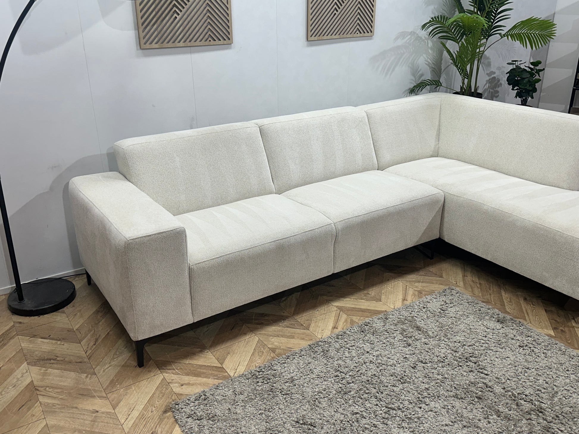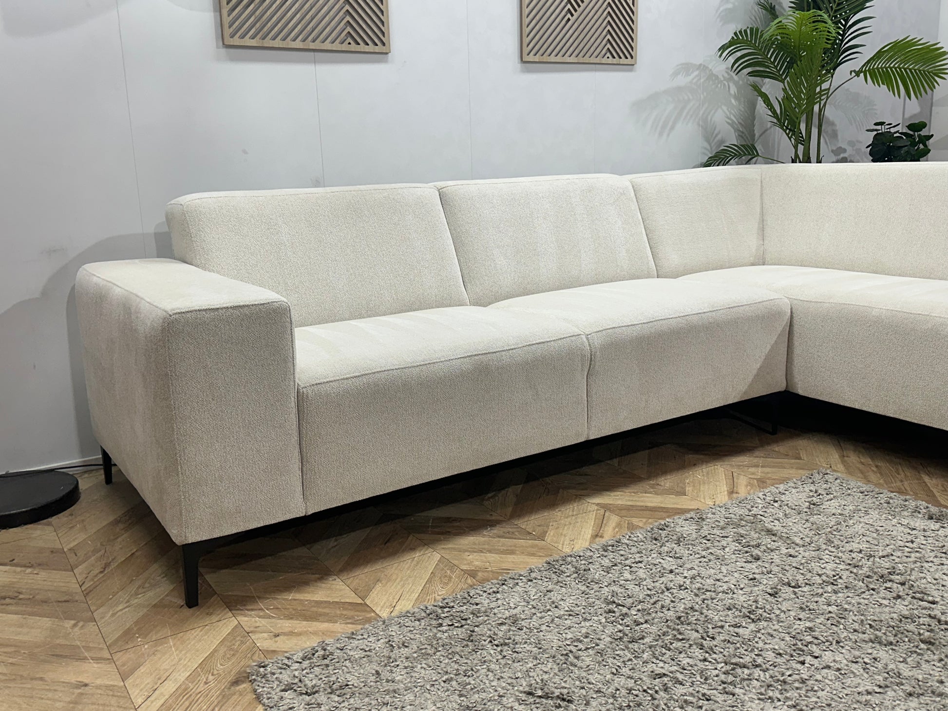 Witte Bouclé Stoffen Hoekbank ~ Vaste Kussens