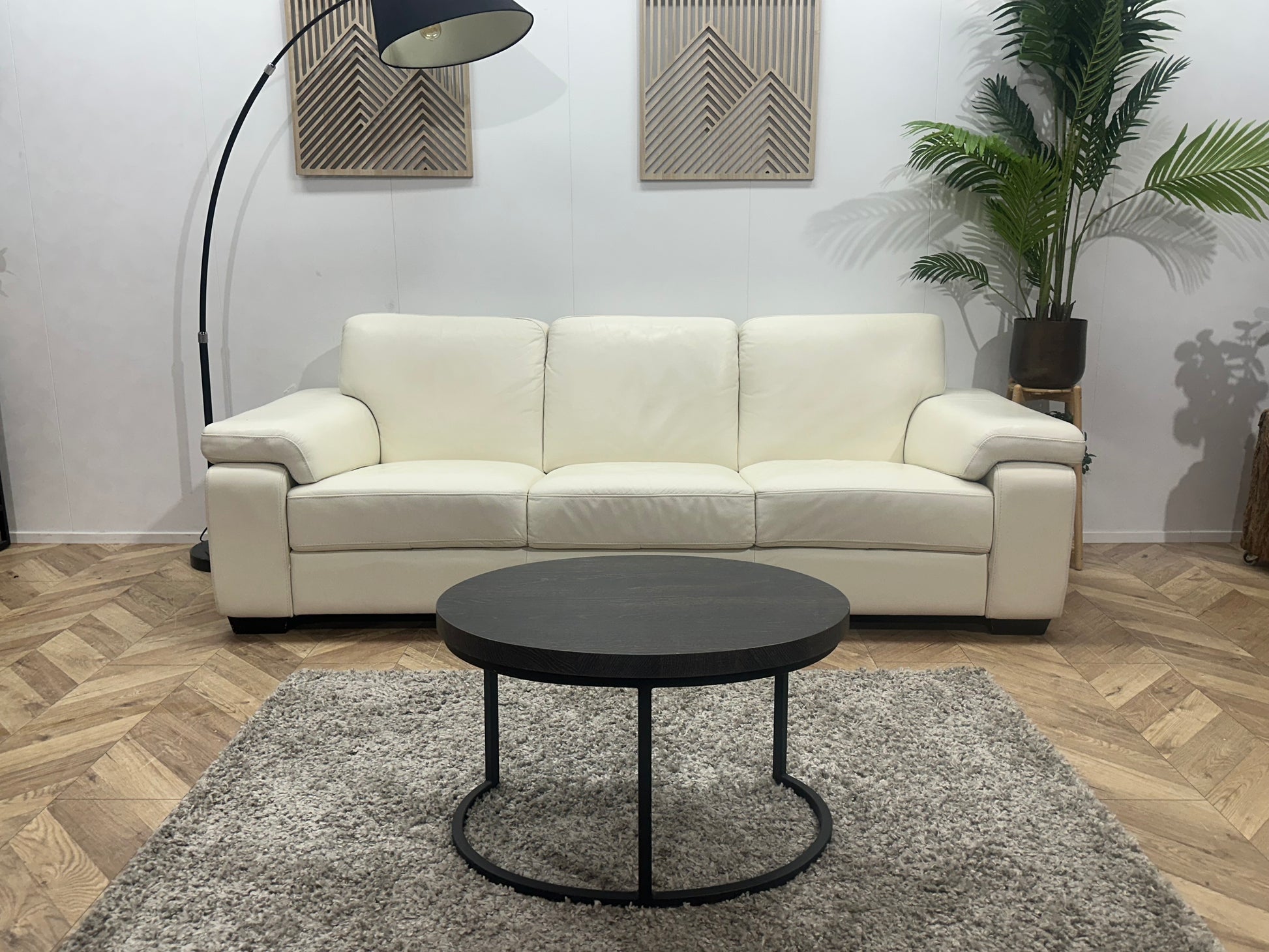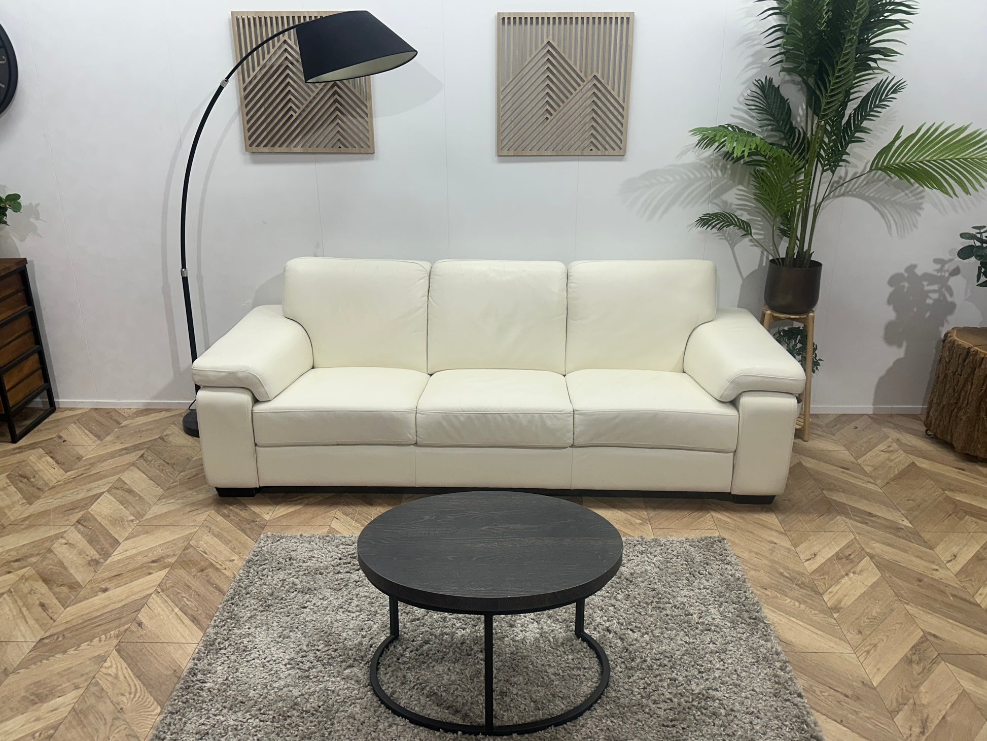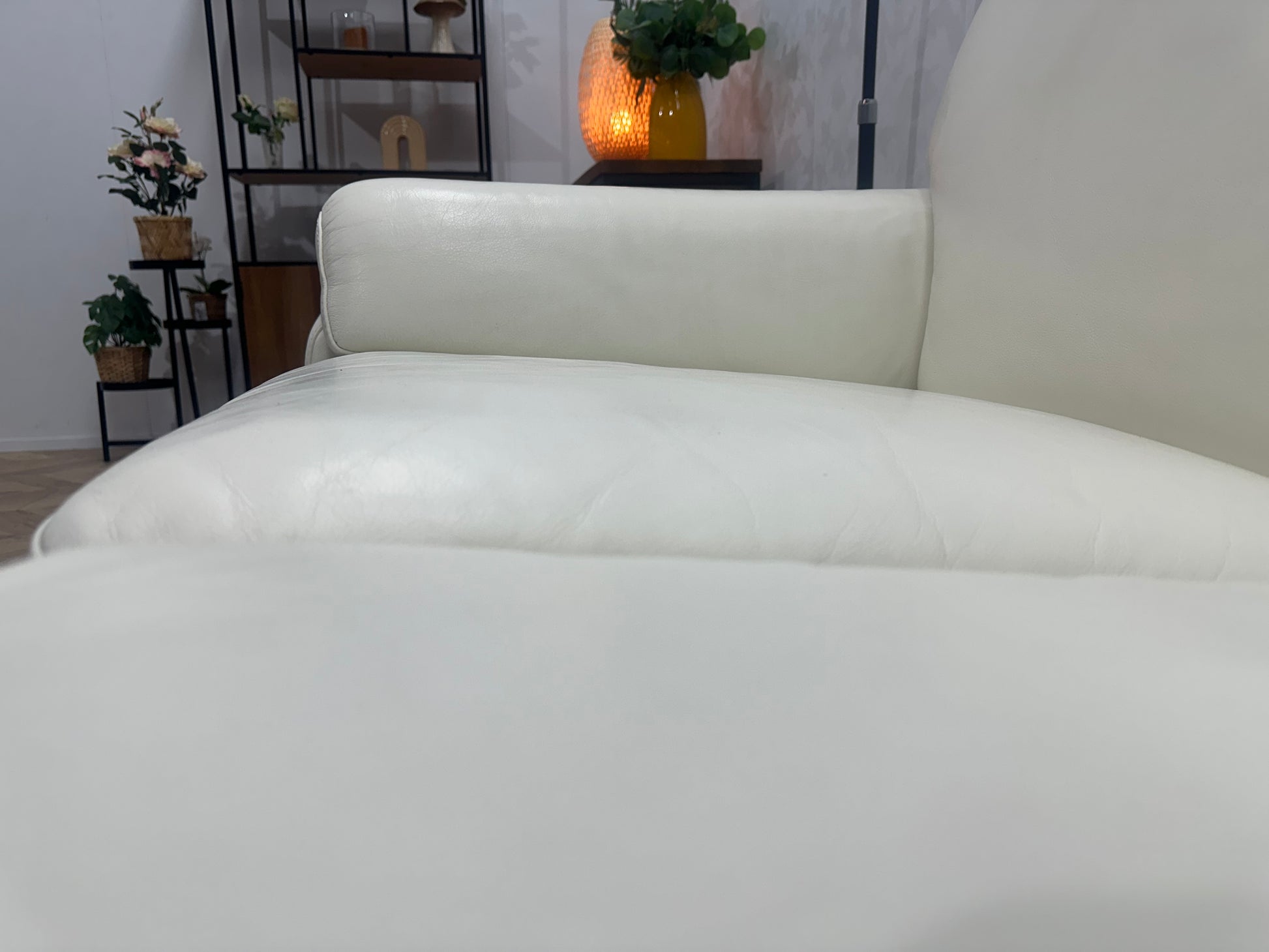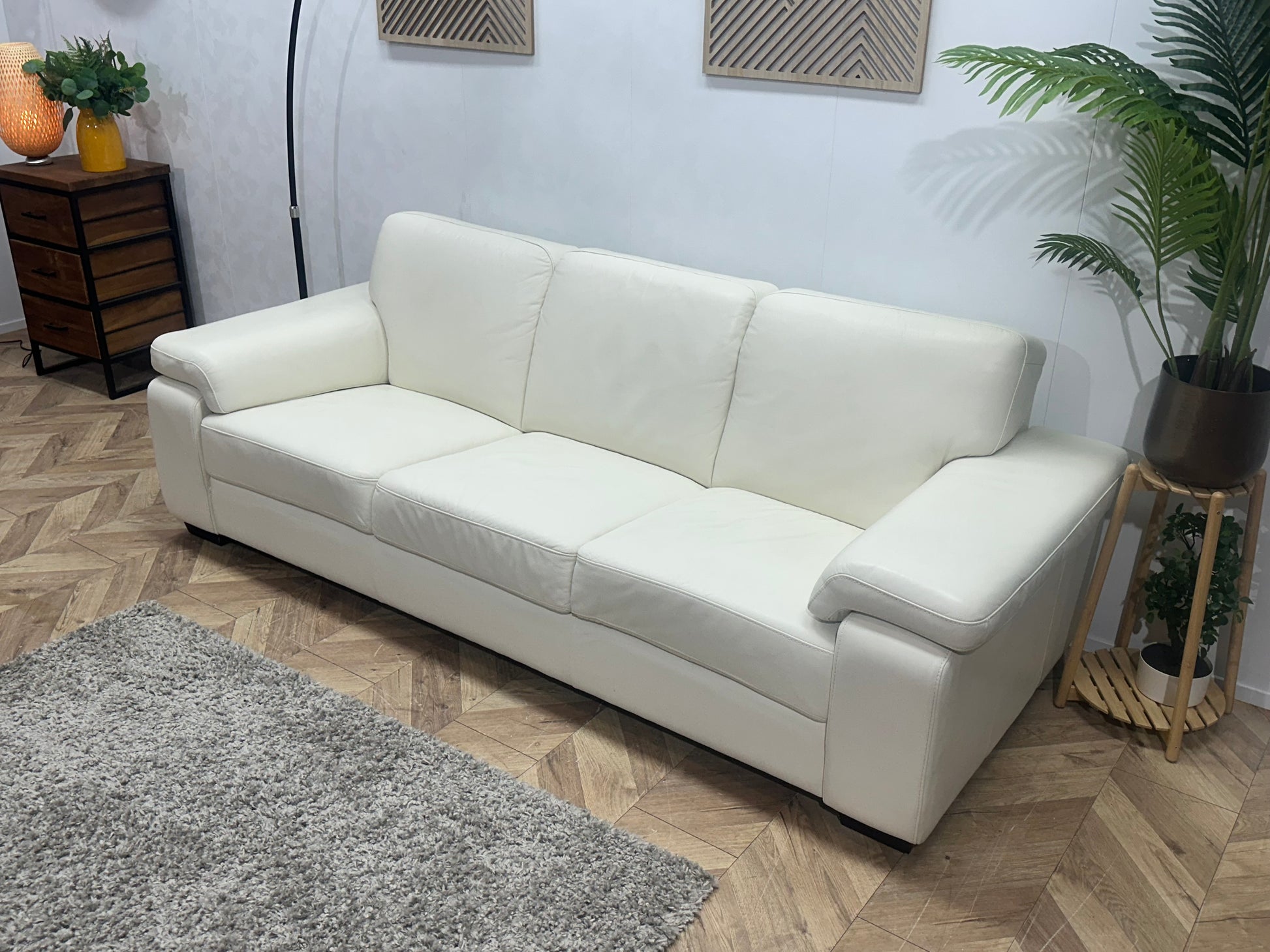 Witte Echt Lederen 3-Zits Bank ~ Vaste Kussens