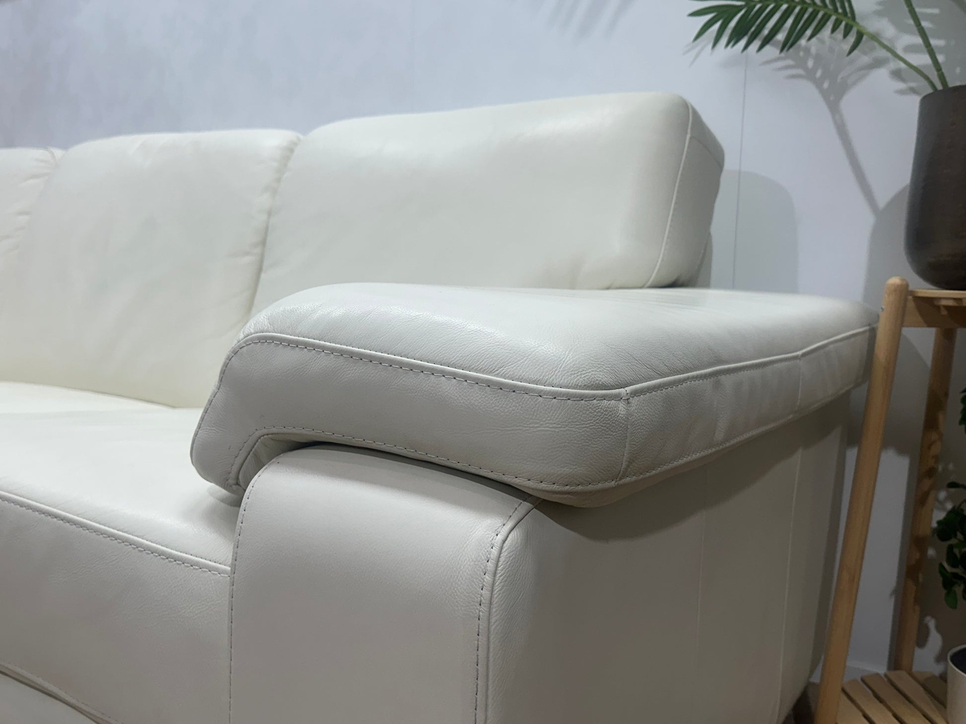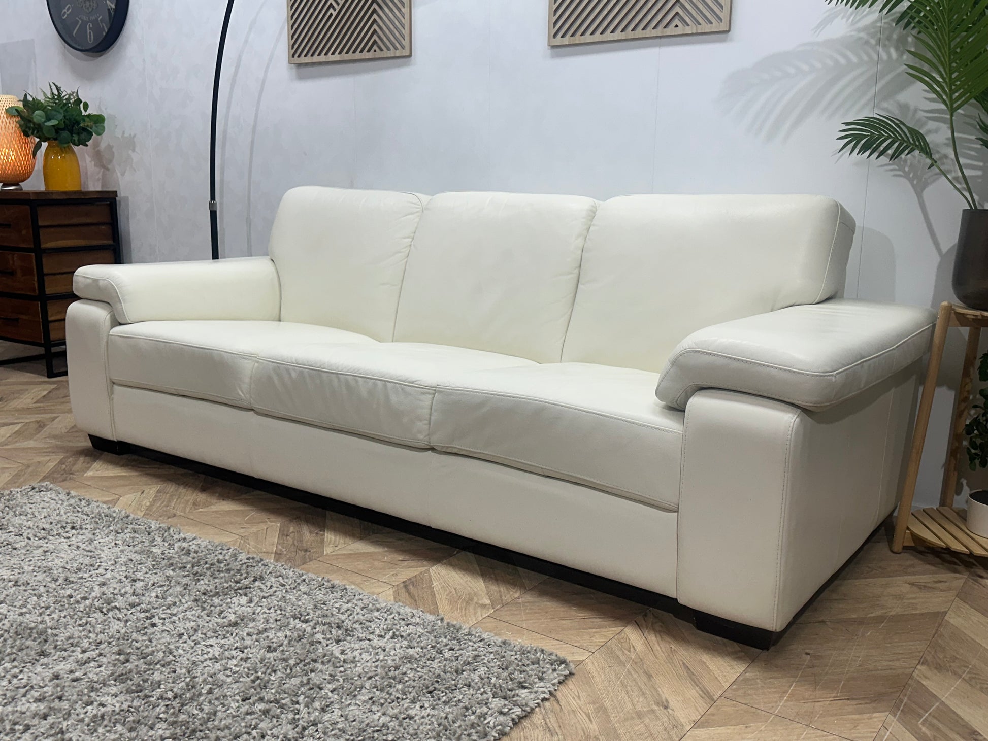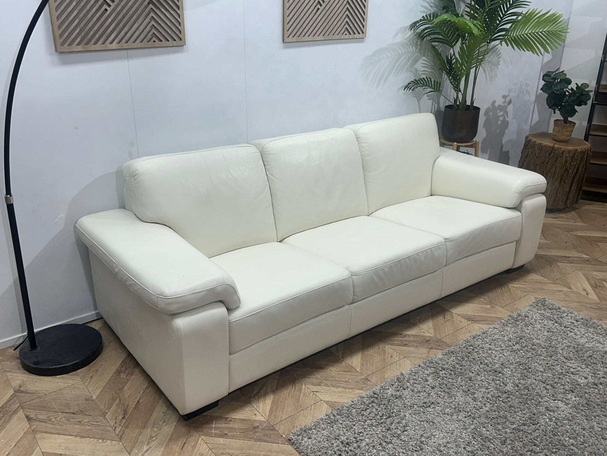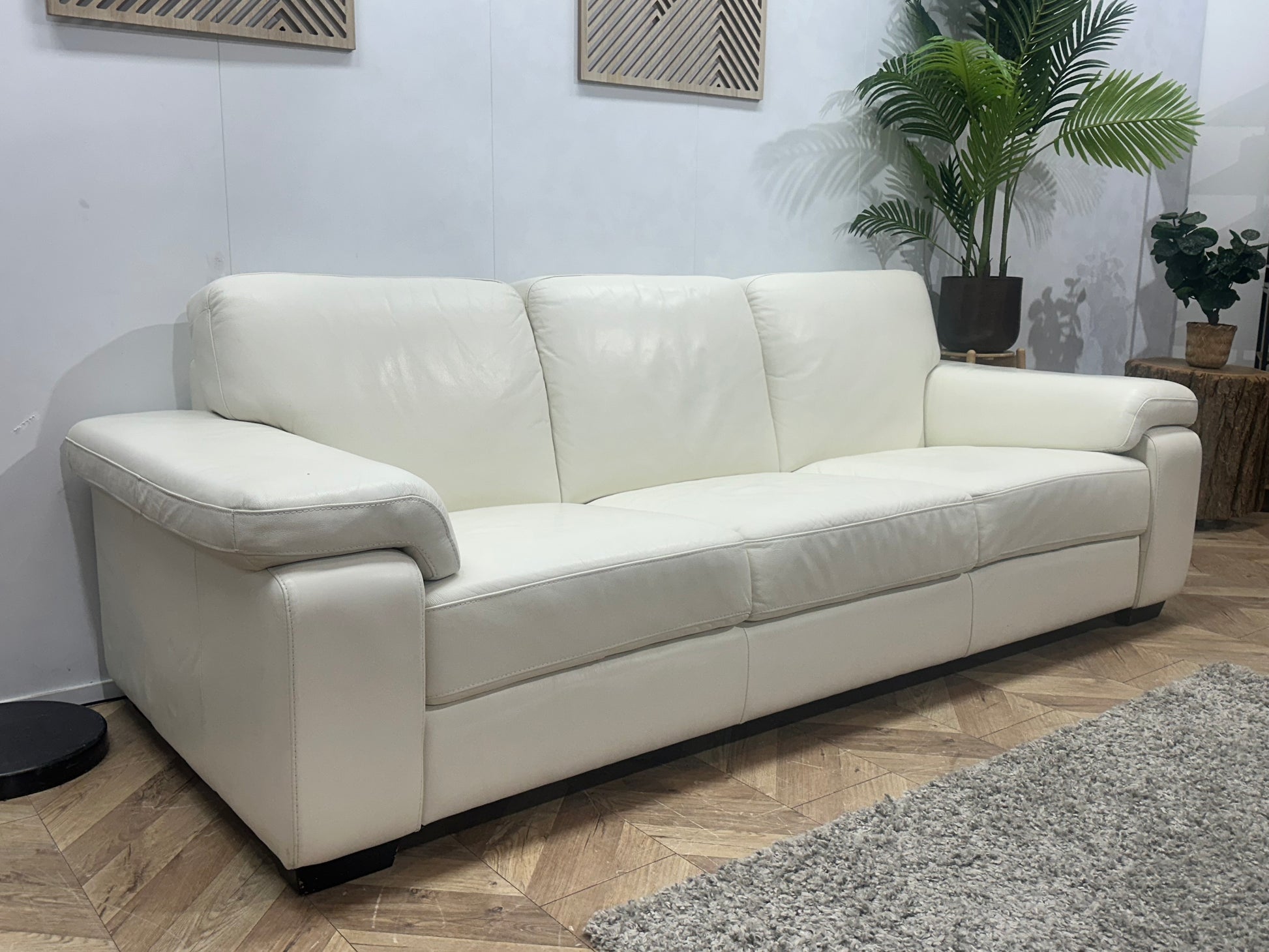 Witte Echt Lederen 3-Zits Bank ~ Vaste Kussens
