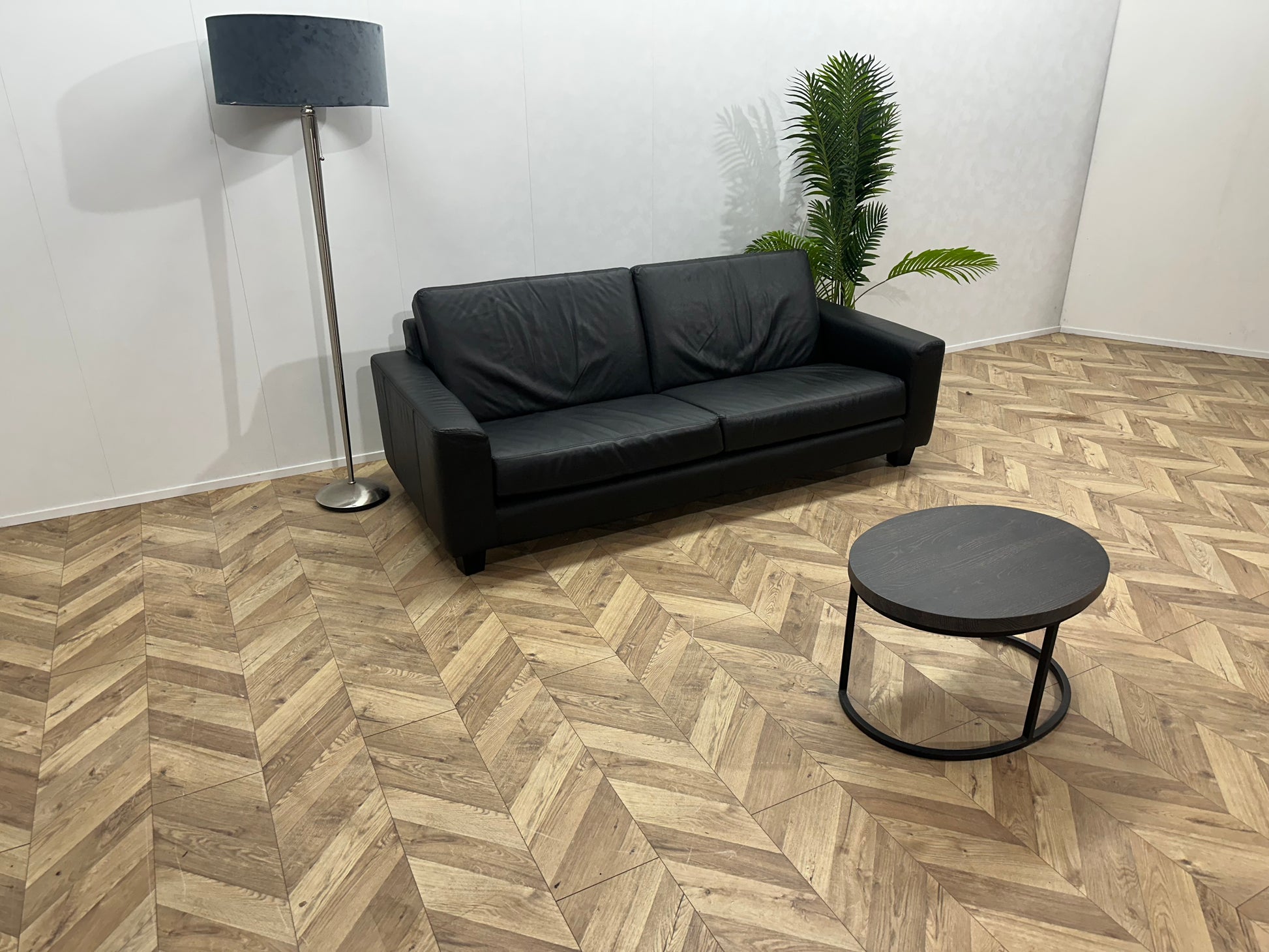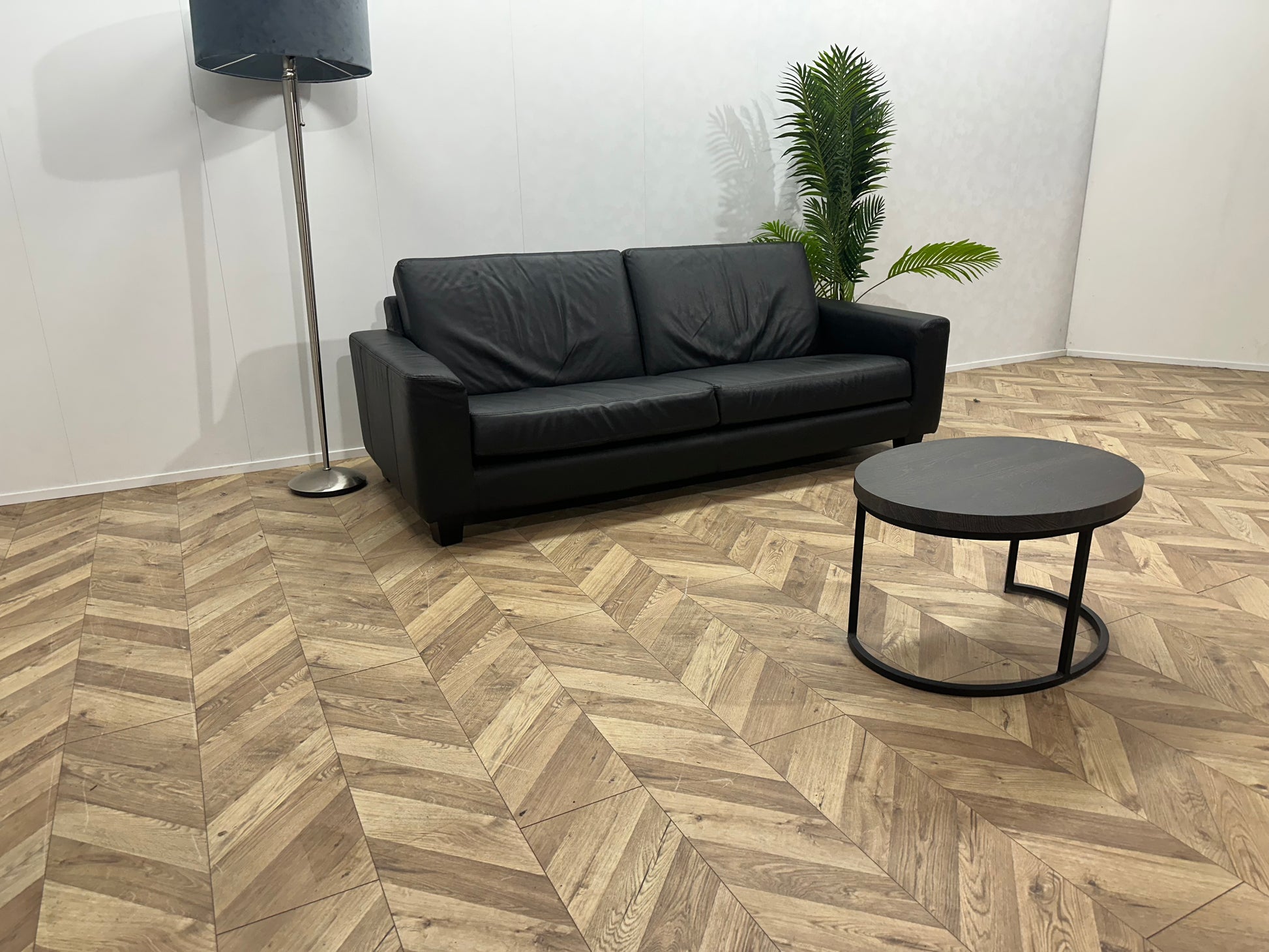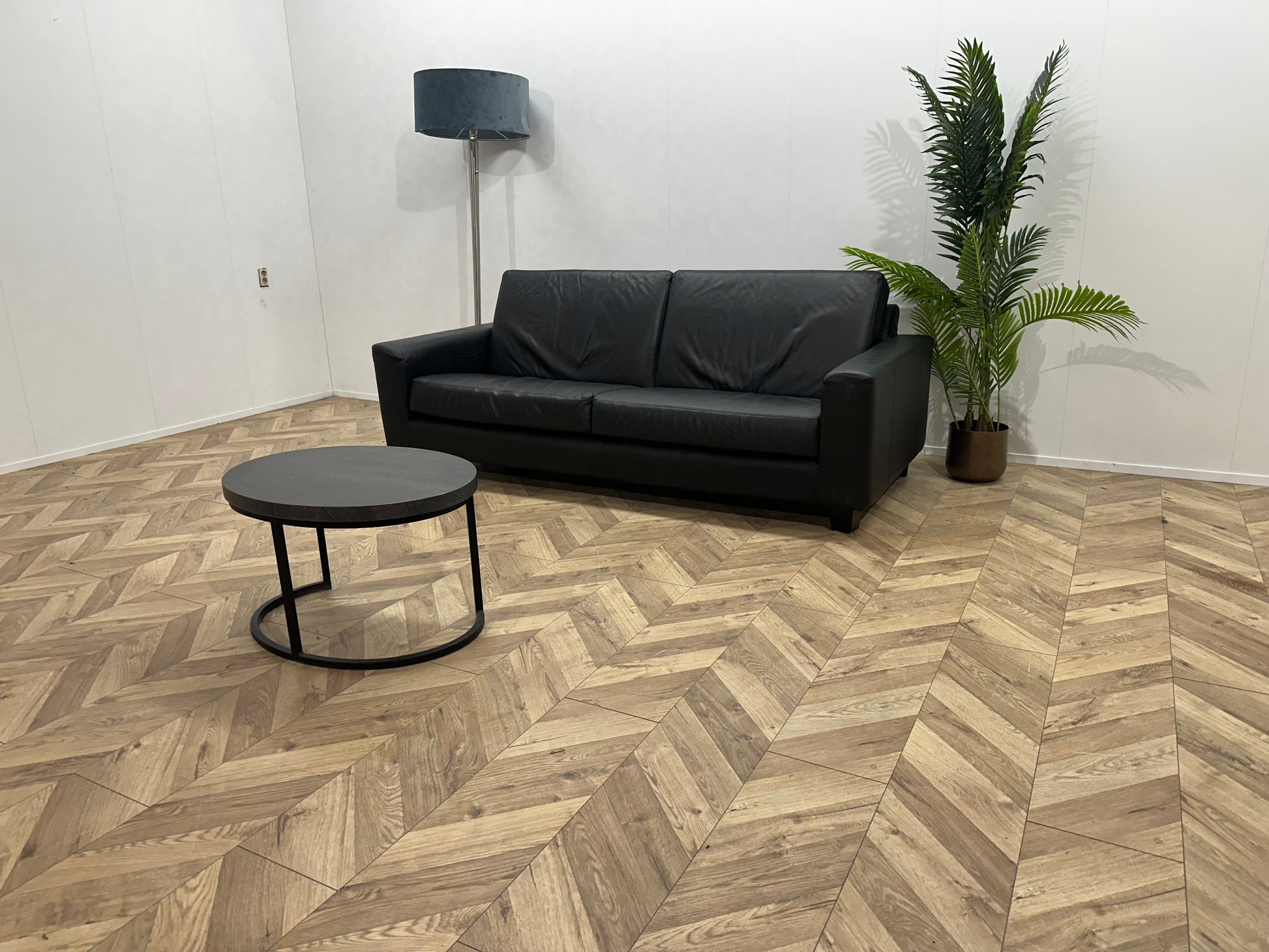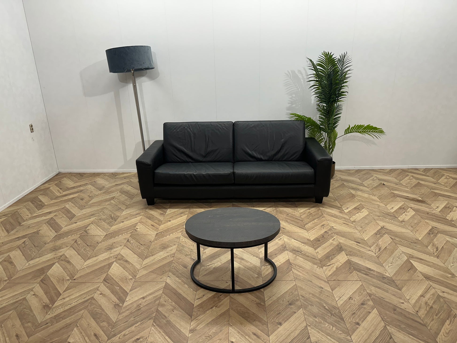 Zwart Echt Lederen 2.5-Zits Bank ~ Losse Kussens Met Afneembare Hoezen