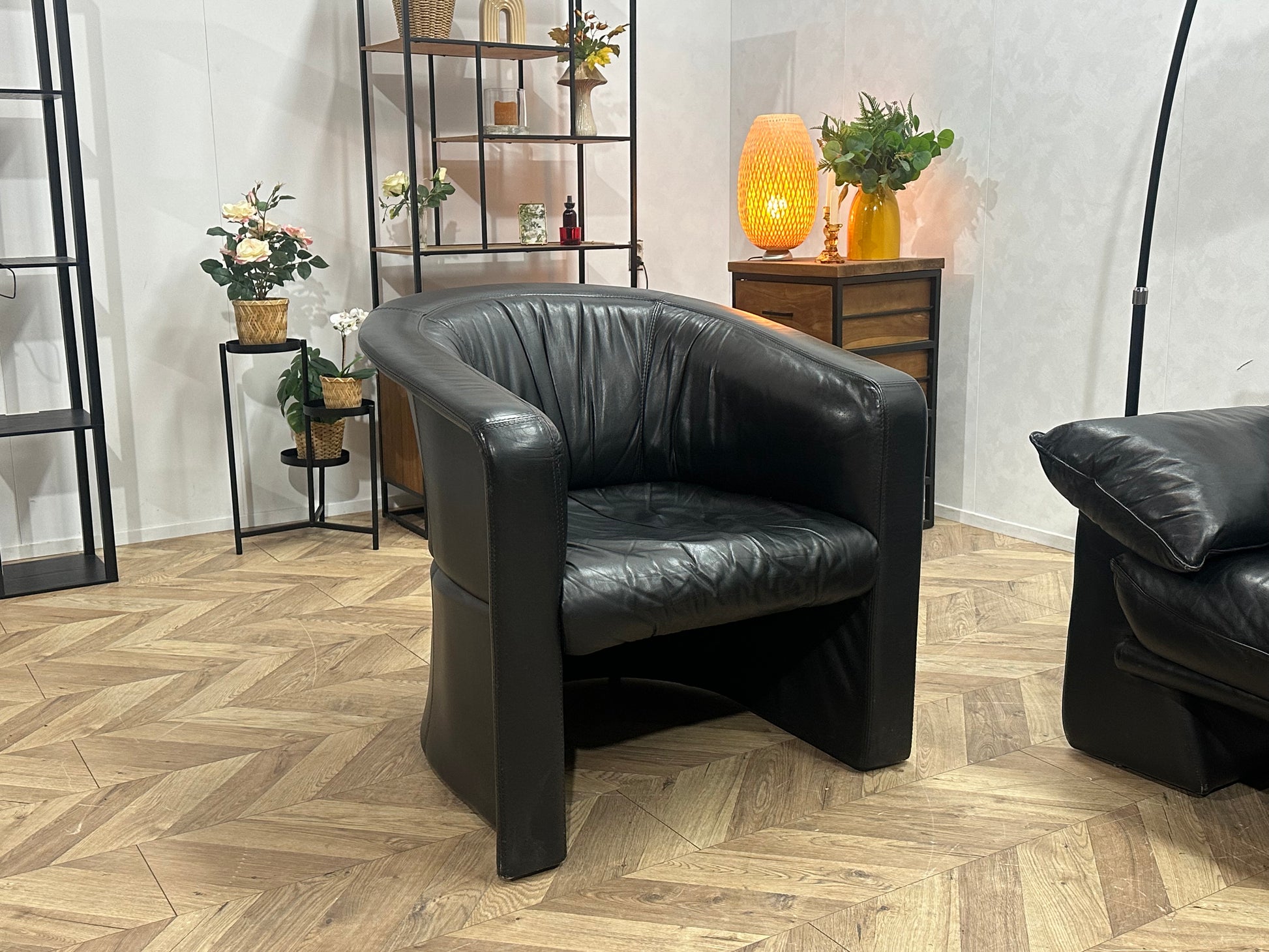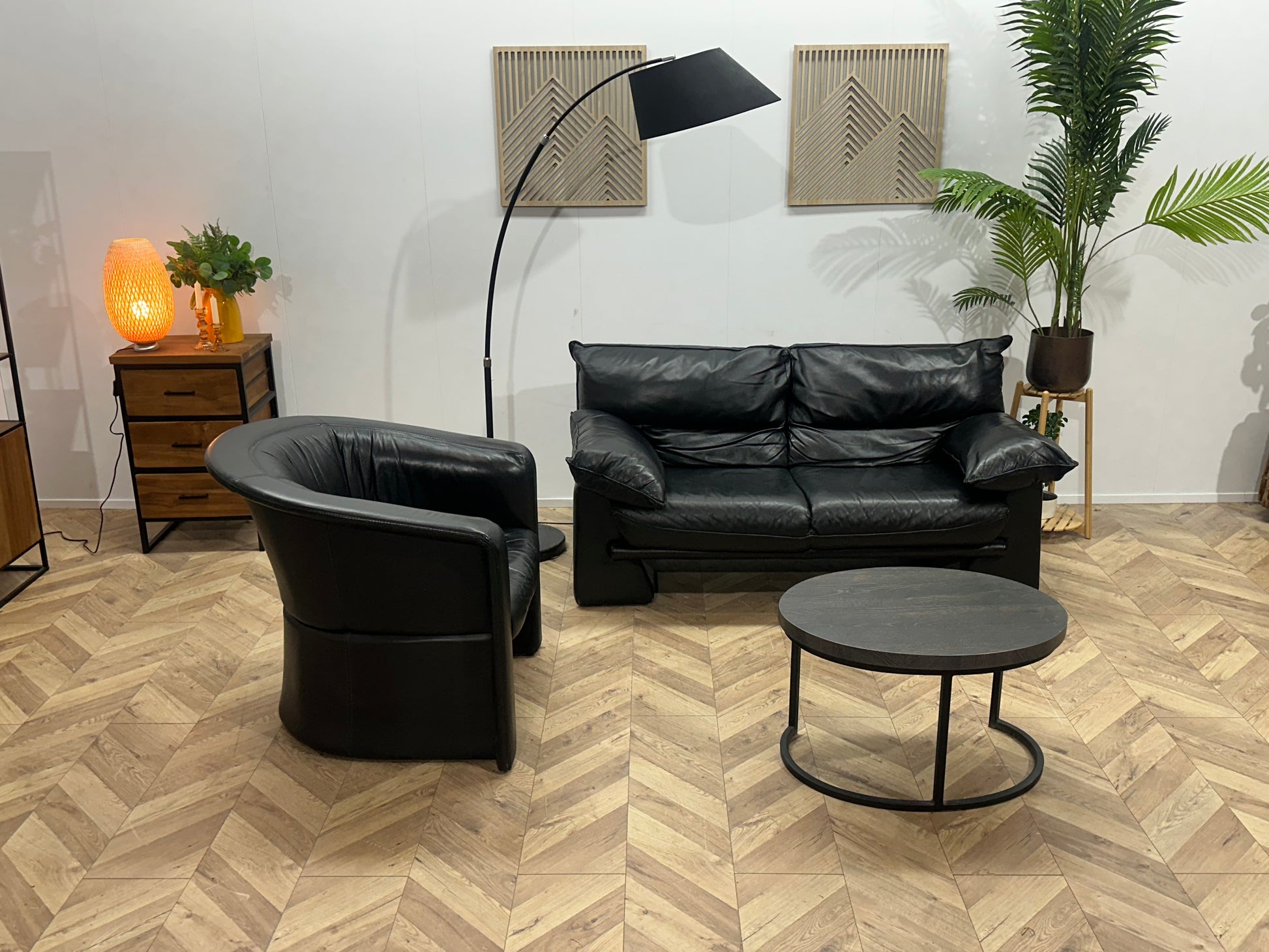 Zwarte Echt Lederen 2-Zits Inc Fauteuil ~ Vaste Kussens