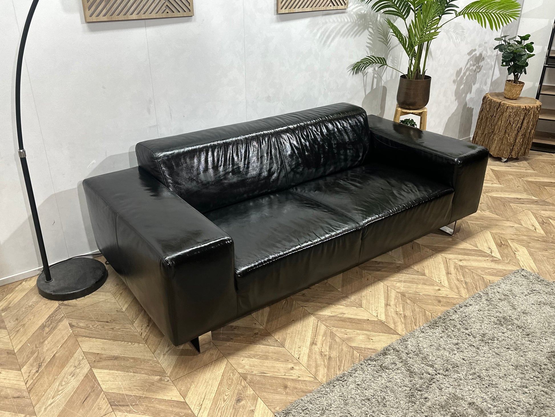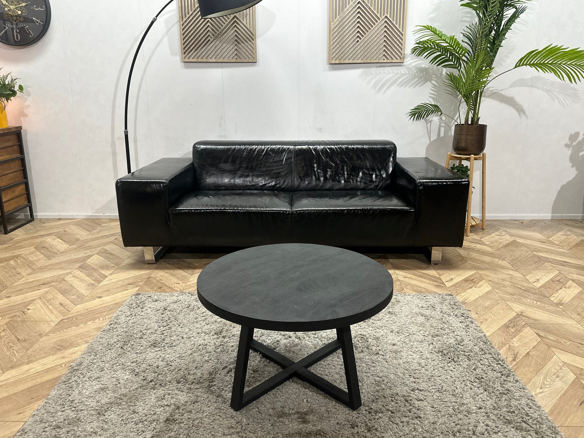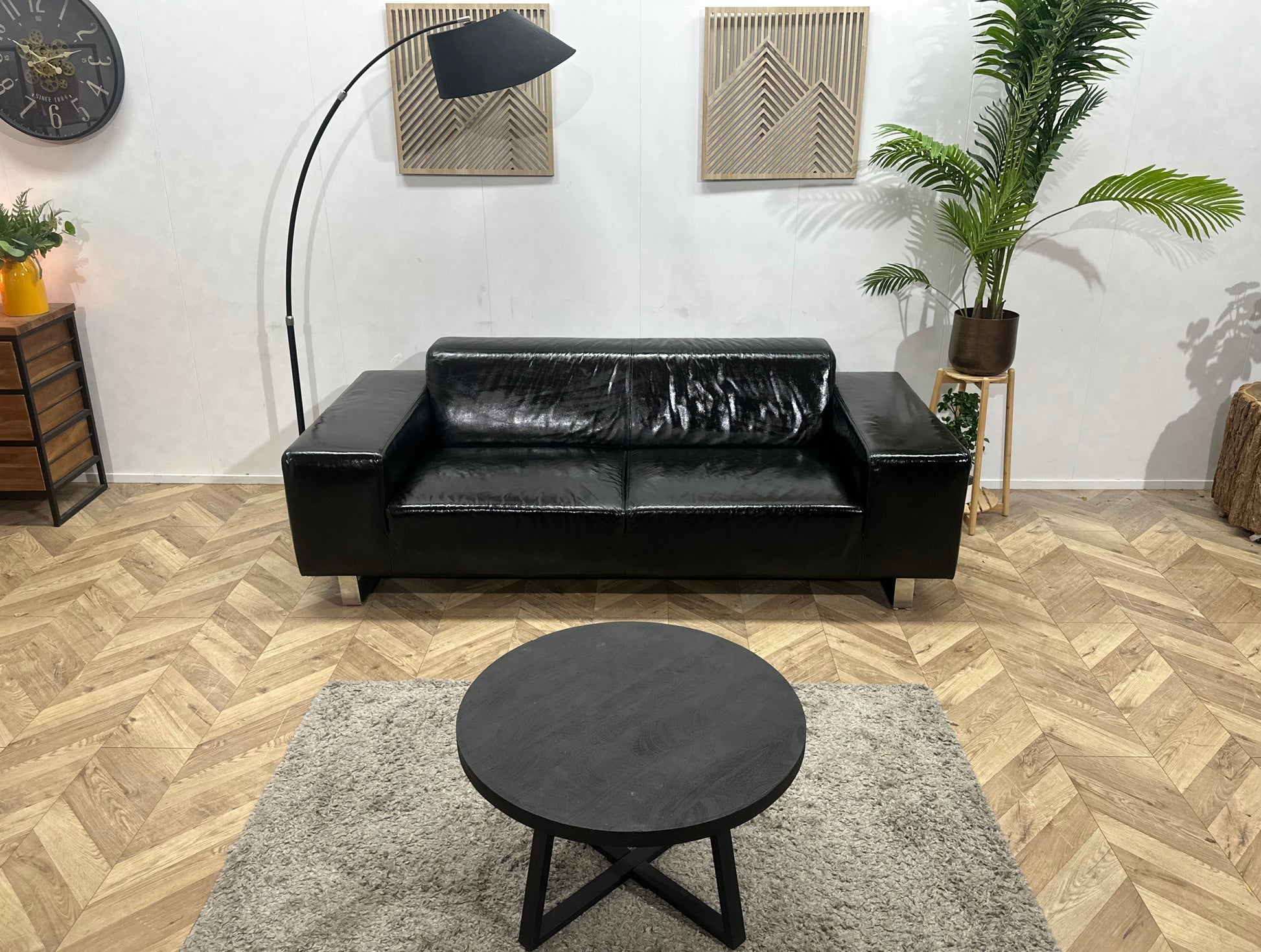 Zwarte Echt Lederen 2.5-Zits Bank ~ Geïmpregneerd
