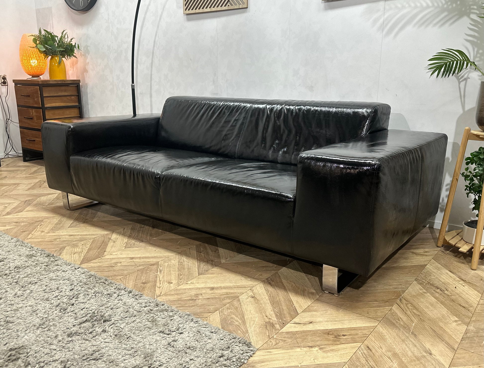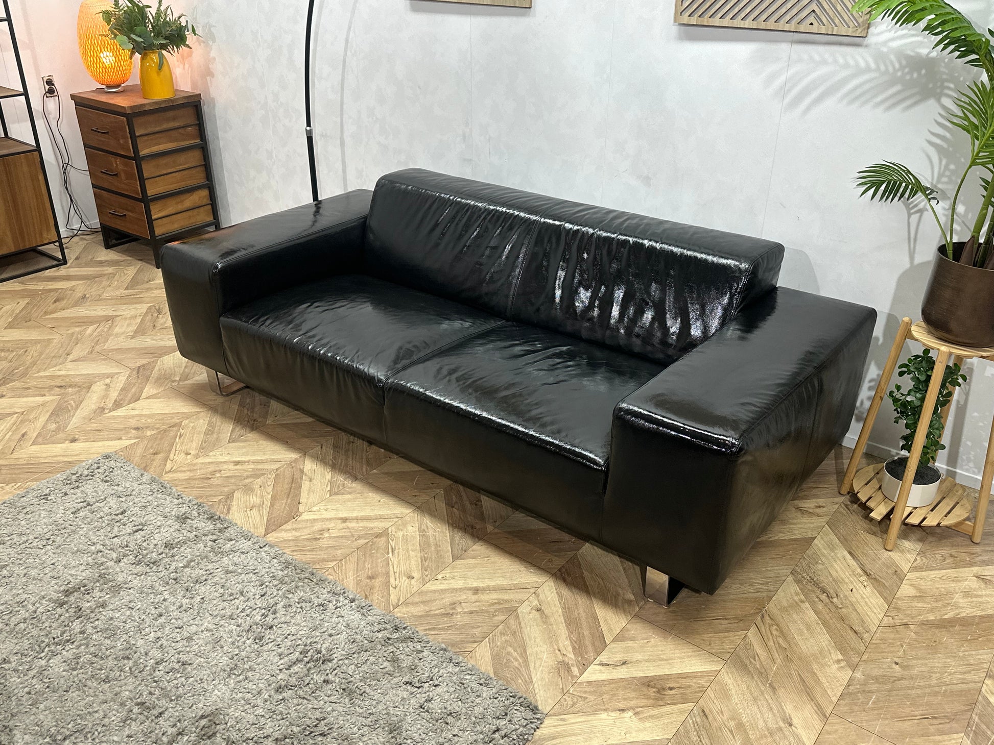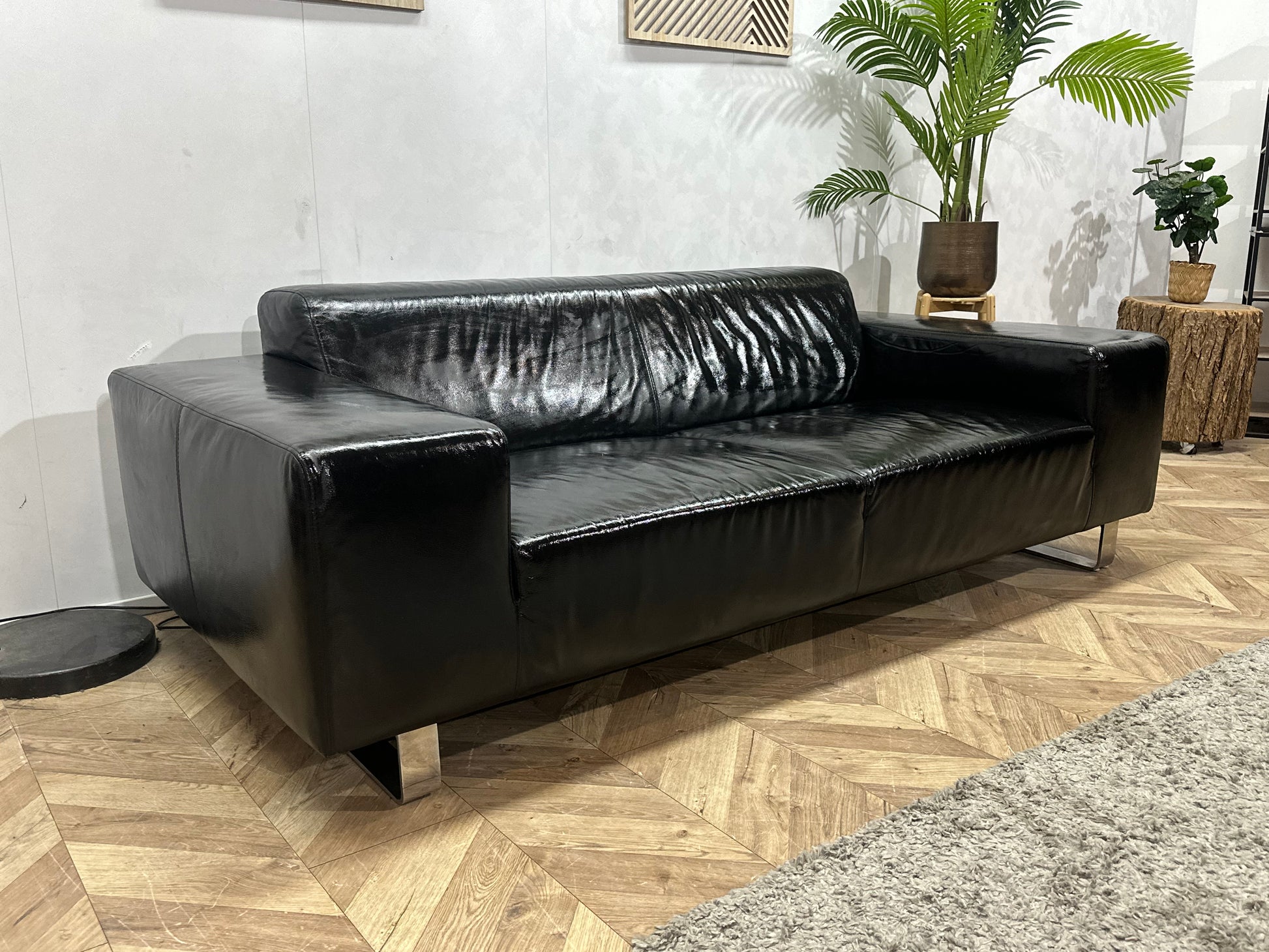 Zwarte Echt Lederen 2.5-Zits Bank ~ Geïmpregneerd