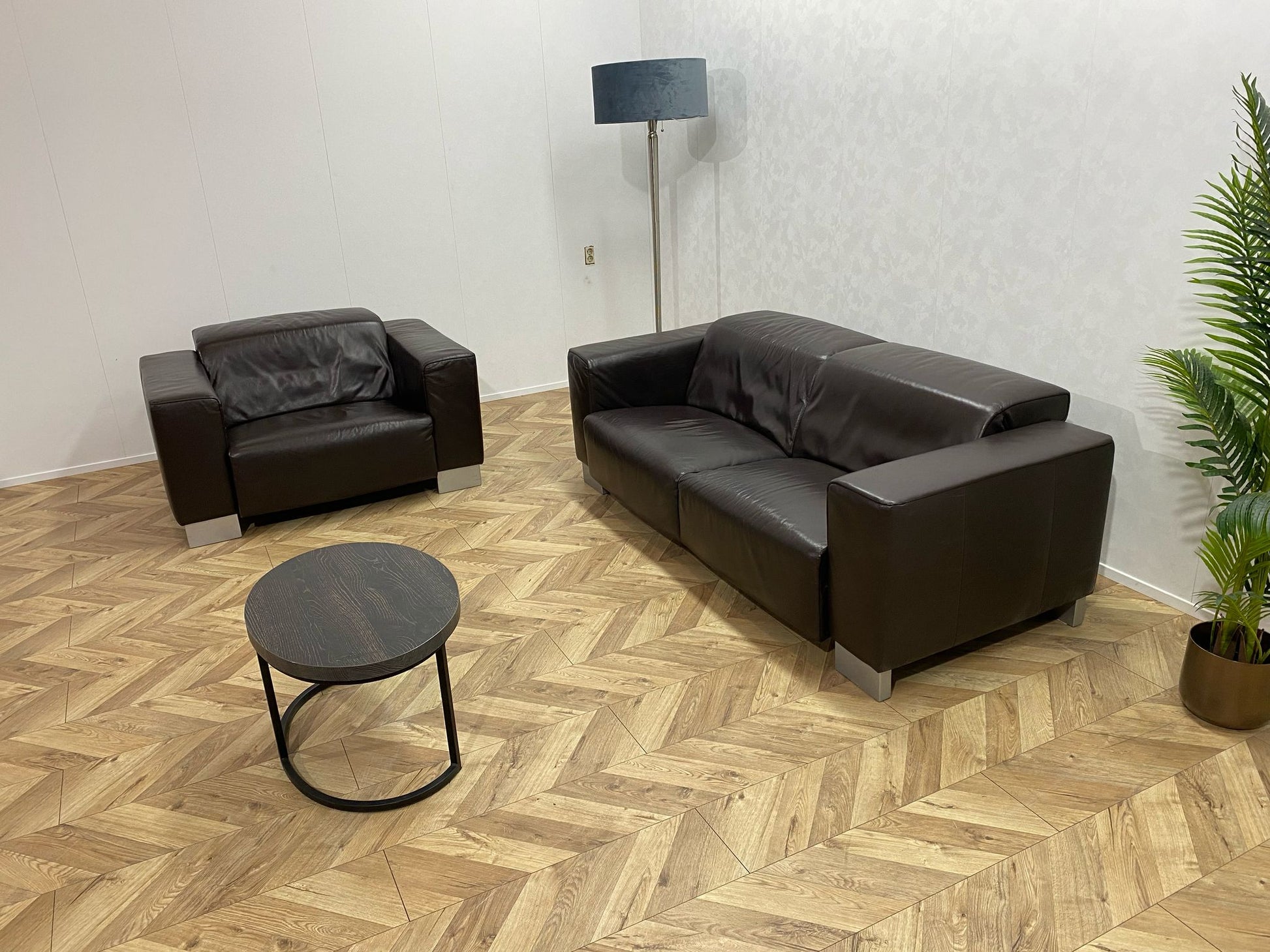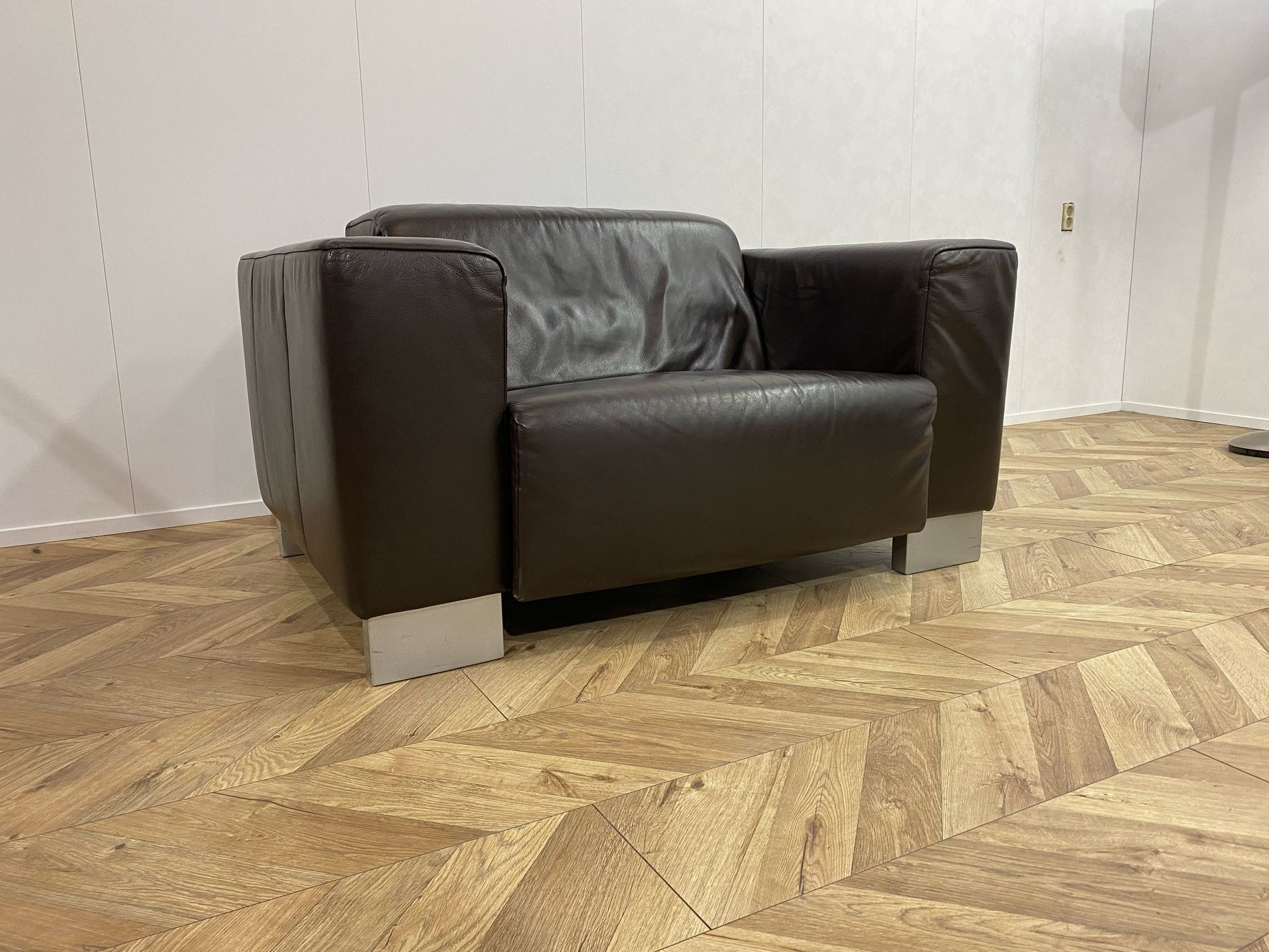 Zwarte Echt Lederen 2,5-Zits Bank Inc. Fauteuil