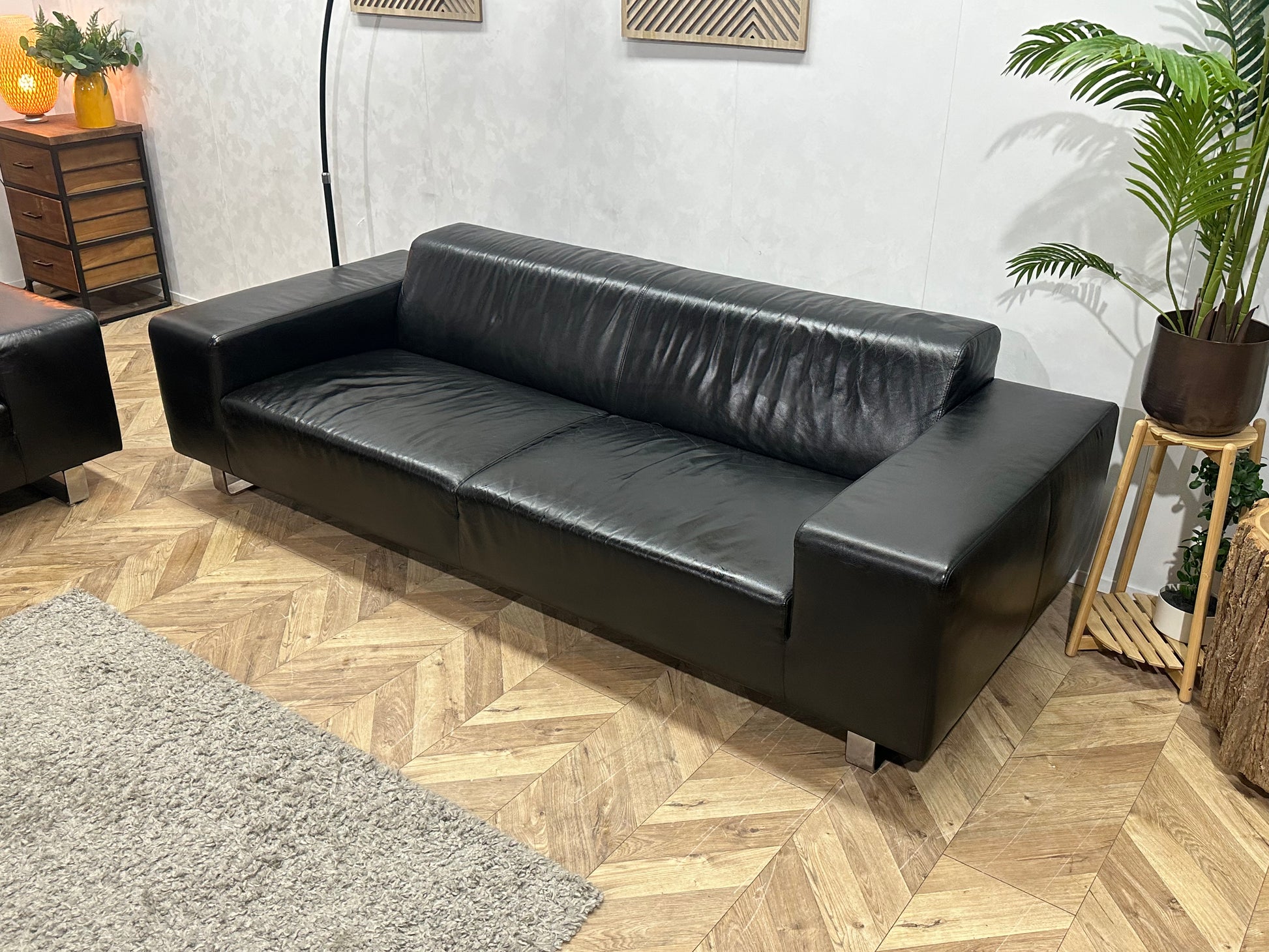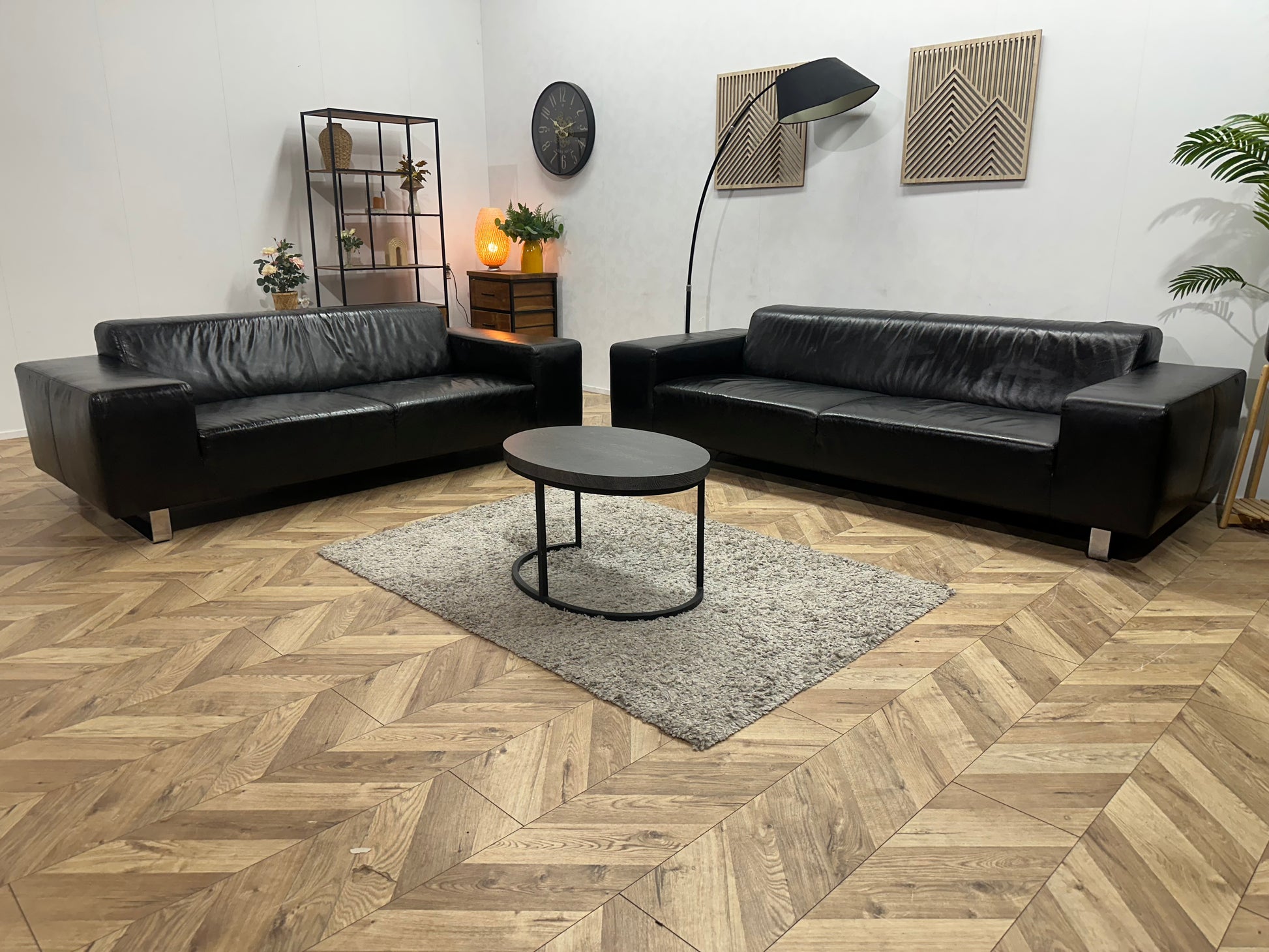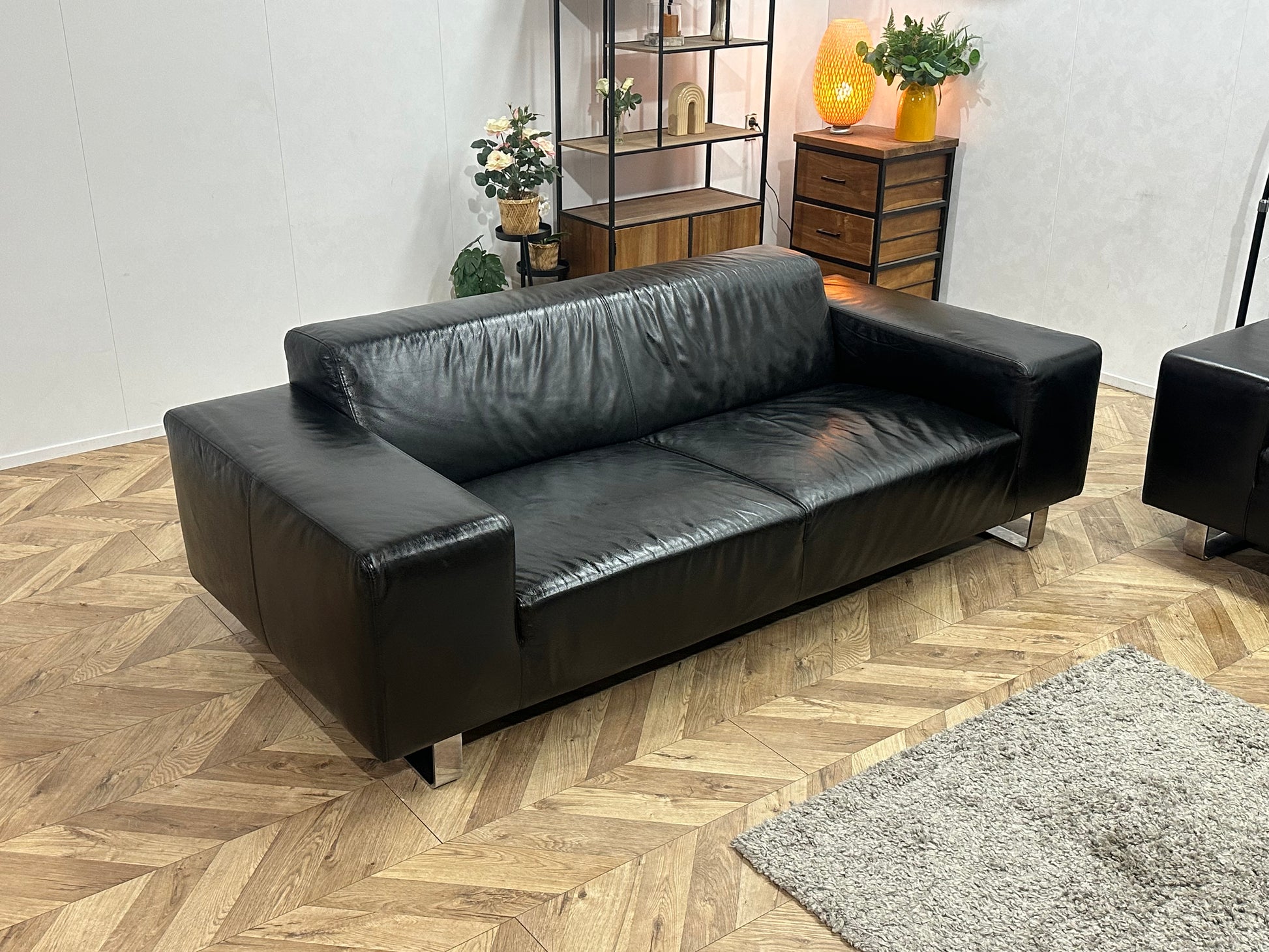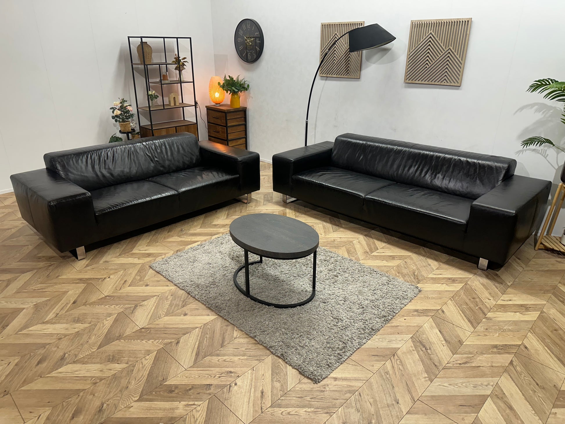 Zwarte Echt Lederen Banken Set ~ Geïmpregneerd