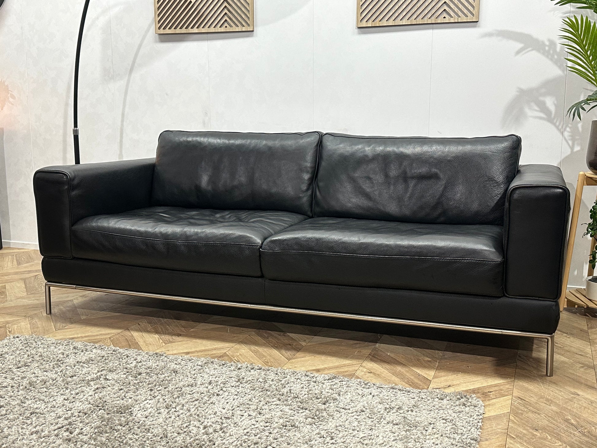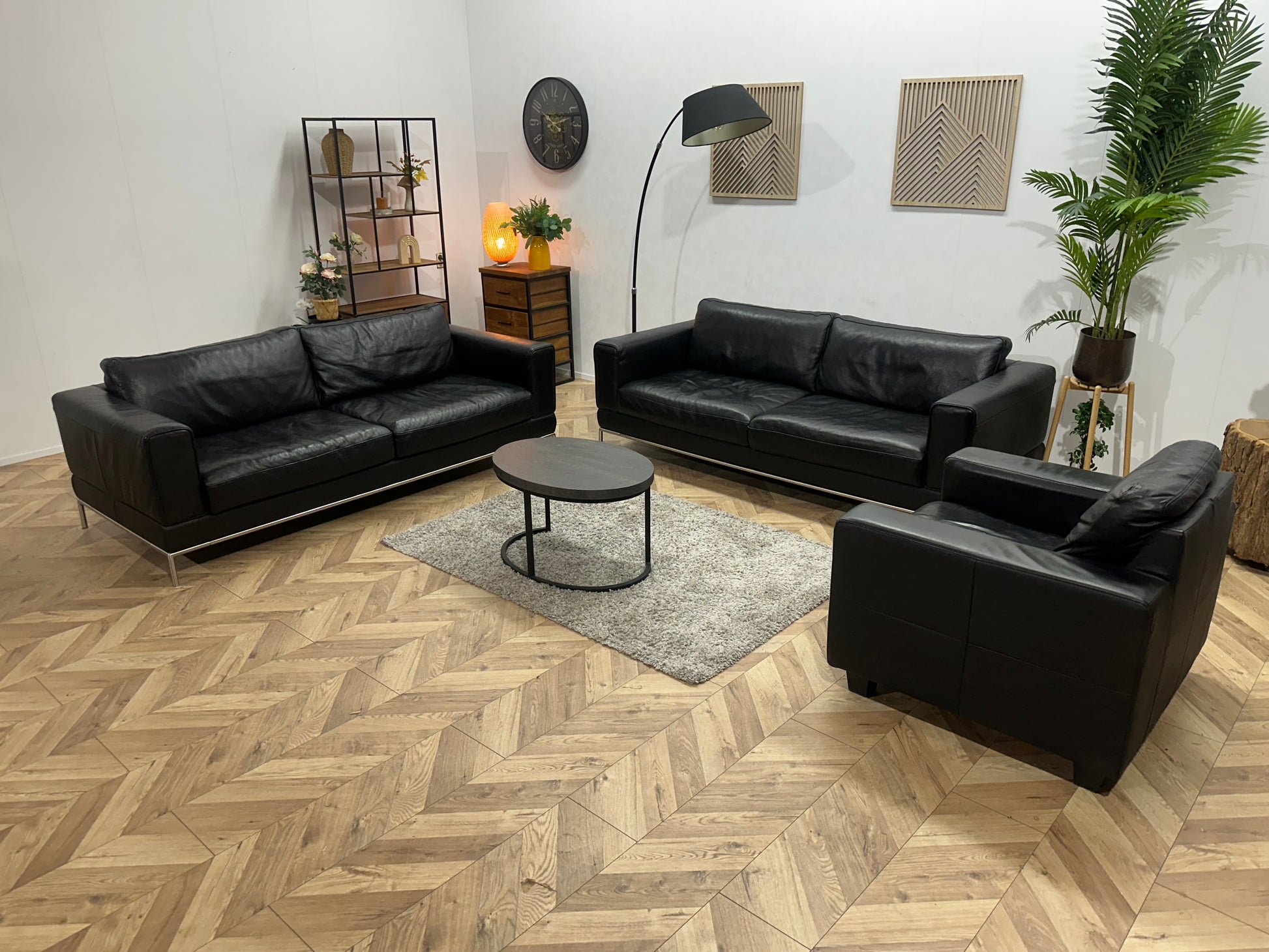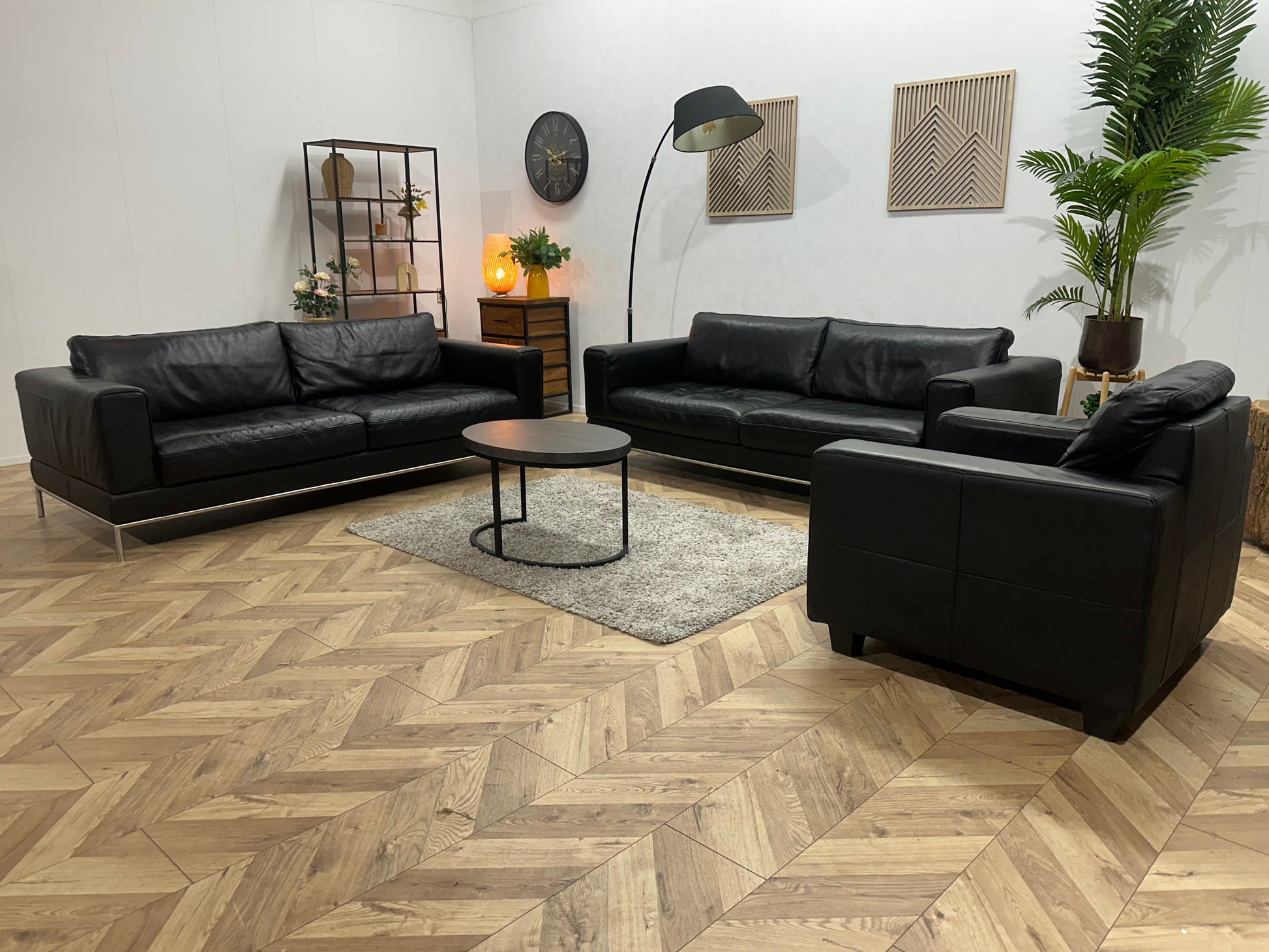 Zwarte Echt Lederen Banken Set Inc Fauteuil ~ Vaste Kussens
