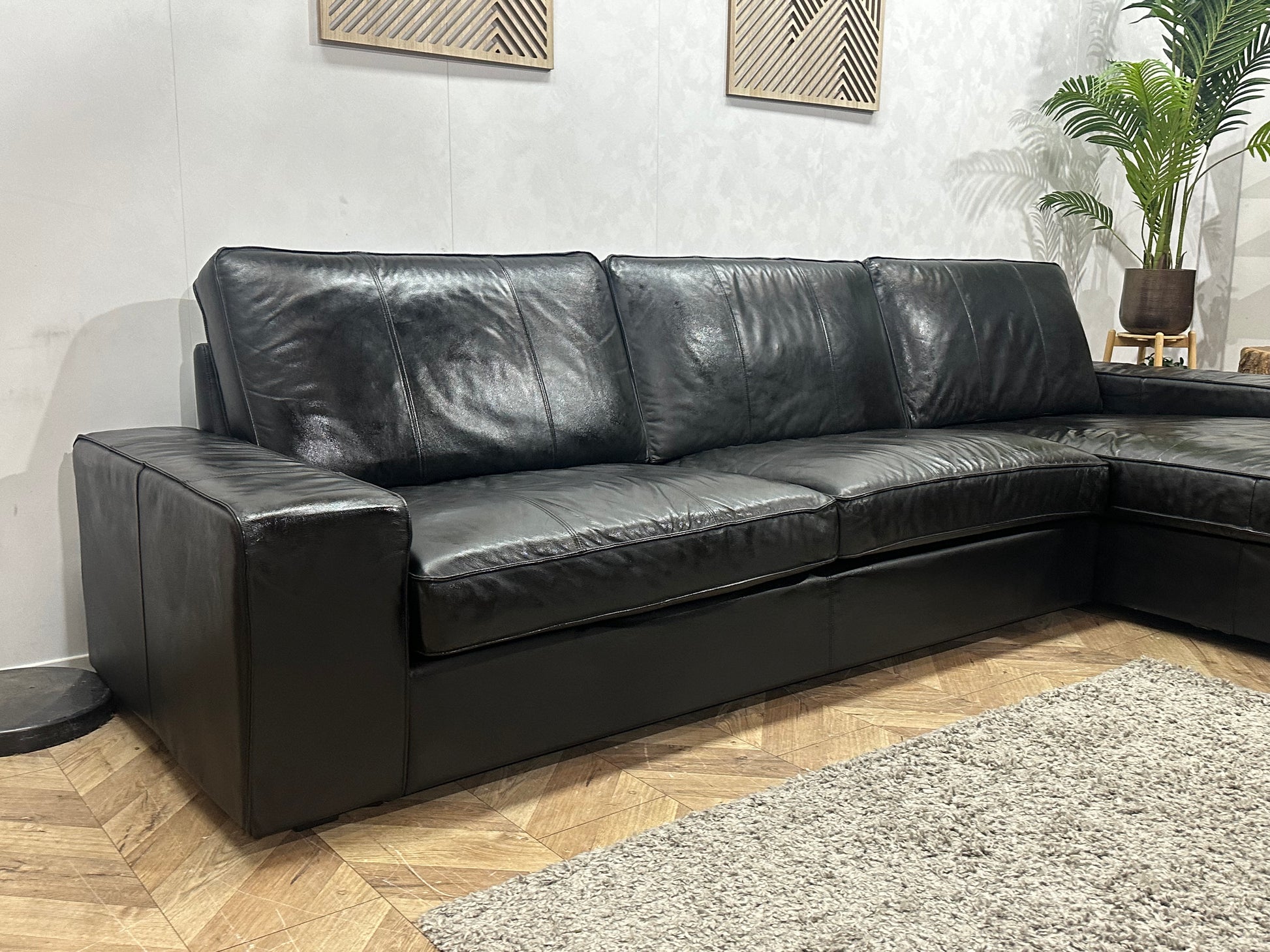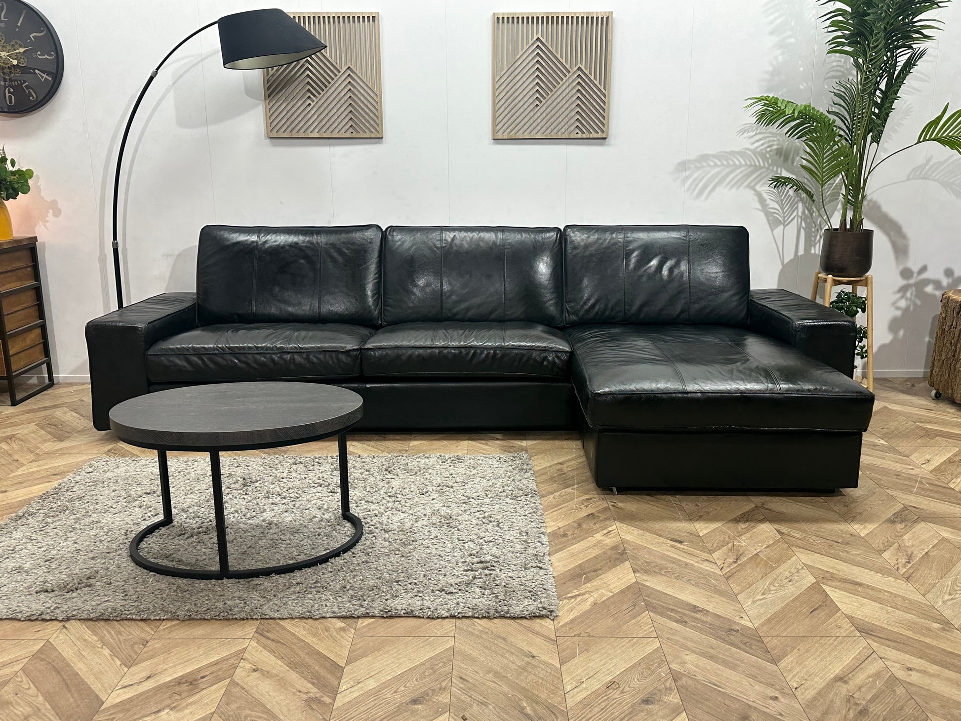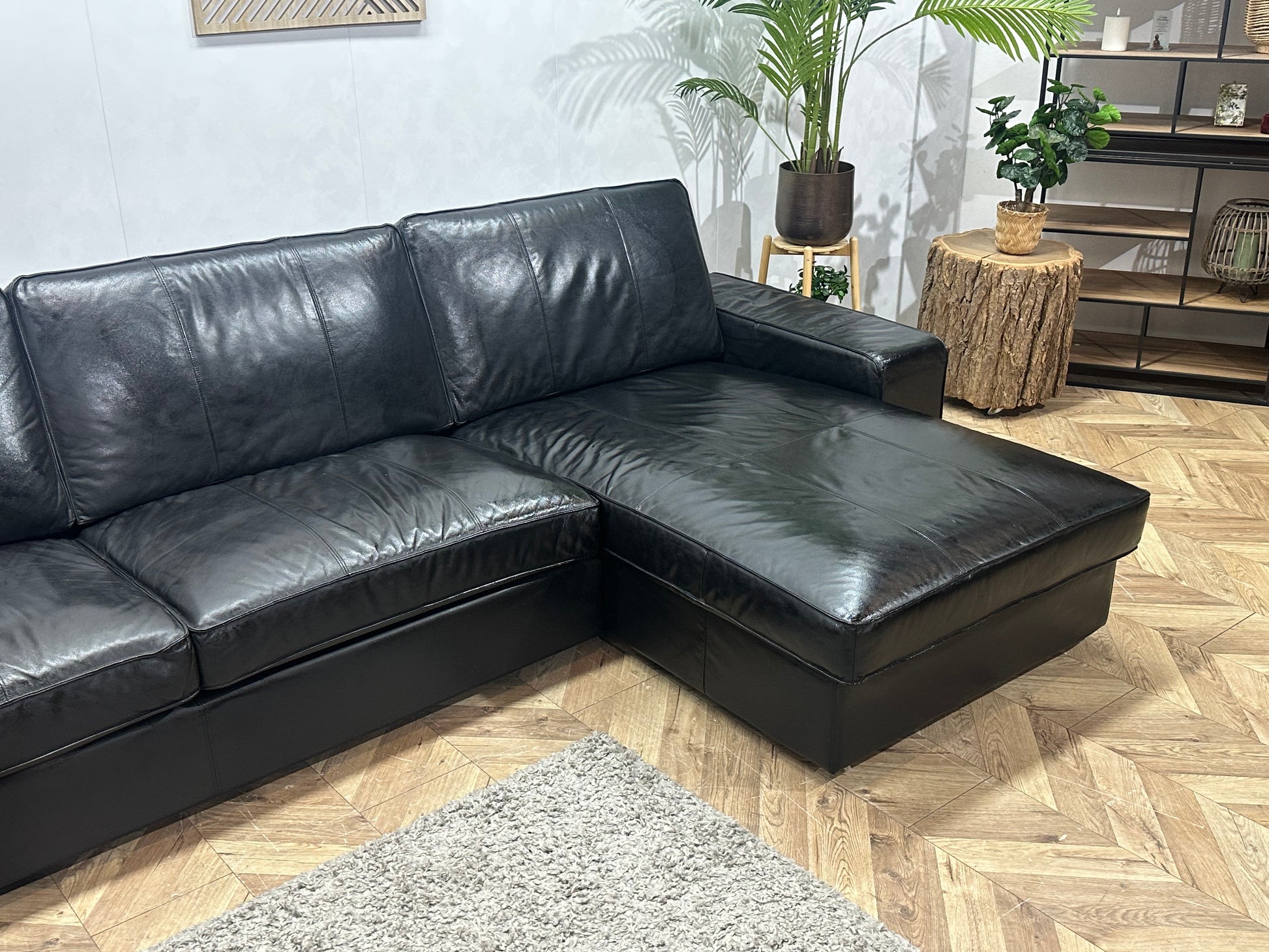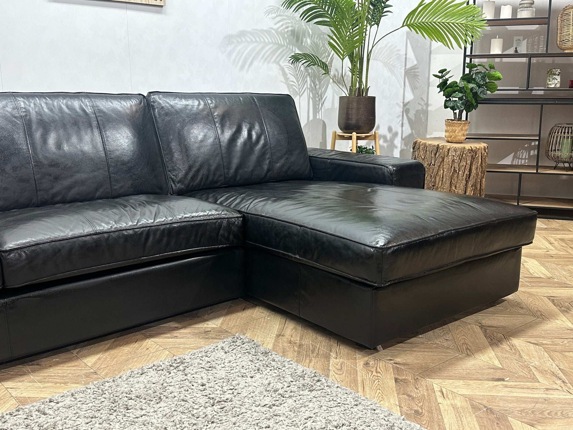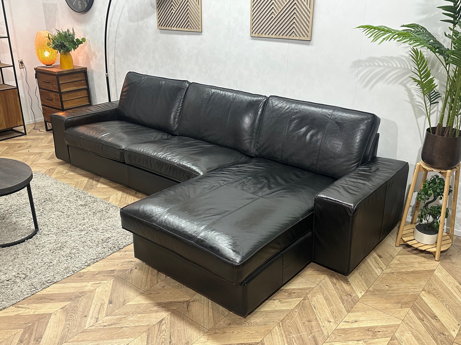Zwarte Echt Lederen Hoekbank ~Geïmpregneerd