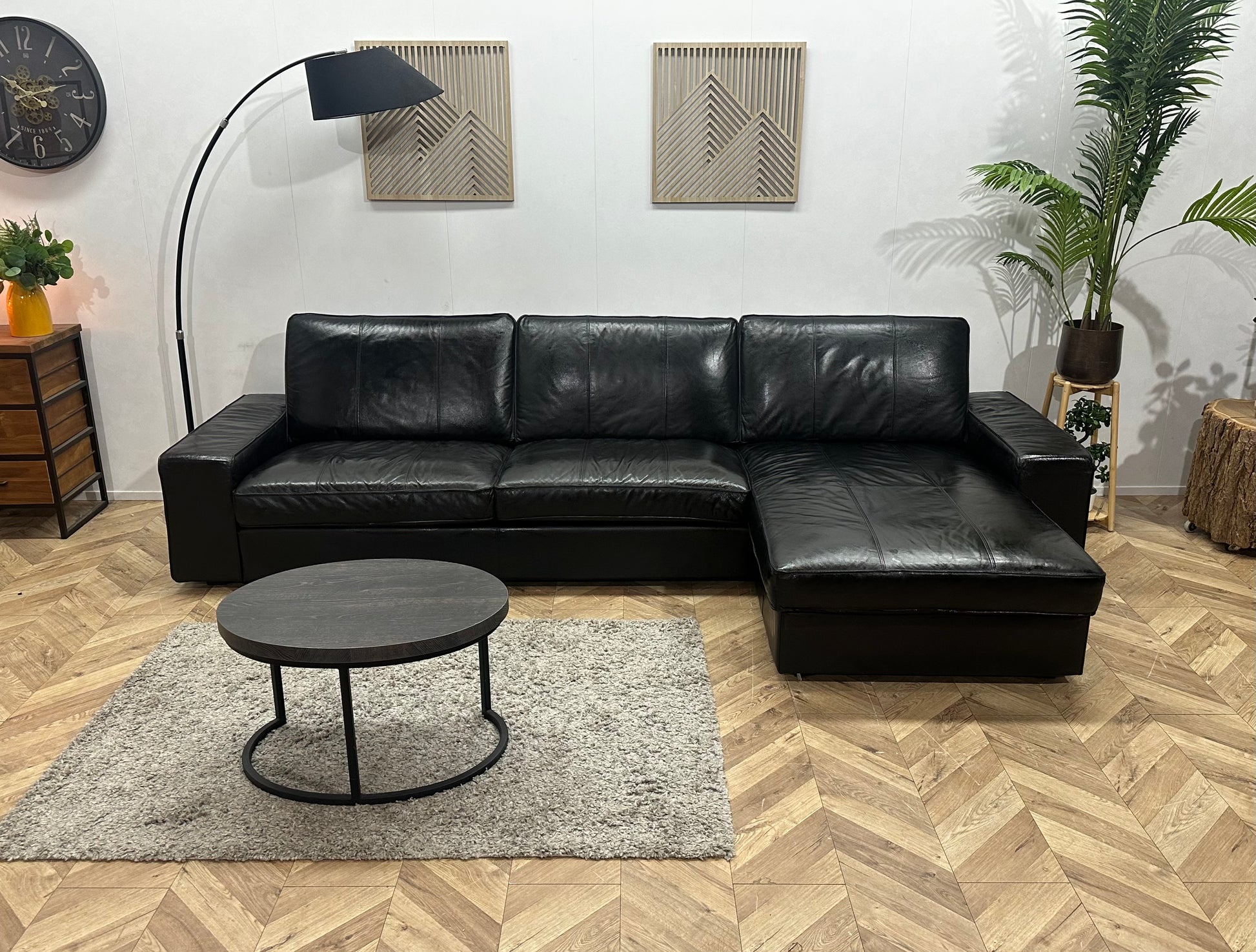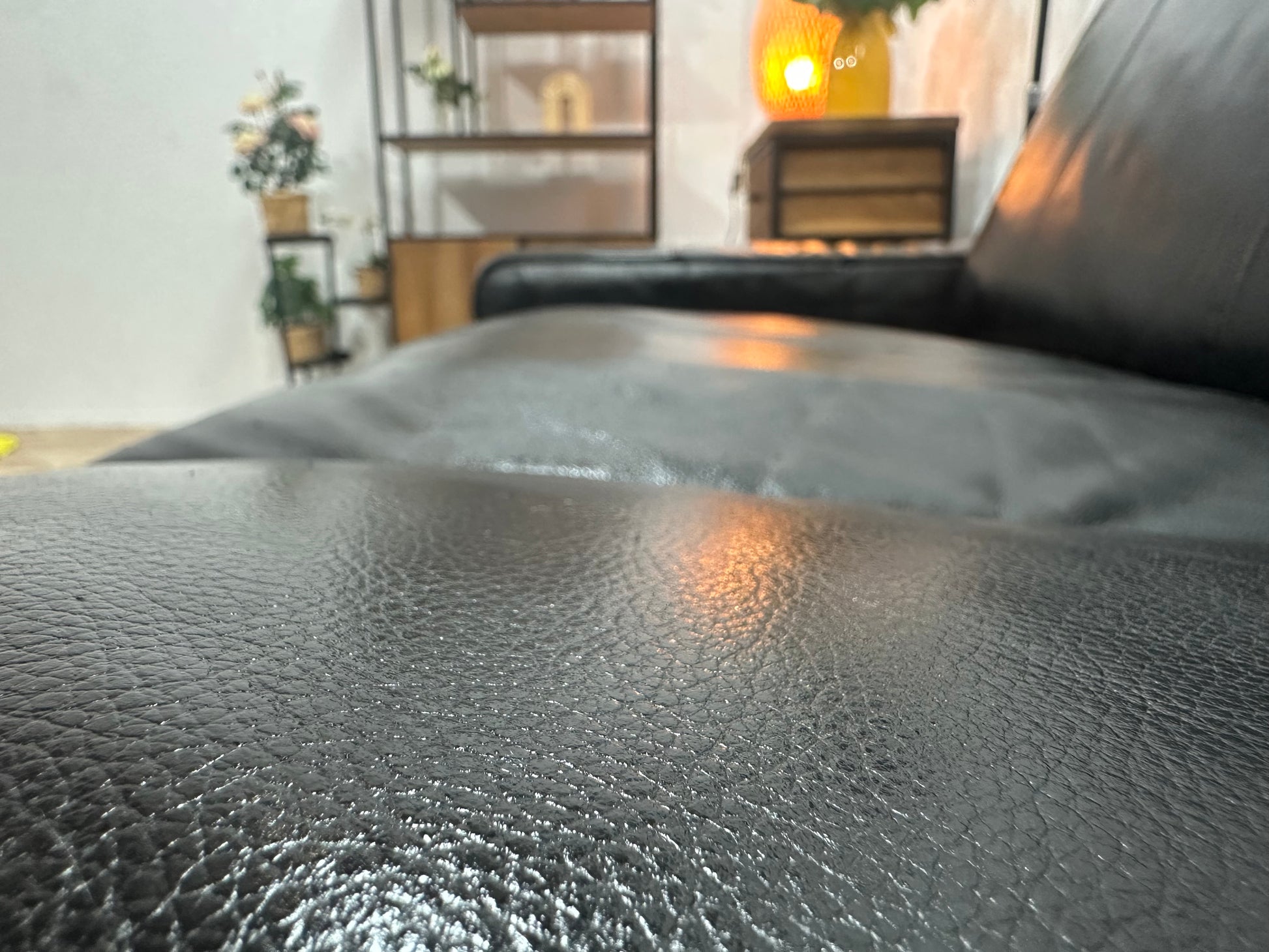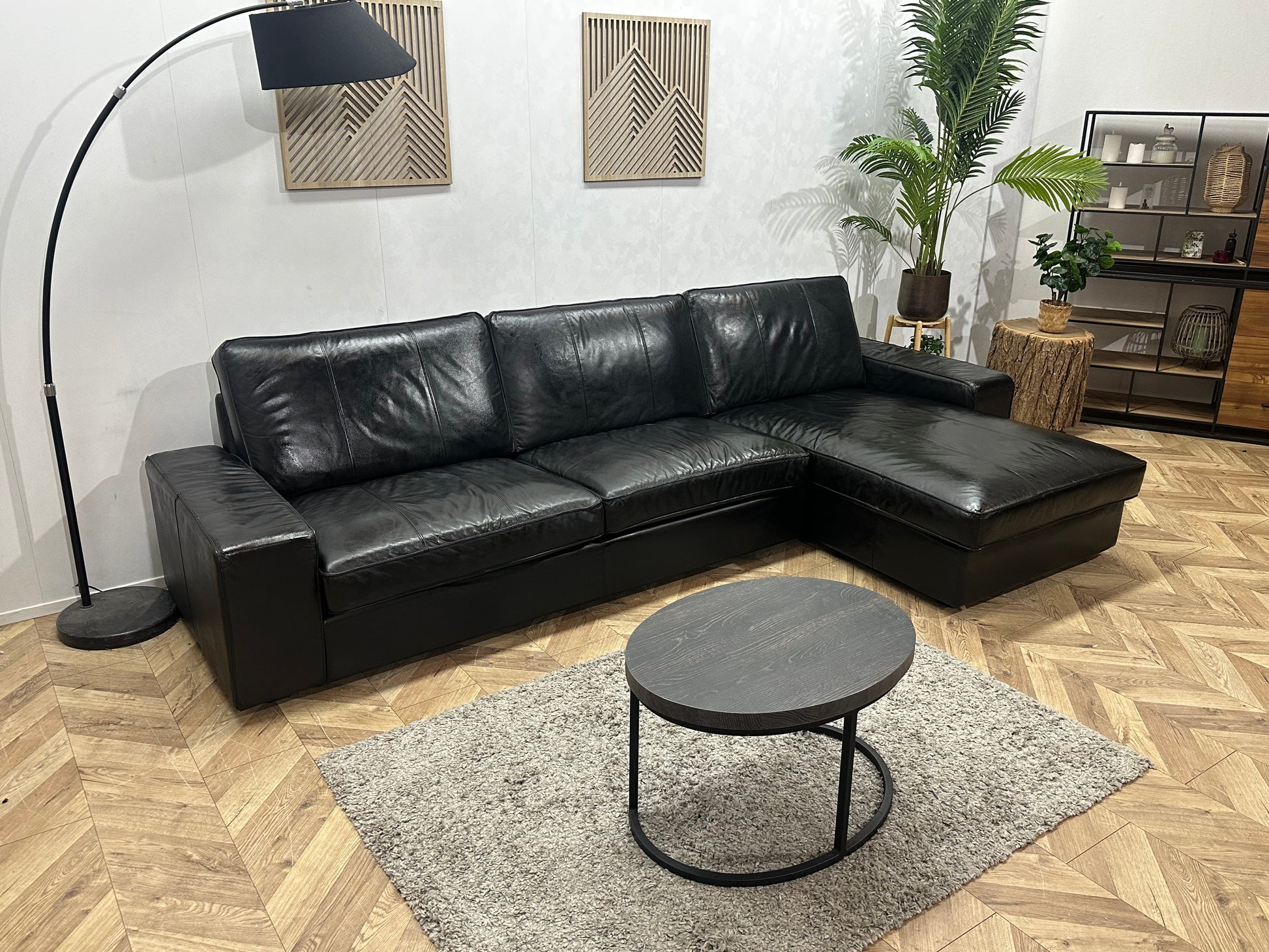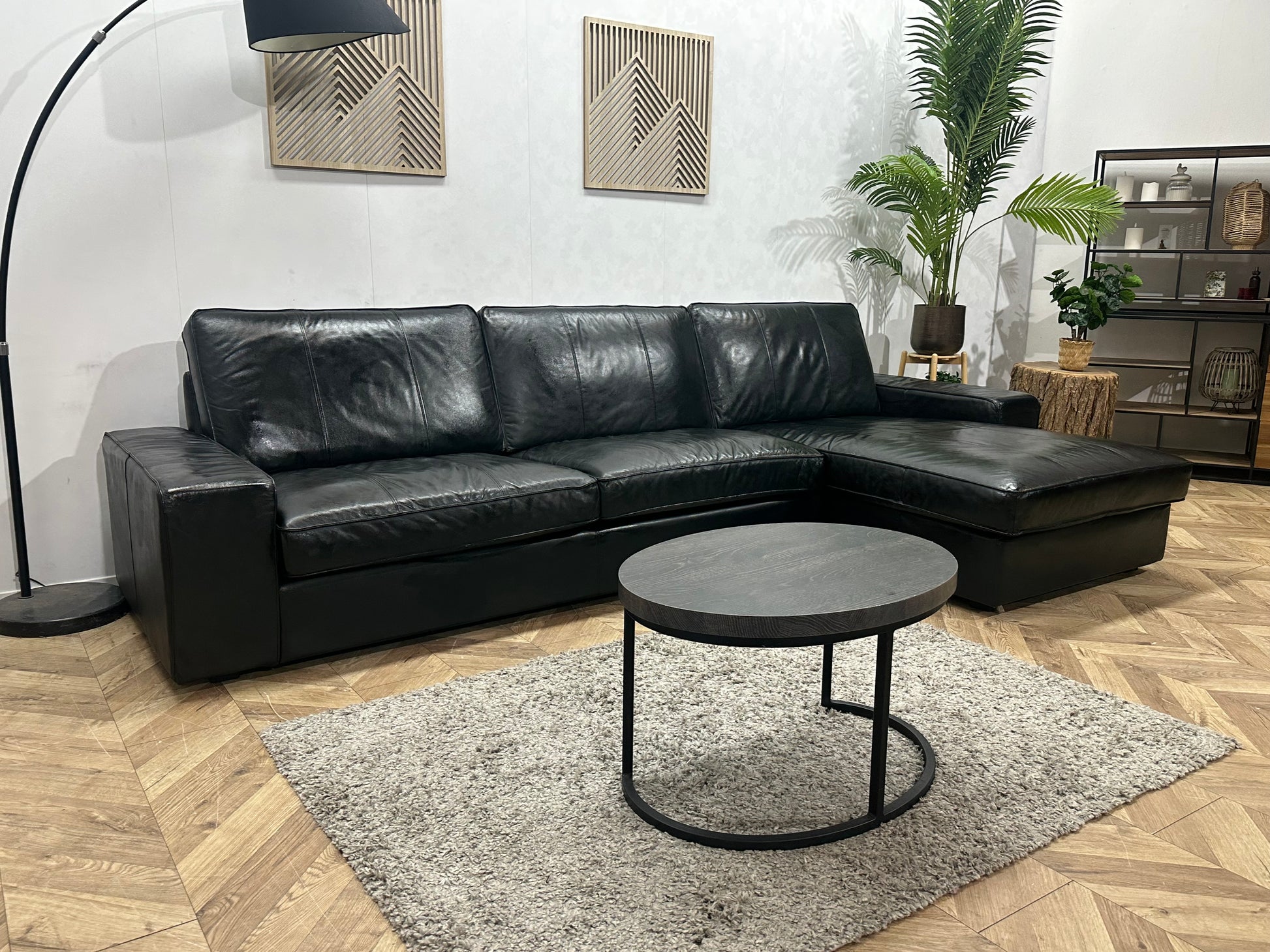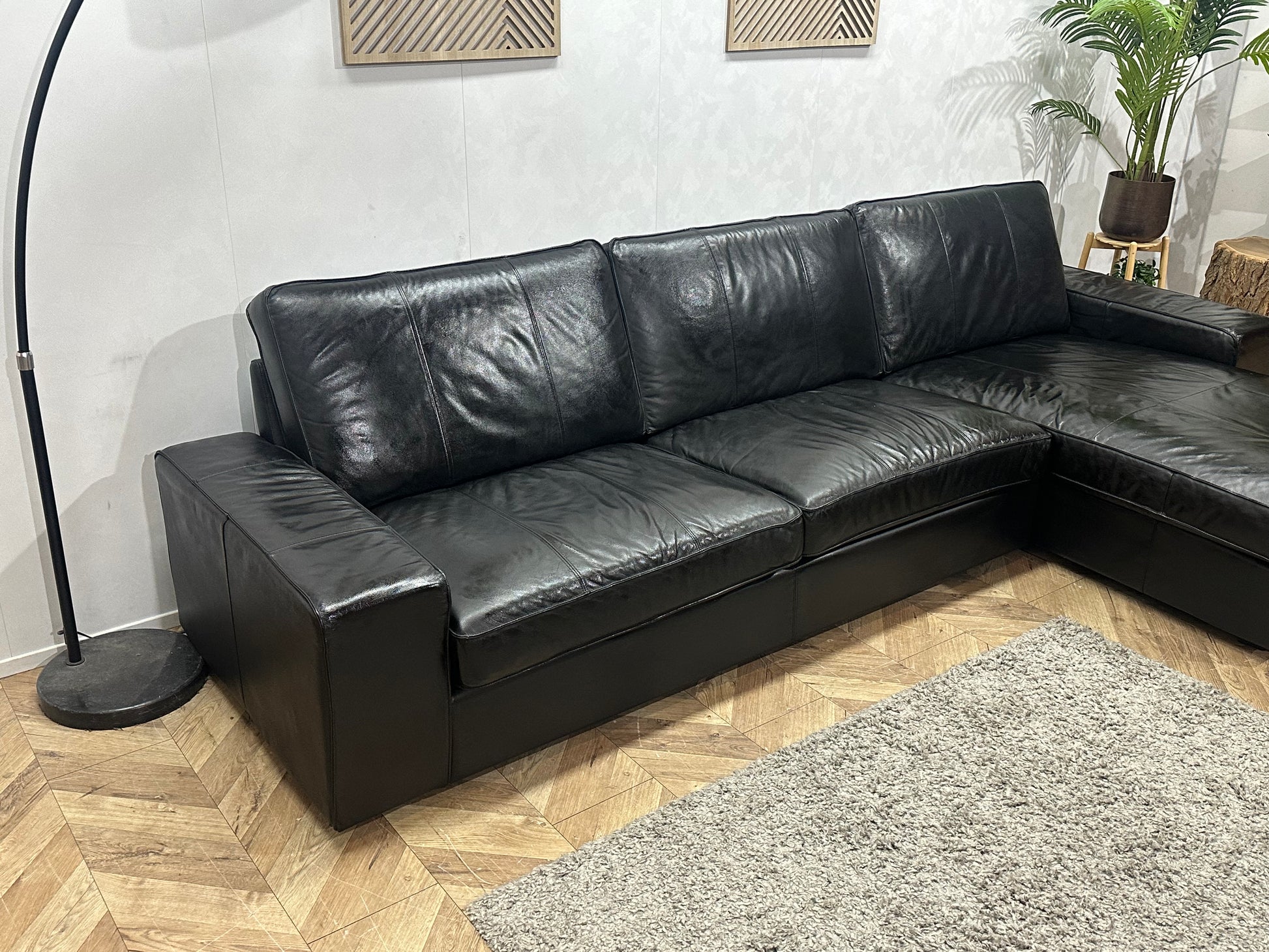 Zwarte Echt Lederen Hoekbank ~Geïmpregneerd