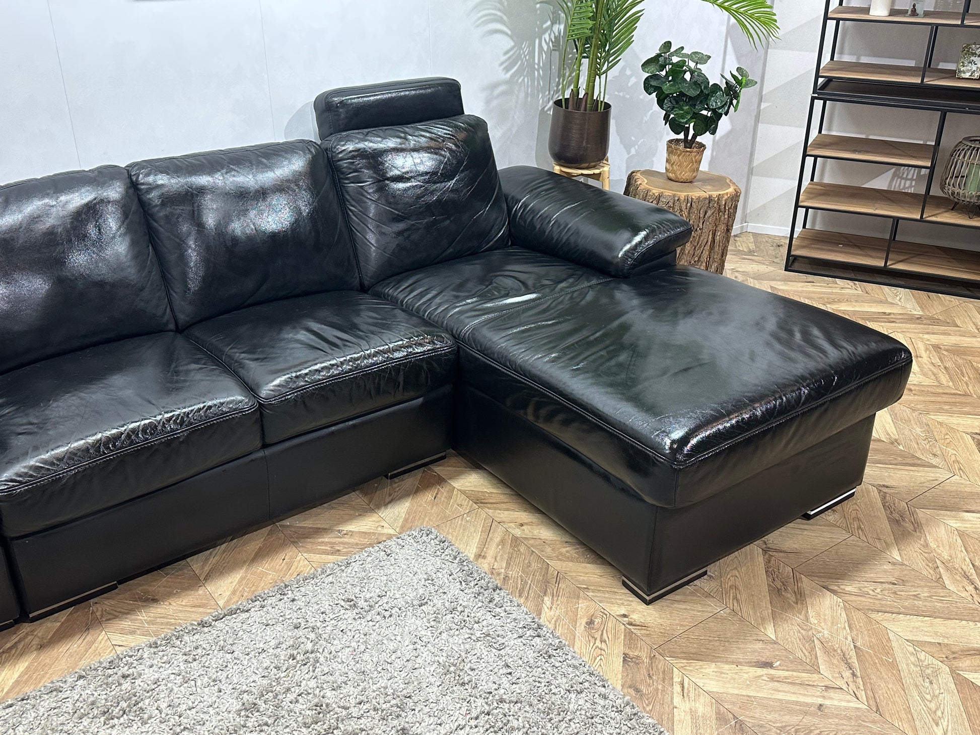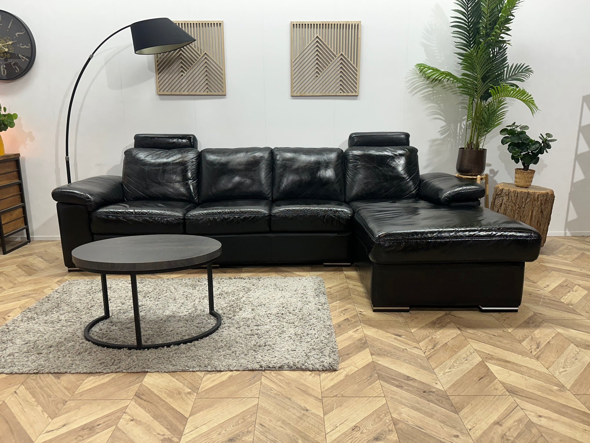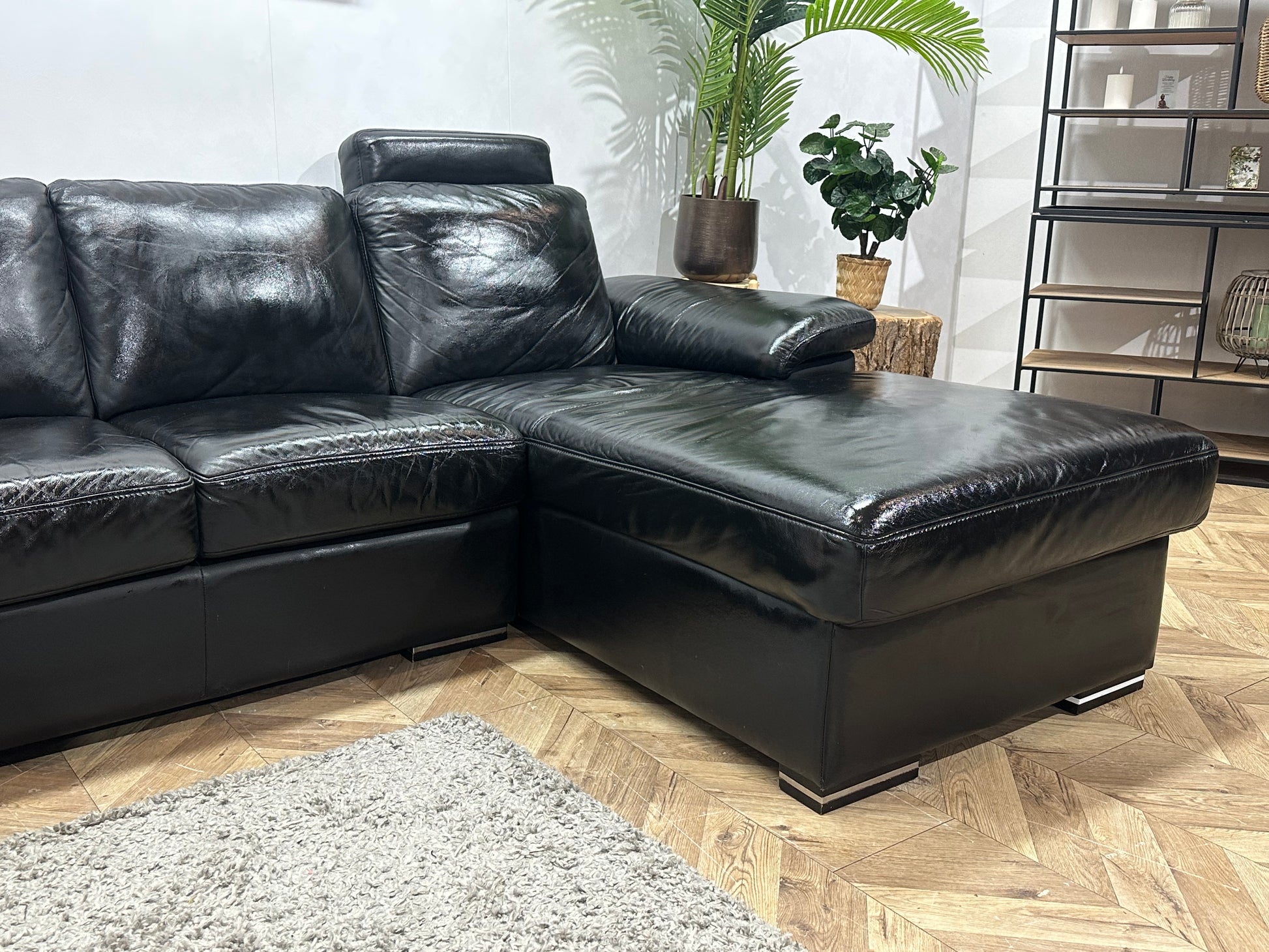 Zwarte Echt Lederen Hoekbank ~ Geïmpregneerd