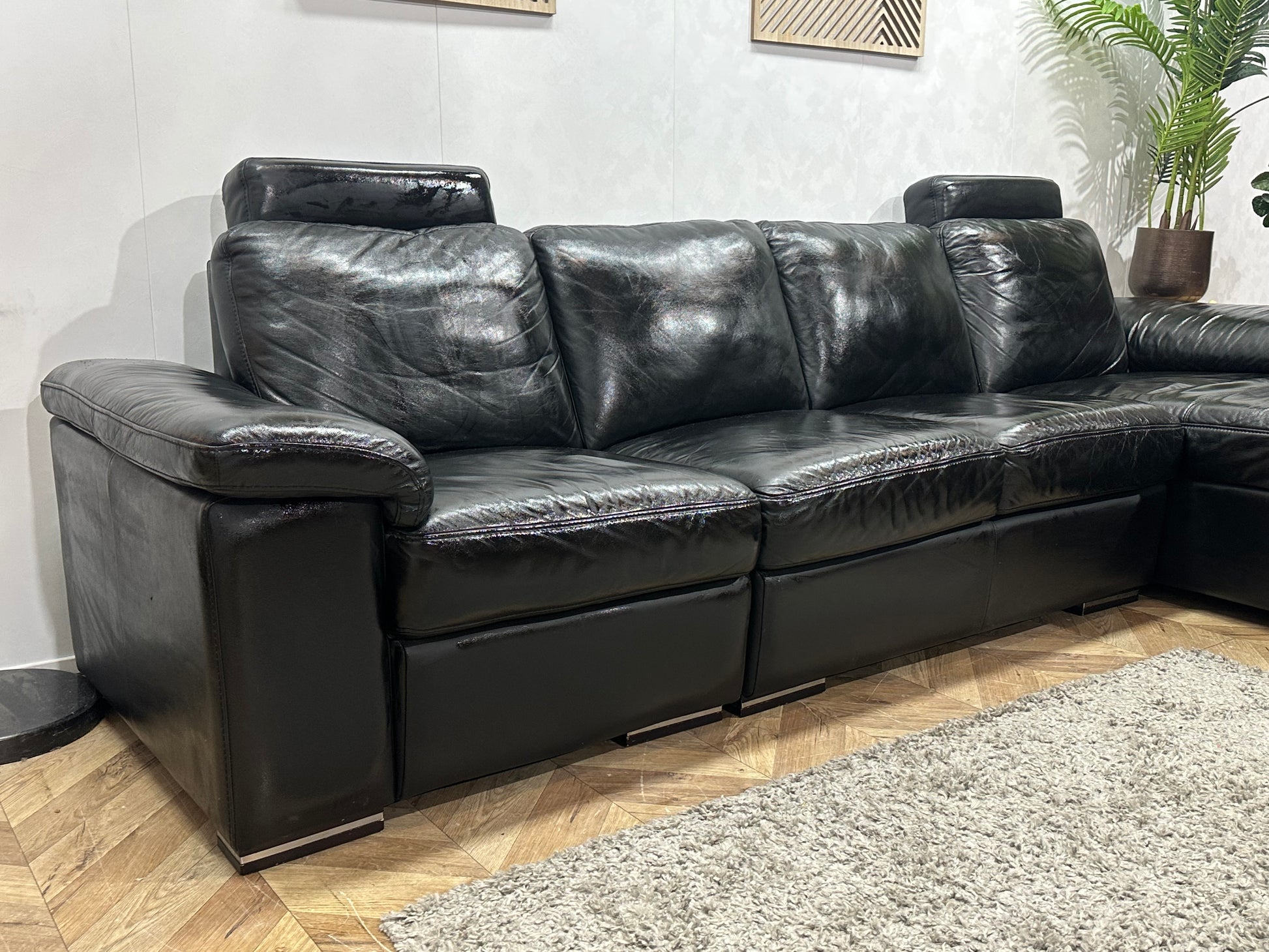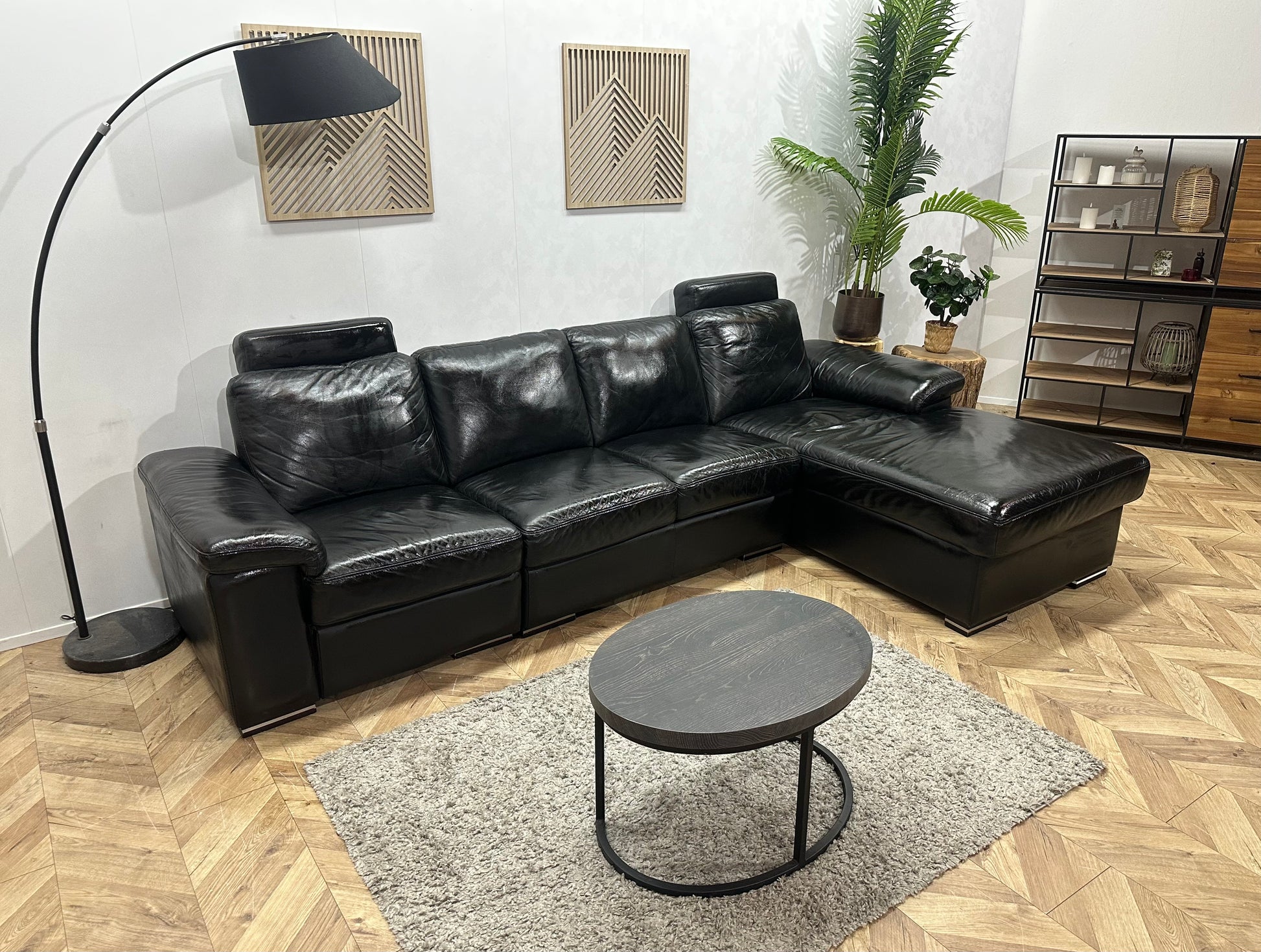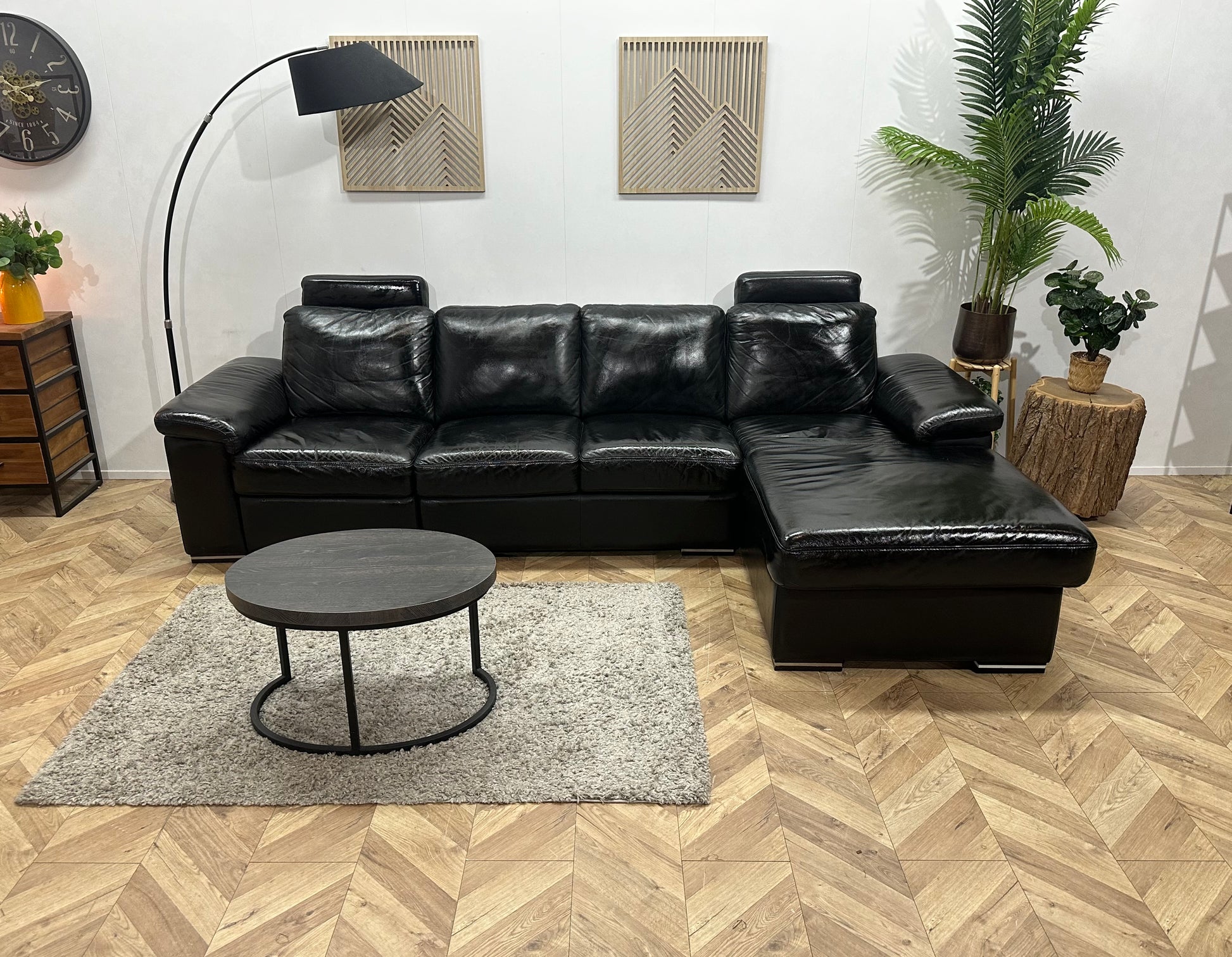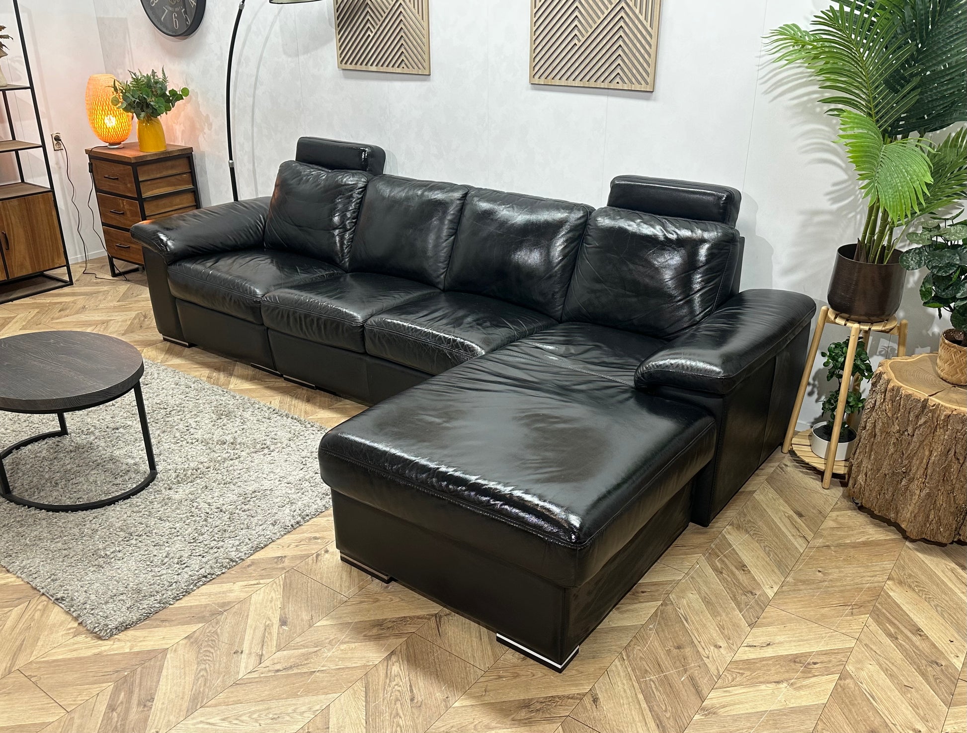 Zwarte Echt Lederen Hoekbank ~ Geïmpregneerd