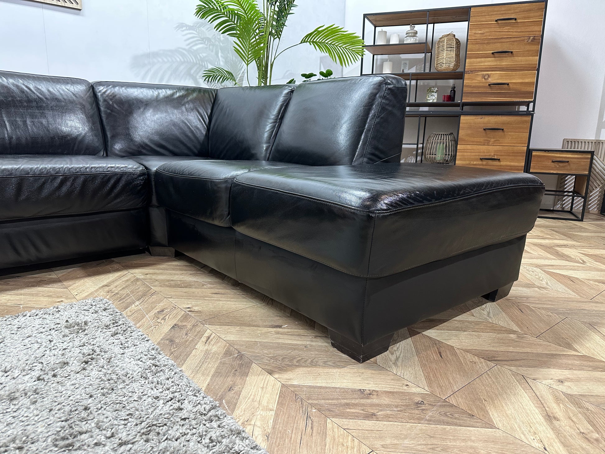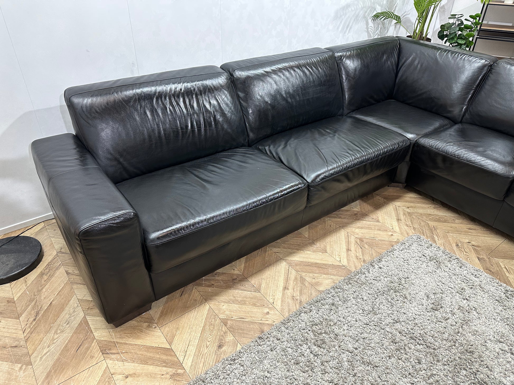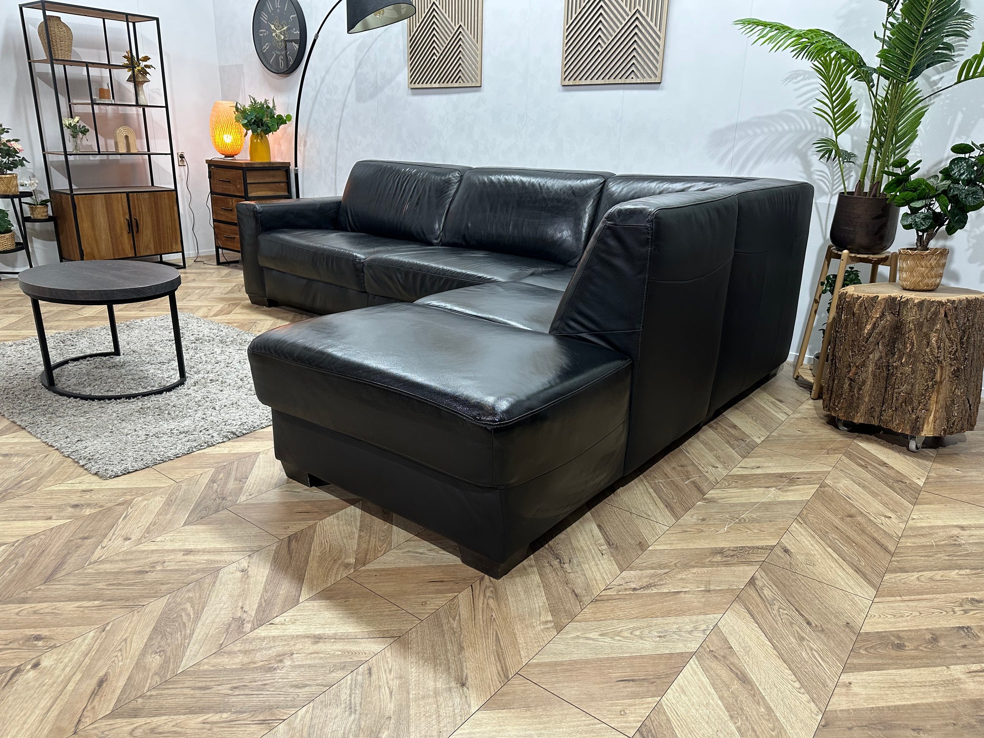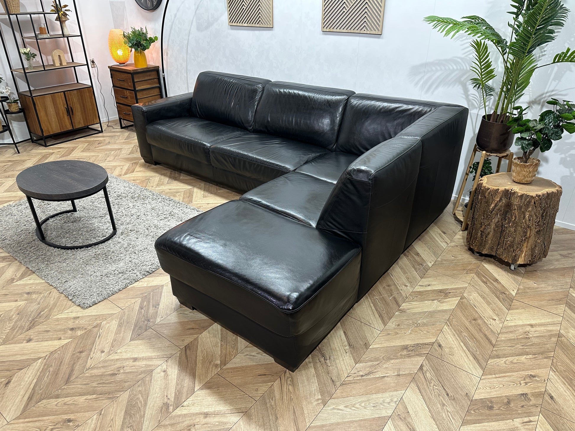 Zwarte Echt Lederen Hoekbank ~ Geïmpregneerd ~ Nieuwstaat