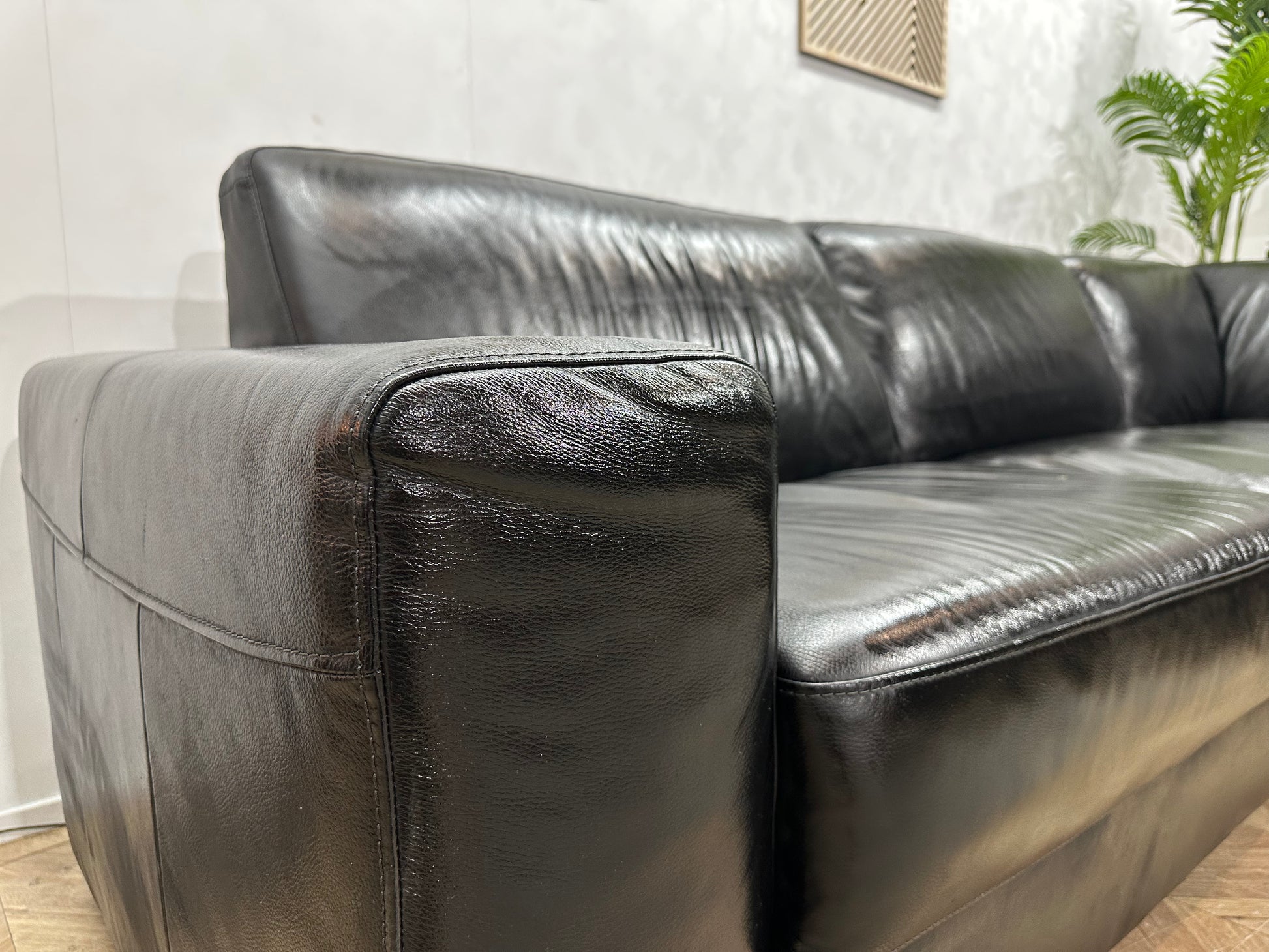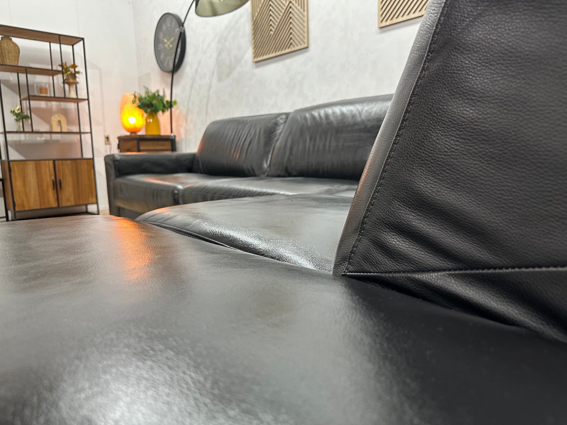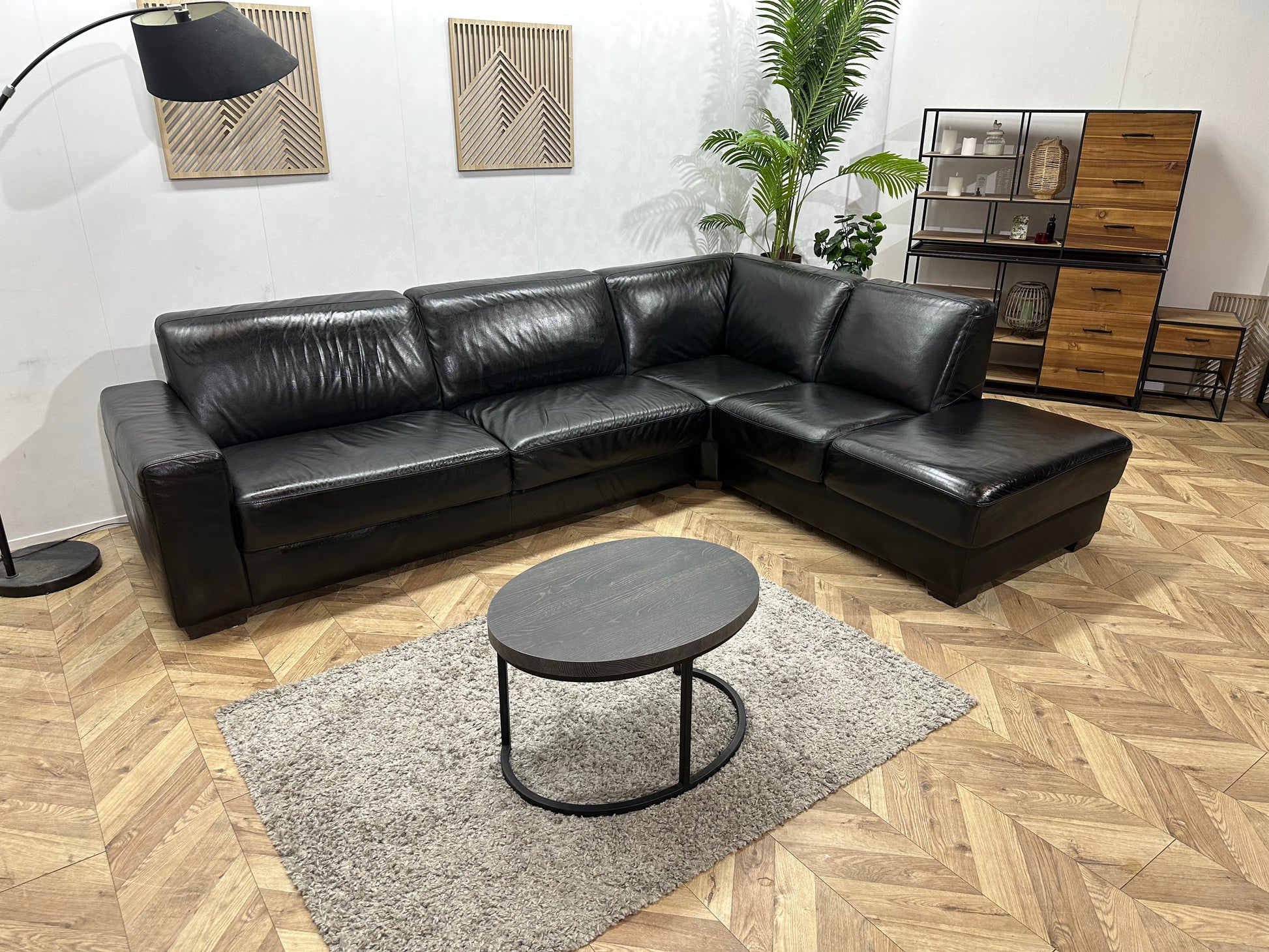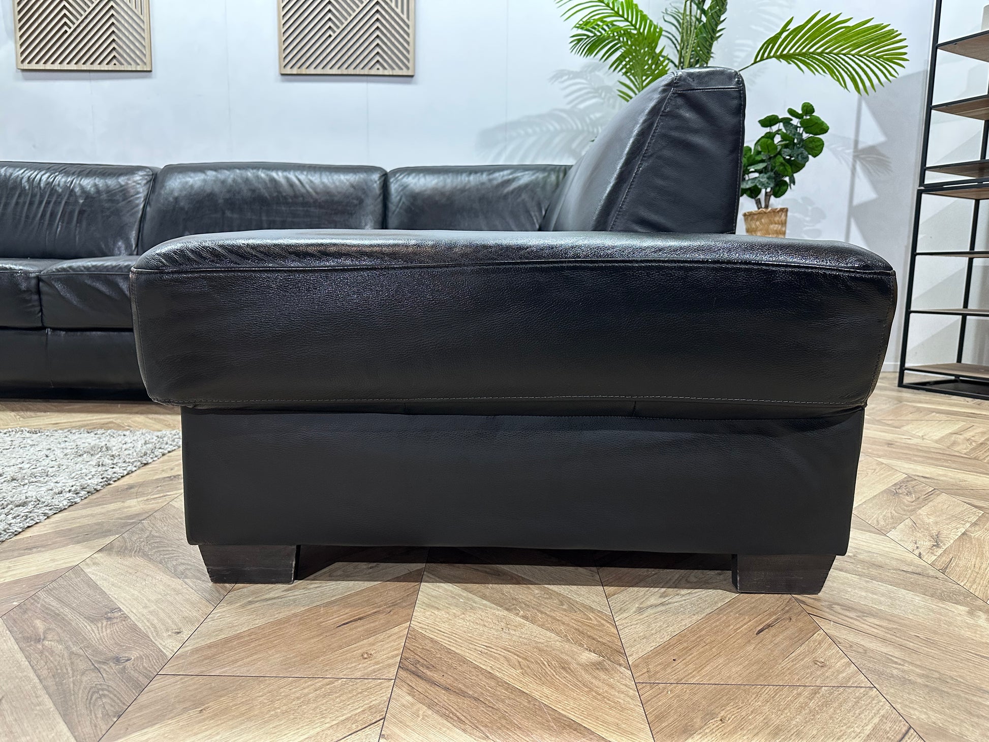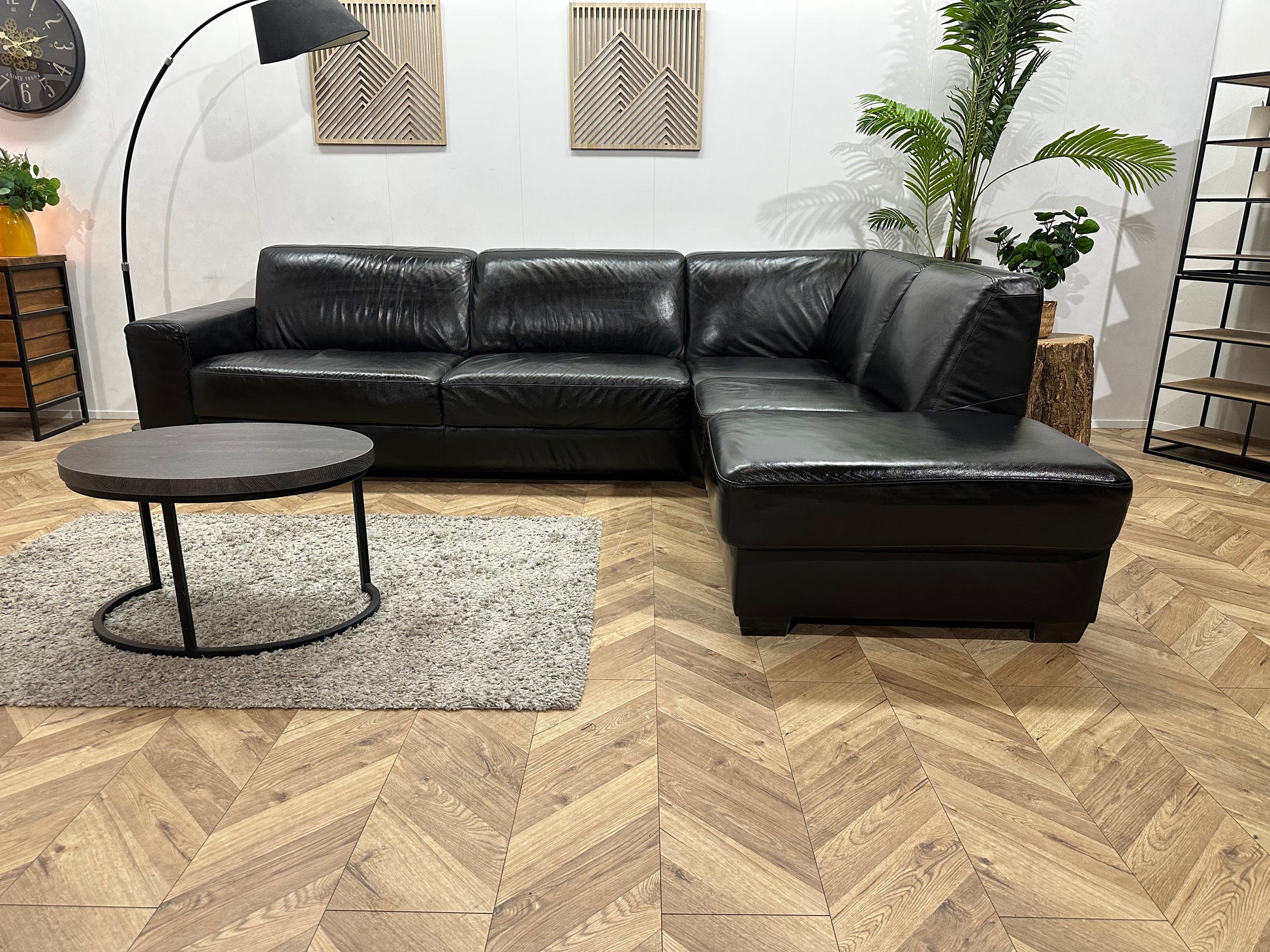 Zwarte Echt Lederen Hoekbank ~ Geïmpregneerd ~ Nieuwstaat