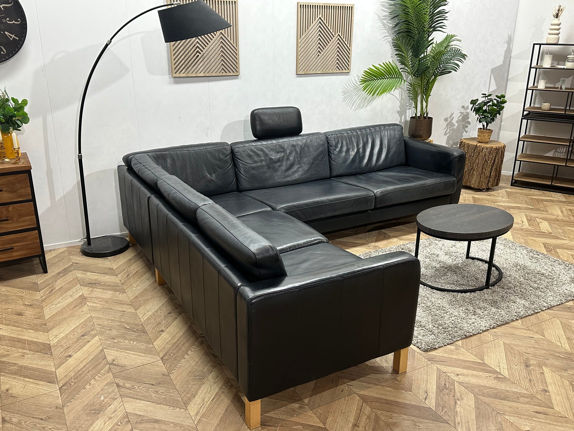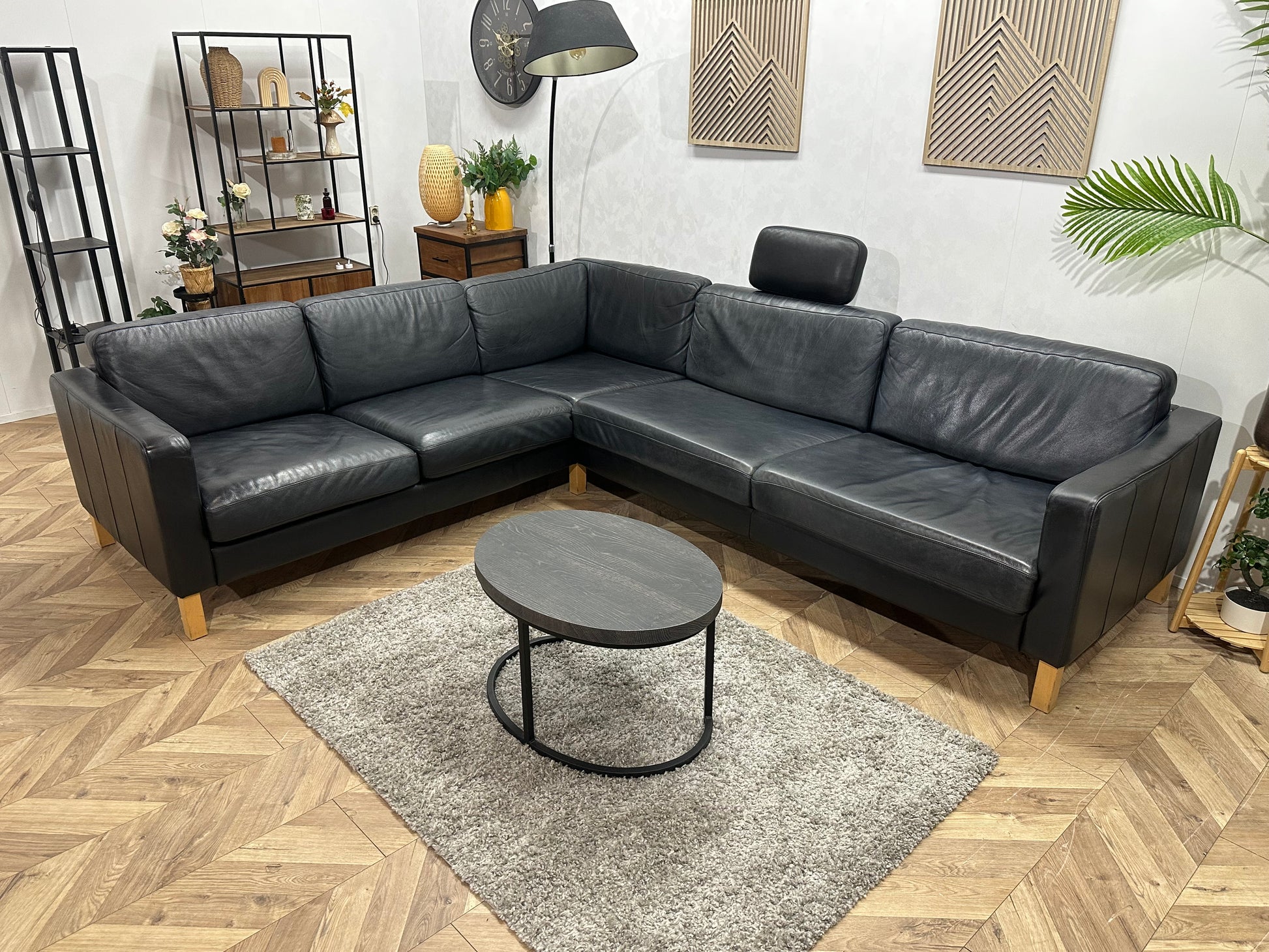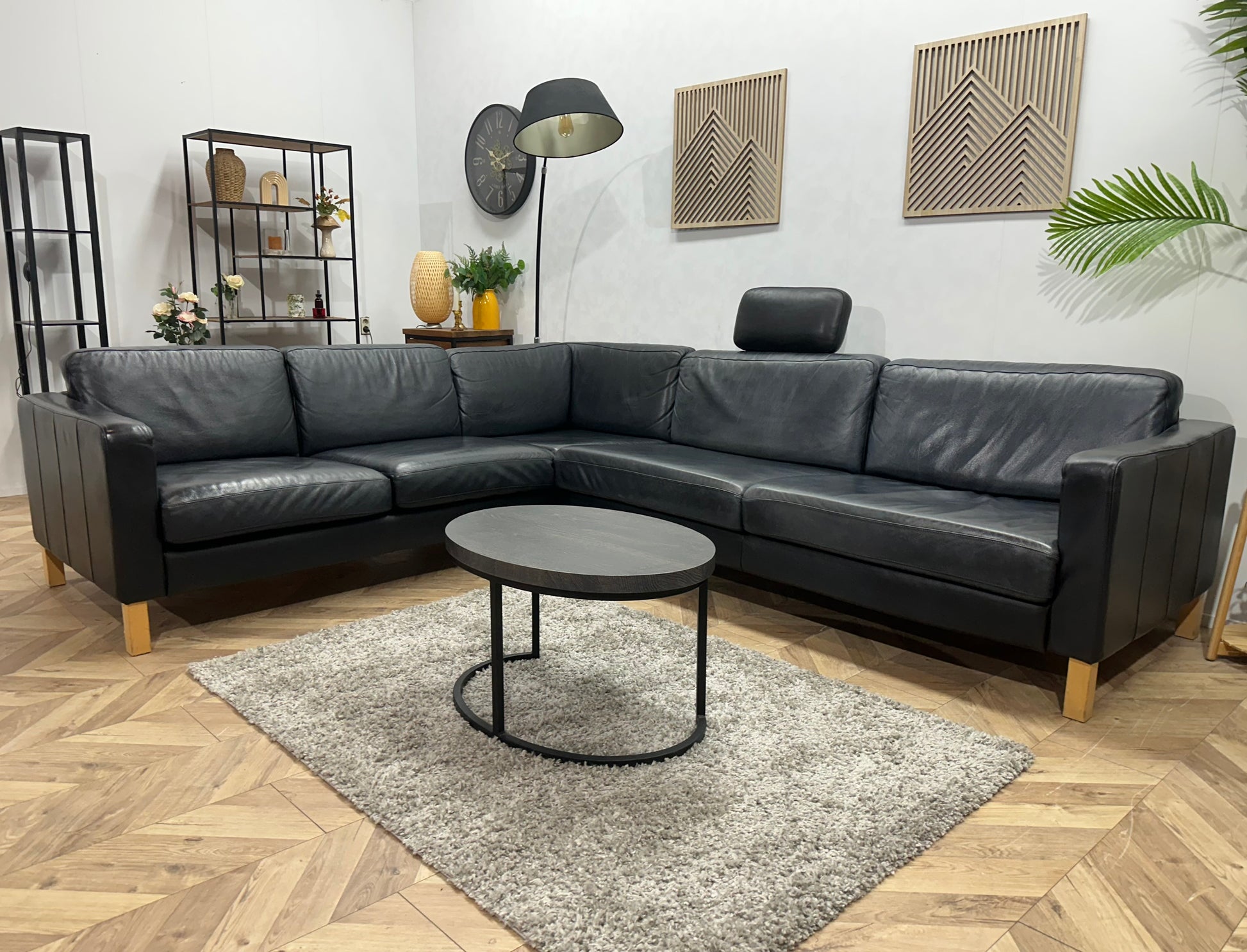 Zwarte Echt Lederen Hoekbank ~ Losse Kussens Met Afneembare Hoezen
