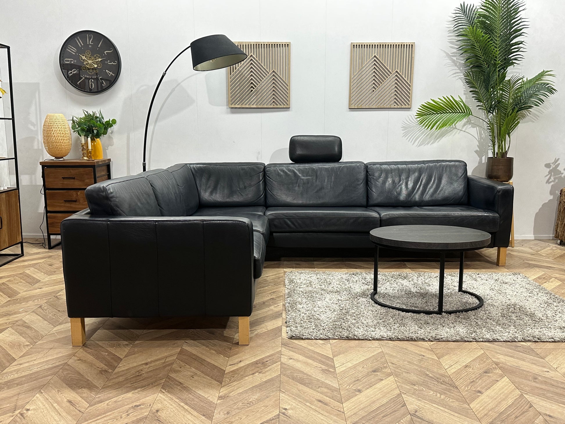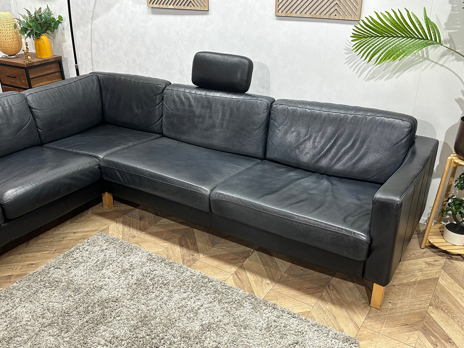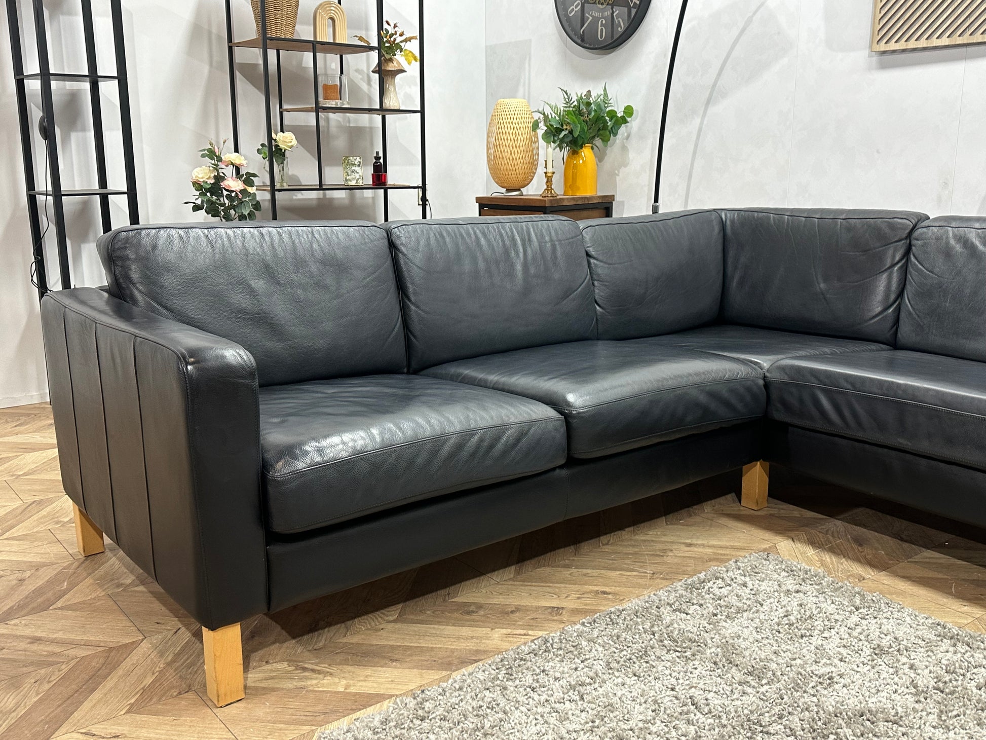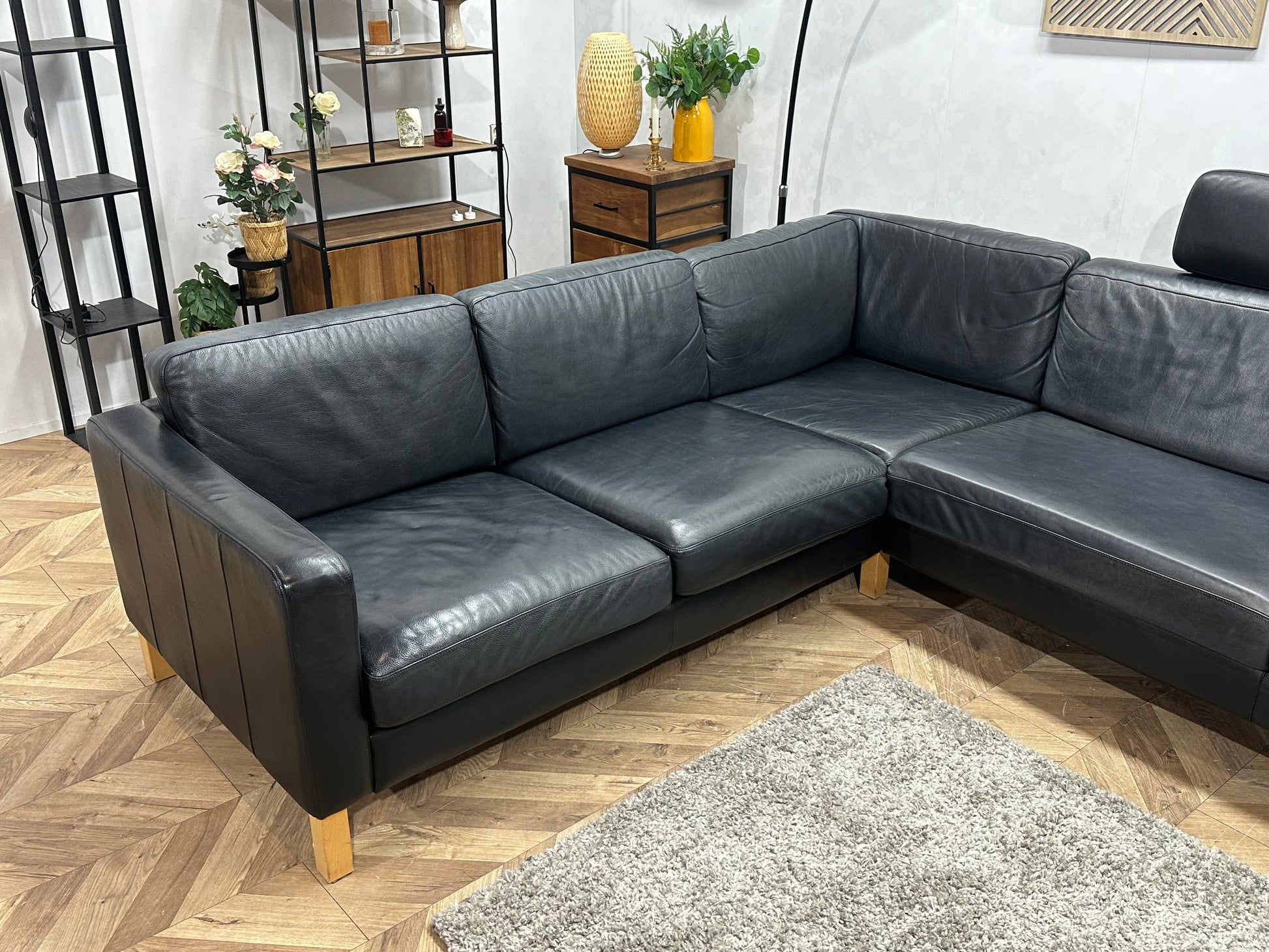 Zwarte Echt Lederen Hoekbank ~ Losse Kussens Met Afneembare Hoezen