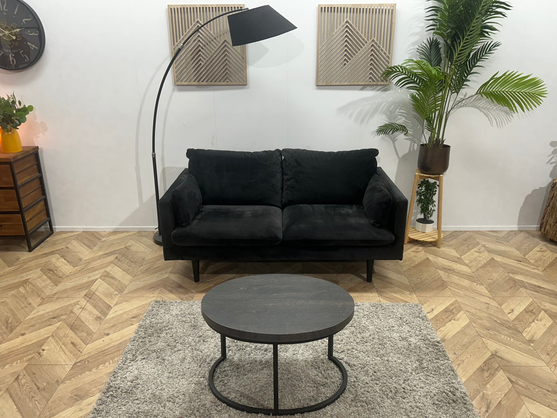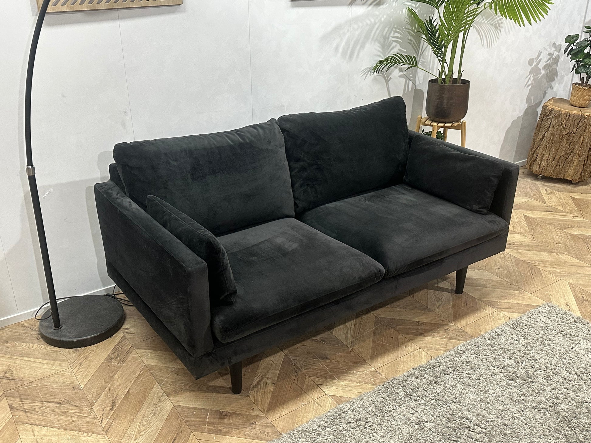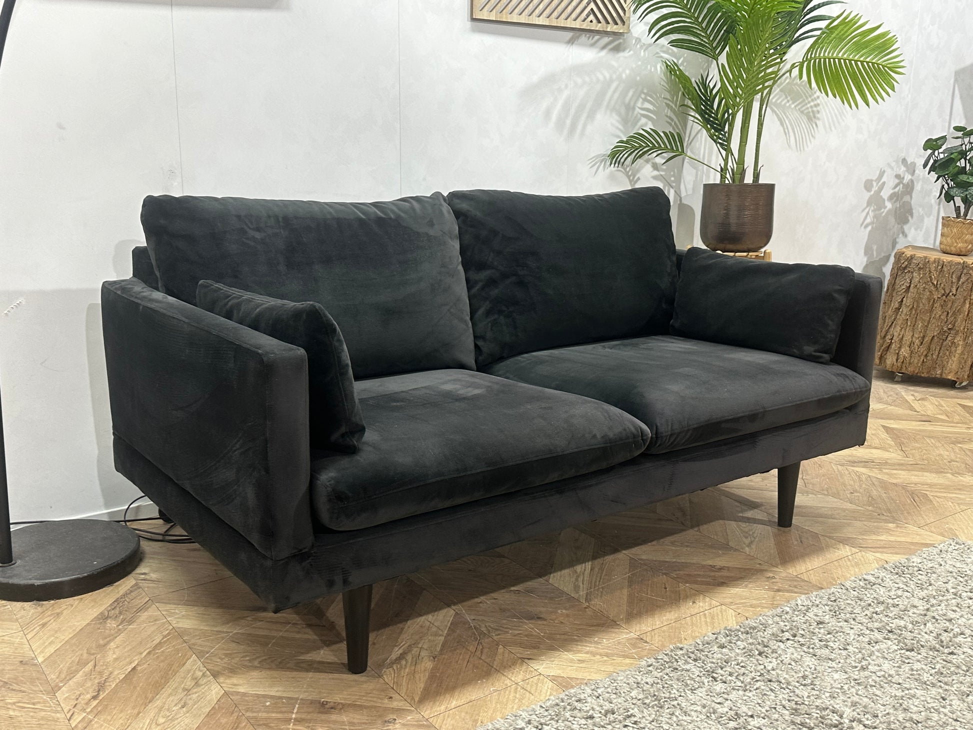 Zwarte Velvet 2-Zits Bank ~ Losse Kussens Met Afneembare Hoezen