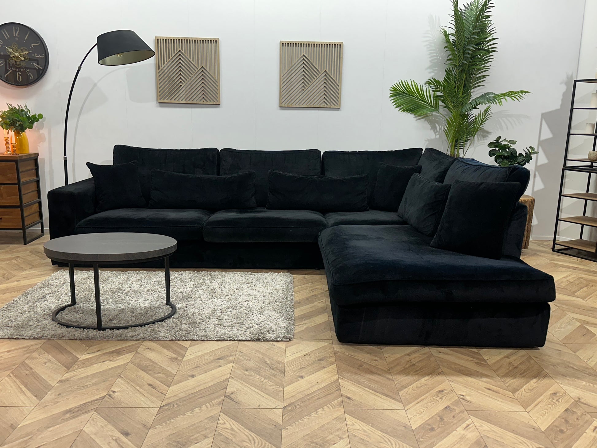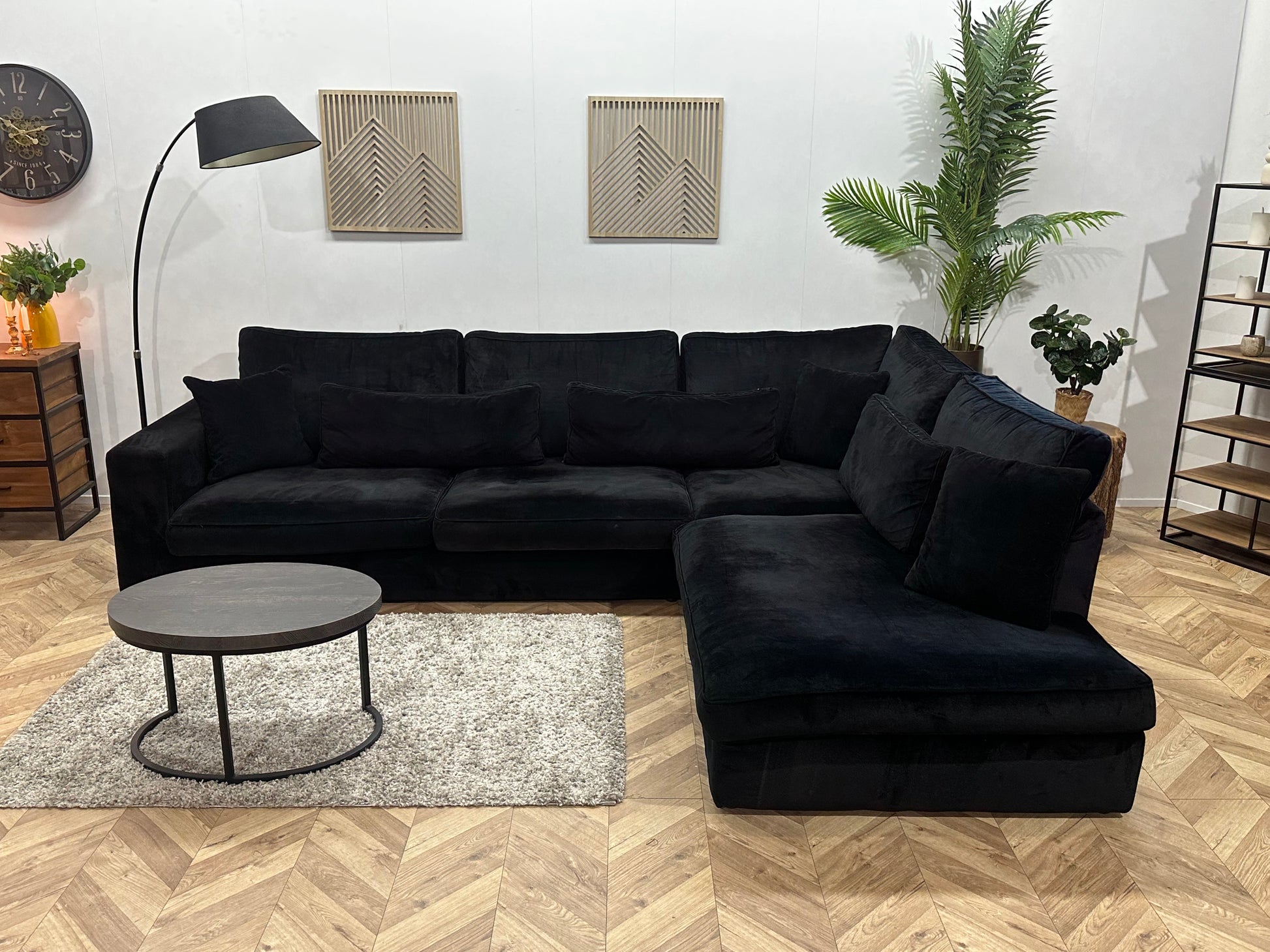 Zwarte Velvet Hoekbank ~ Losse Kussens Met Afneembare Hoezen