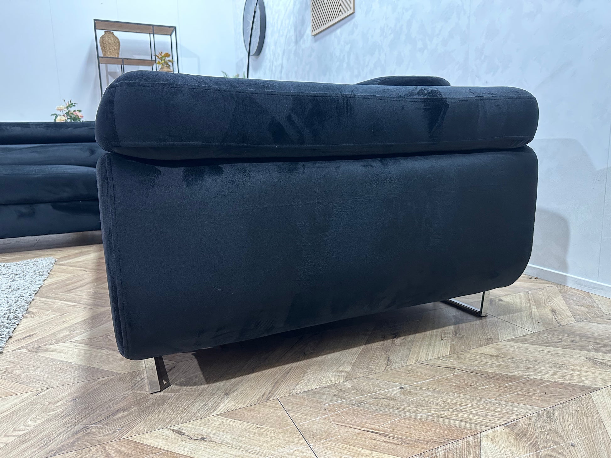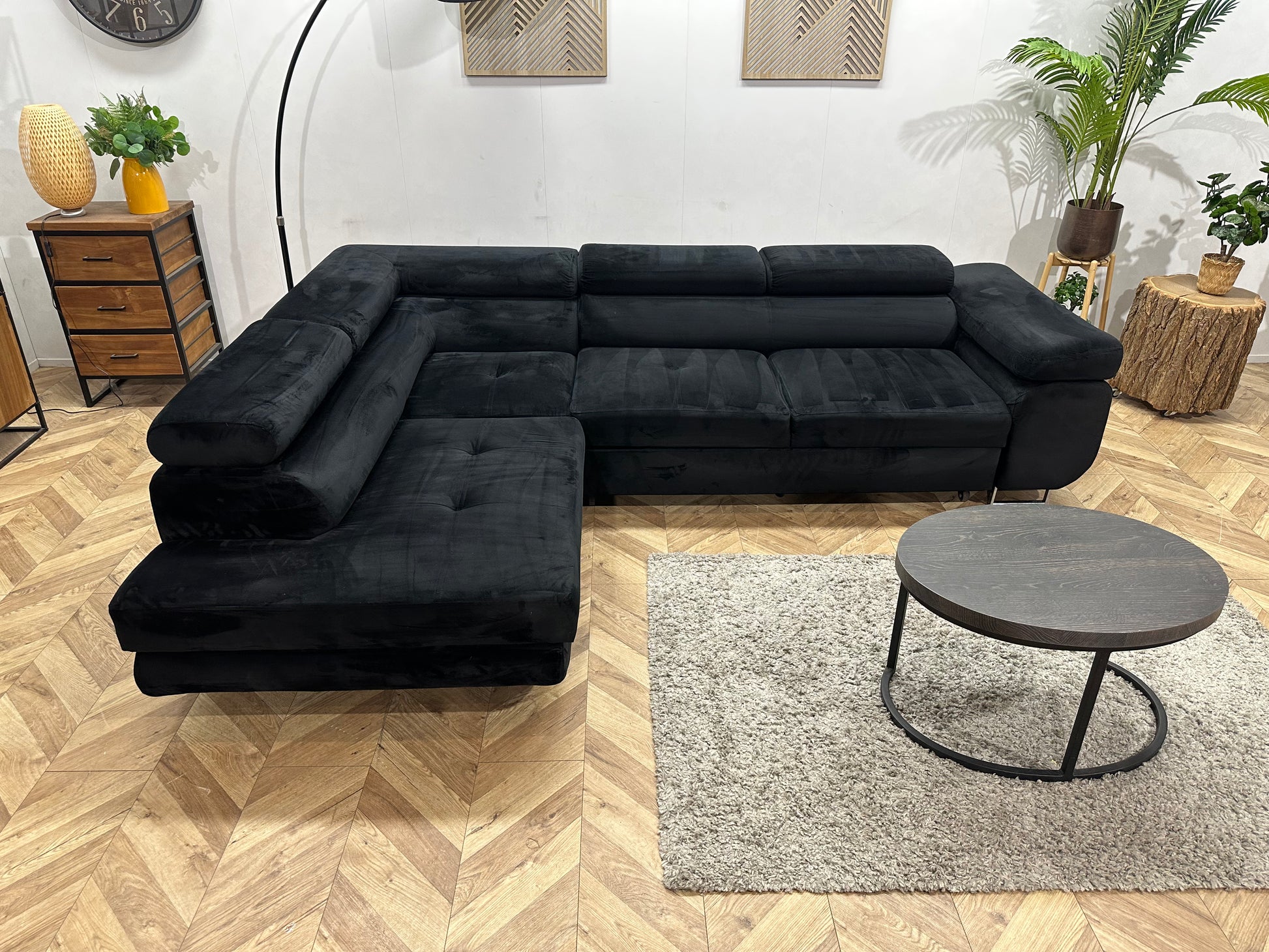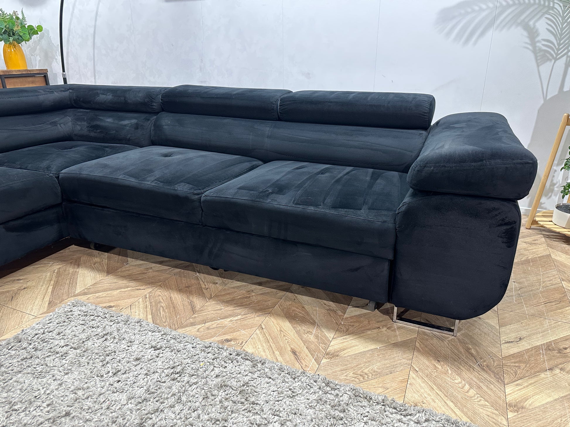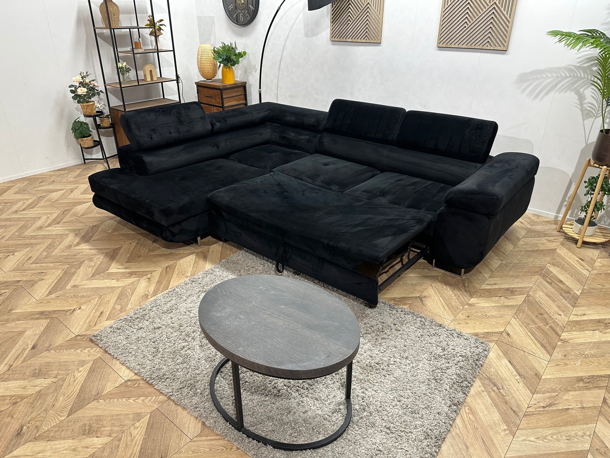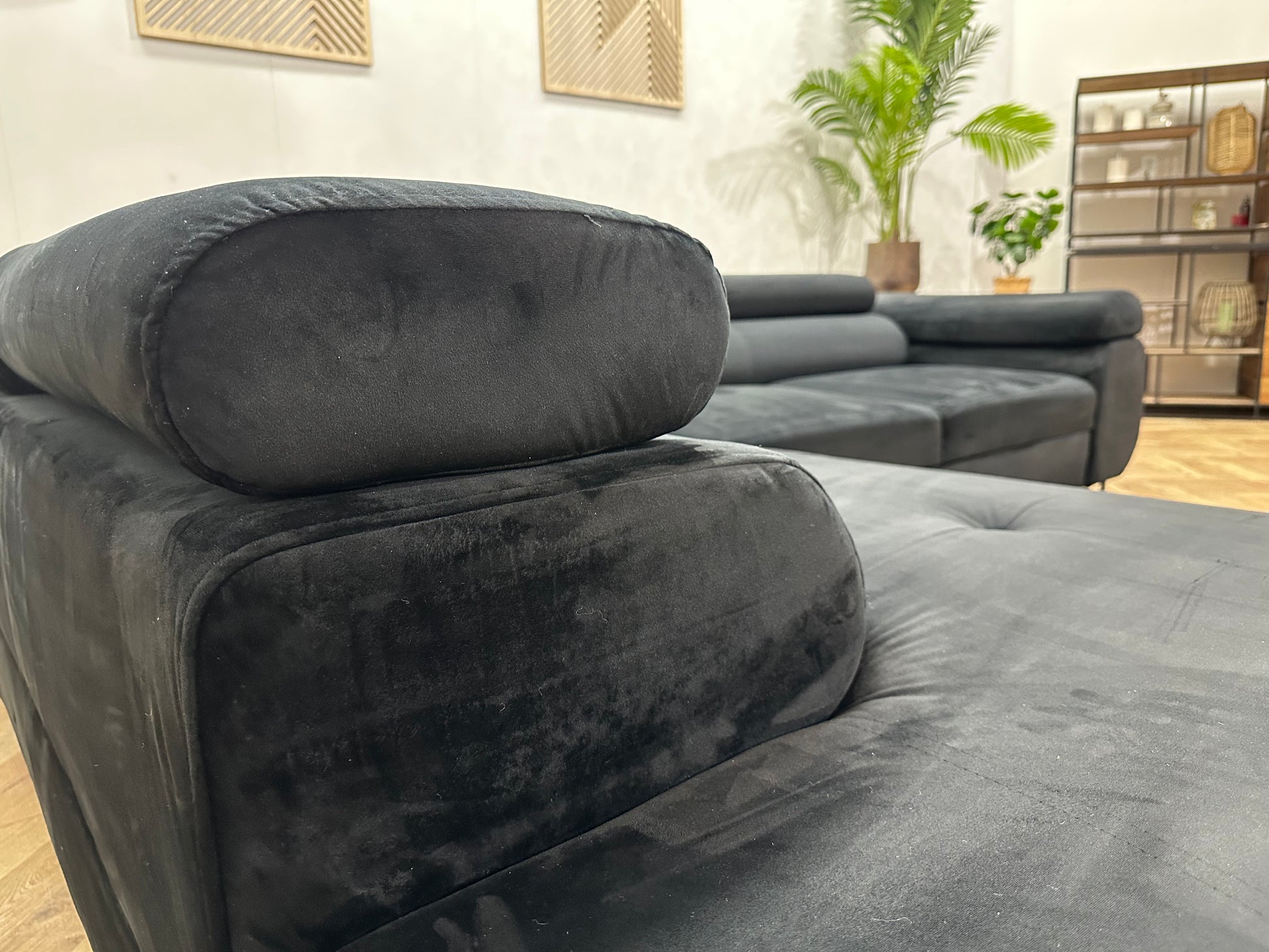 Zwarte Velvet Hoekbank ~ Slaapfunctie ~ Verstelbare Hoofdsteunen